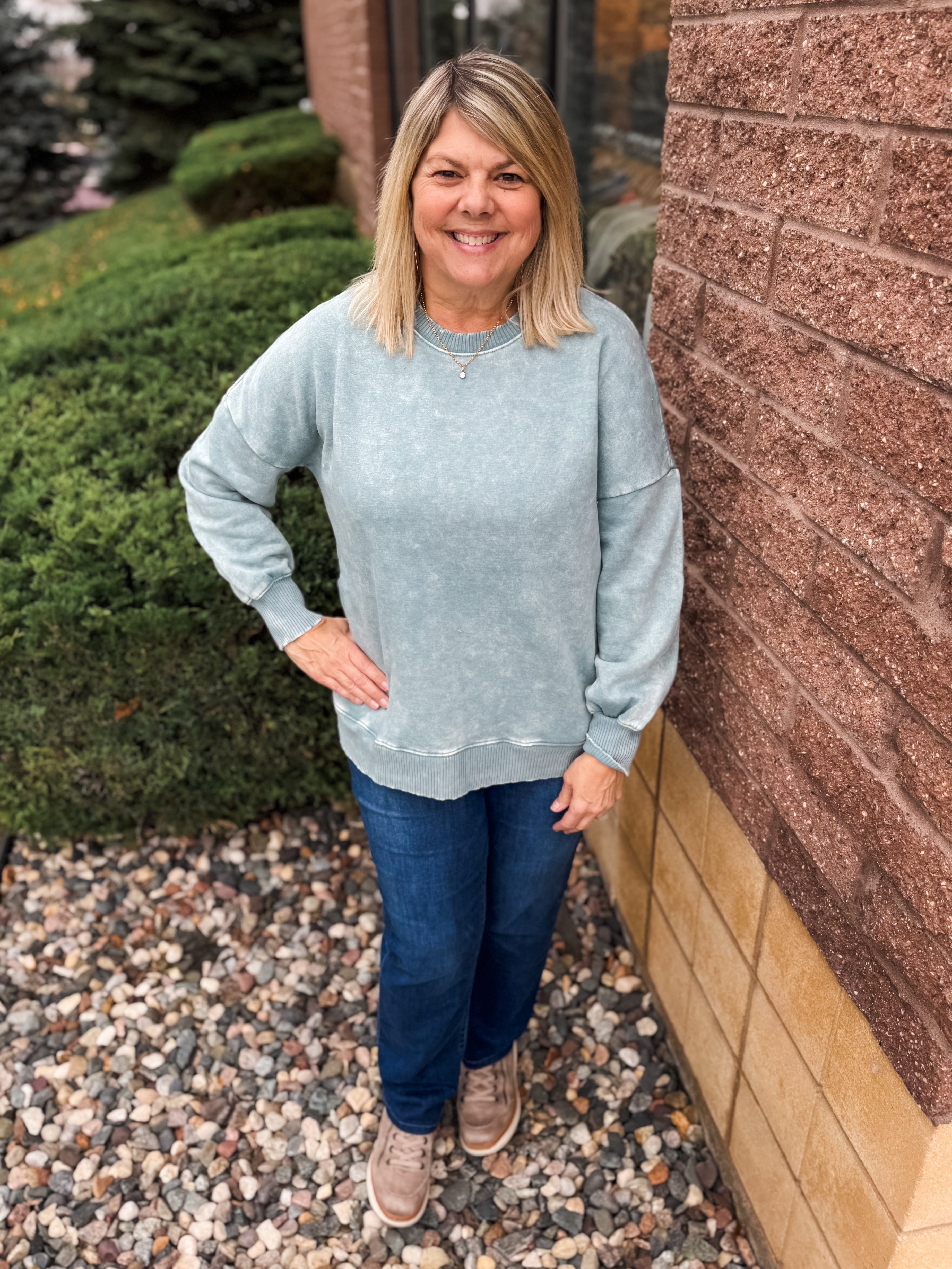 Holiday Acid Wash Fleece Hi-Low Hem Pullover