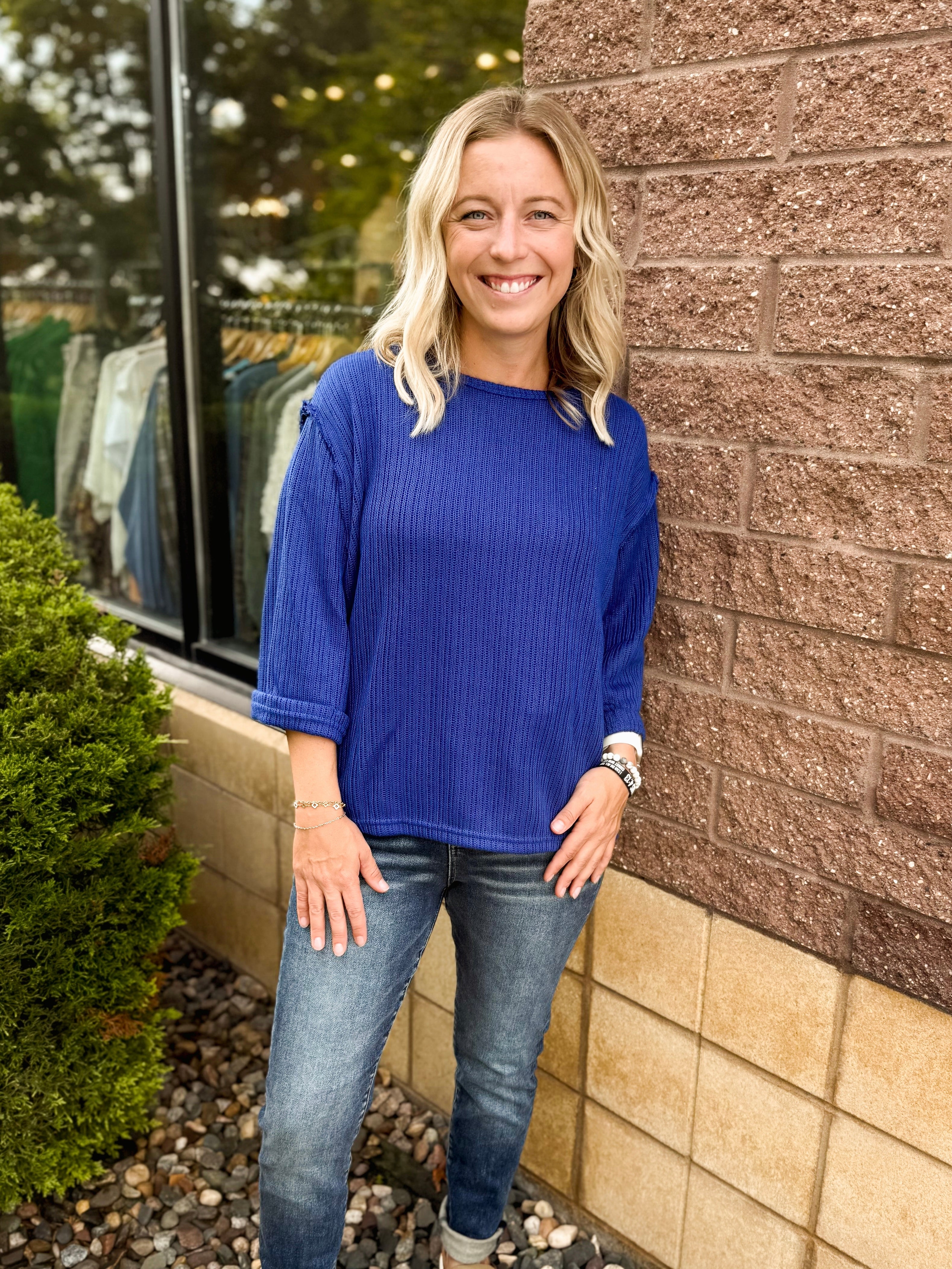 3/4 Folded Sleeve Knit Top