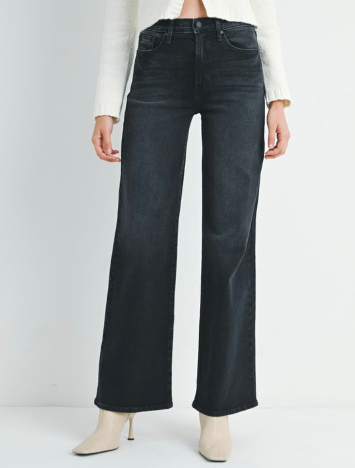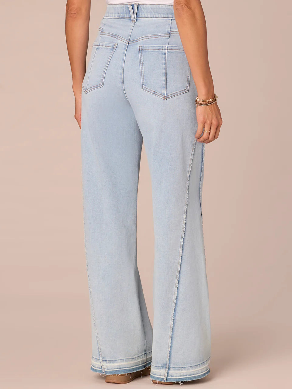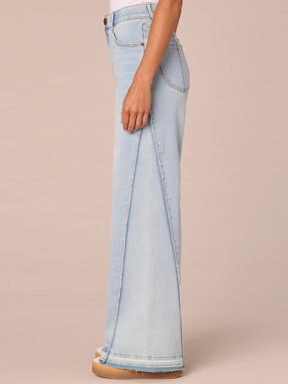 "Ab"solution Skyrise Diagonal Fray Panel Released Hem Wide Leg Jeans
