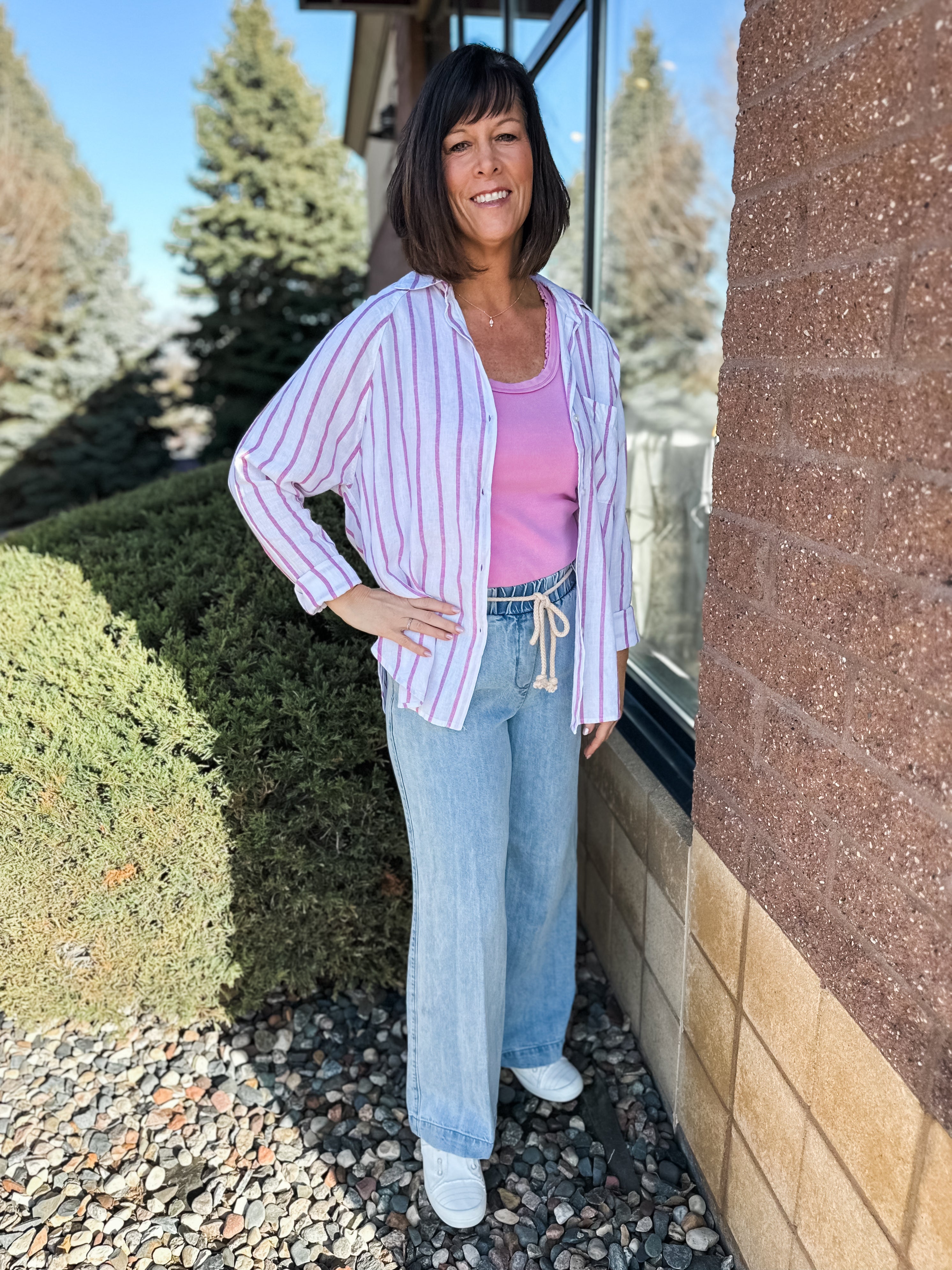 31/25" "Ab"leisure Skyrise Pleated Wide Leg W/ Rope Tie Belt & Spade Back Pockets