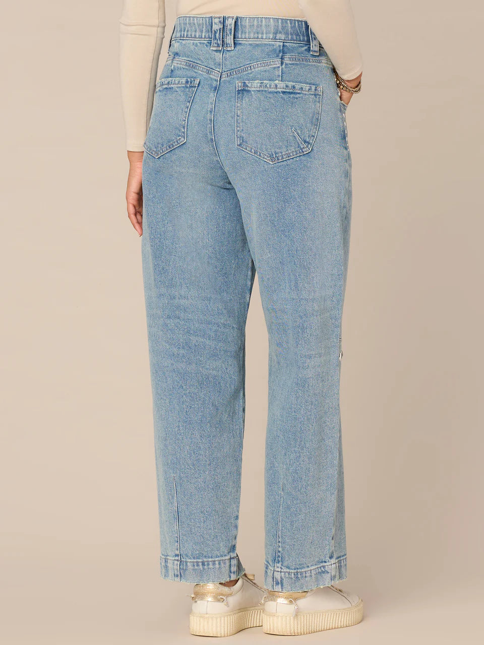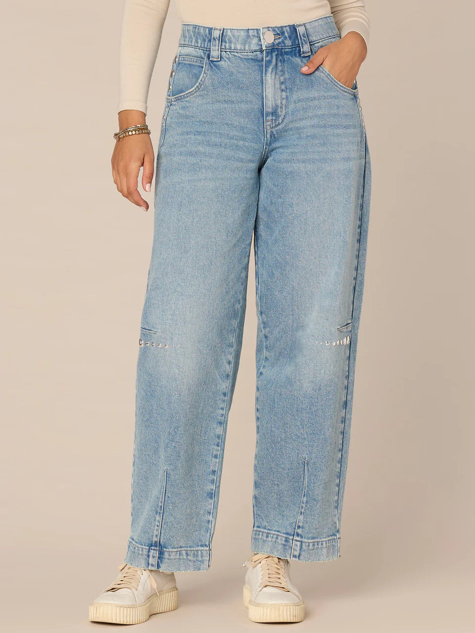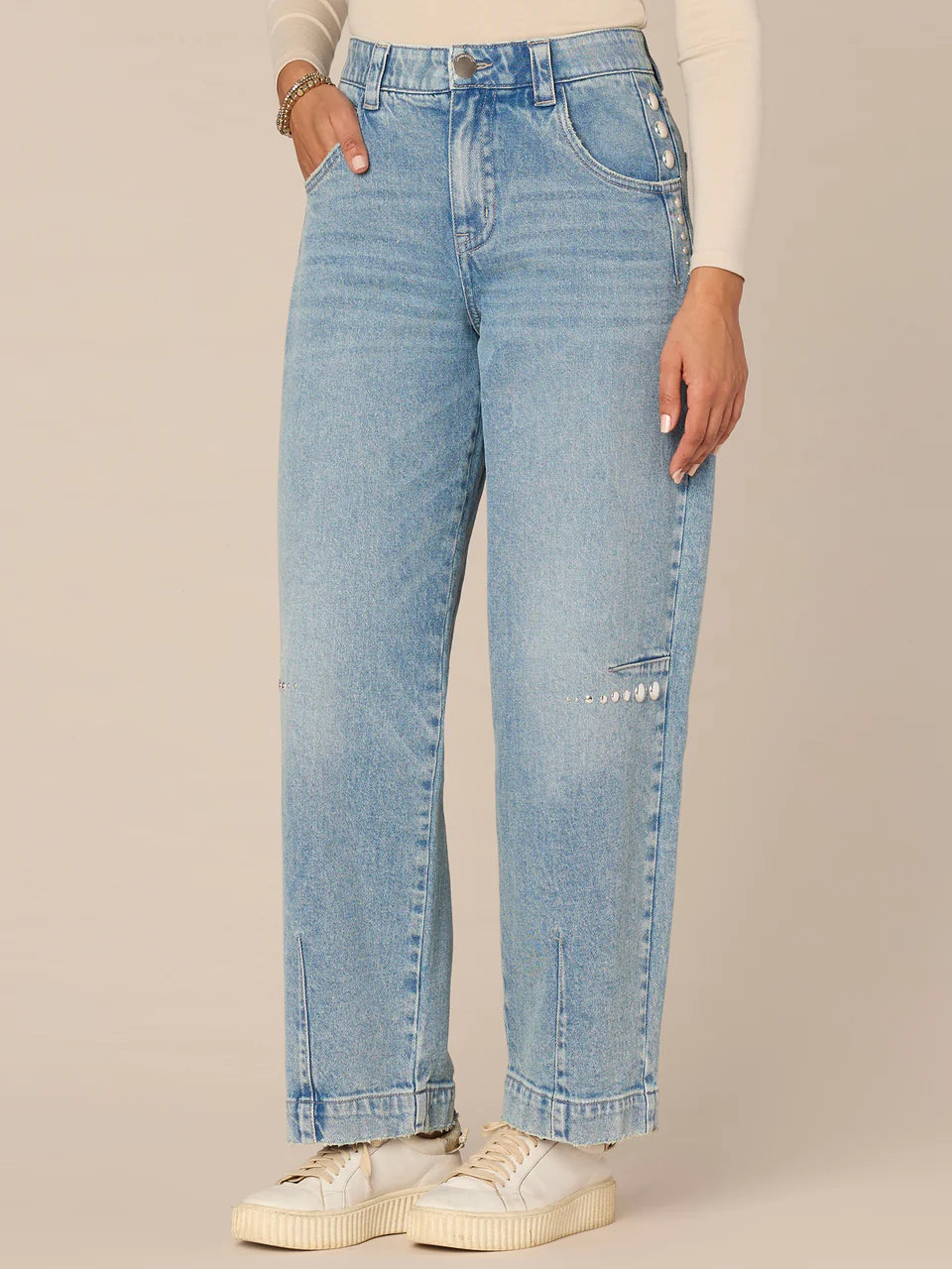 "Ab"solution Skyrise Relaxed Barrel Leg Jean with Studs