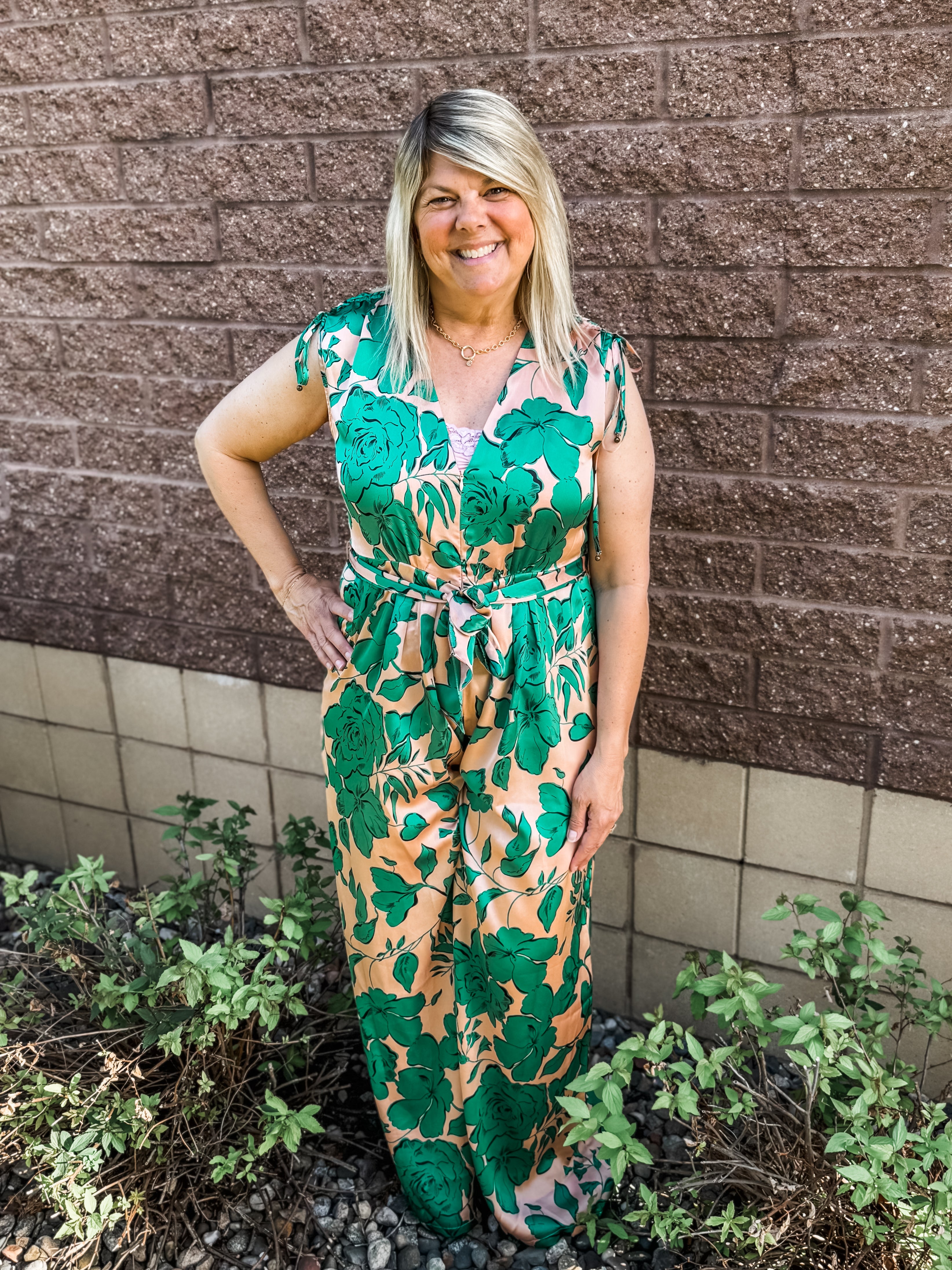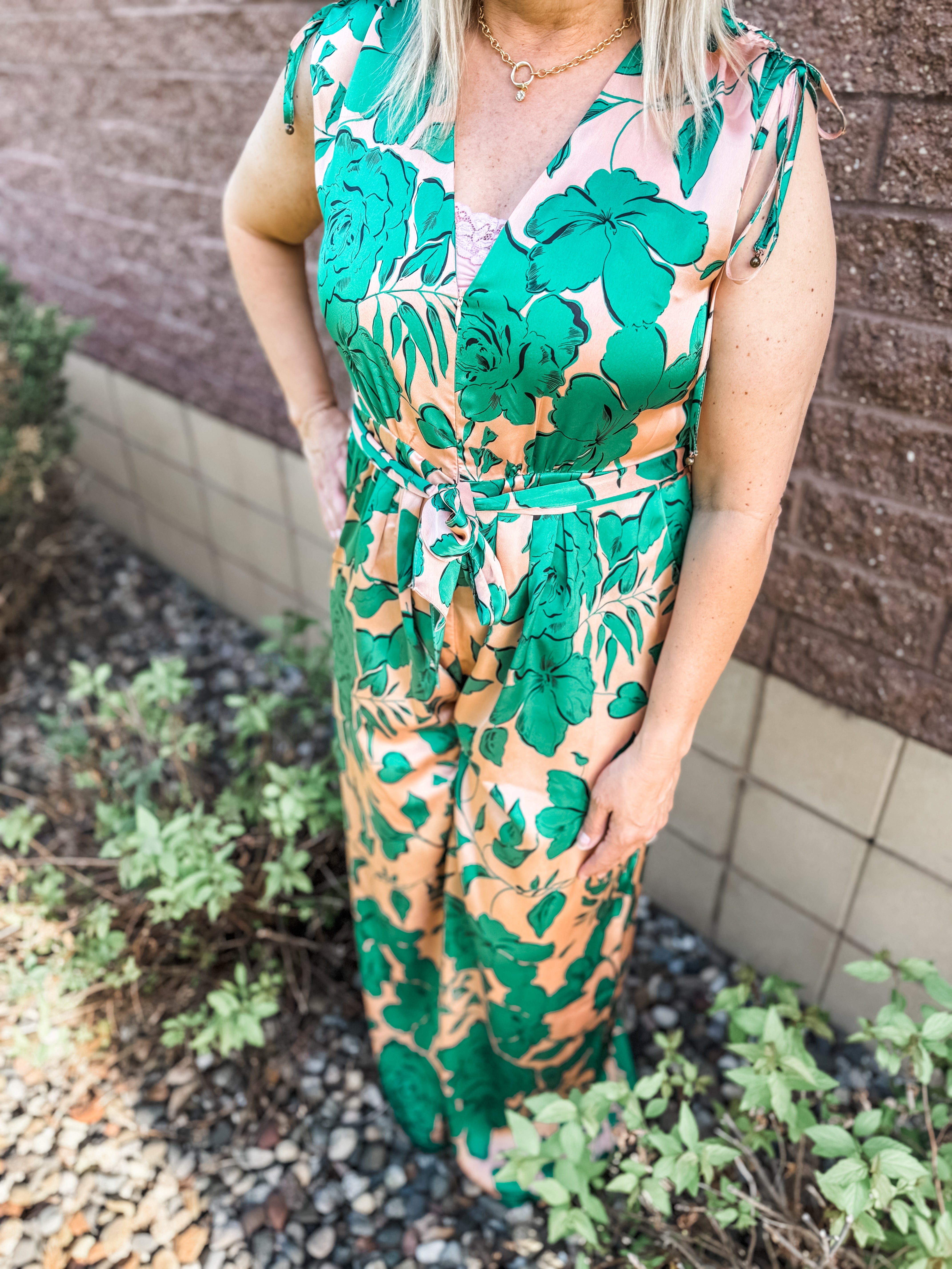 Heavy Hearted Cinched Shoulder Tie Maxi Jumpsuit