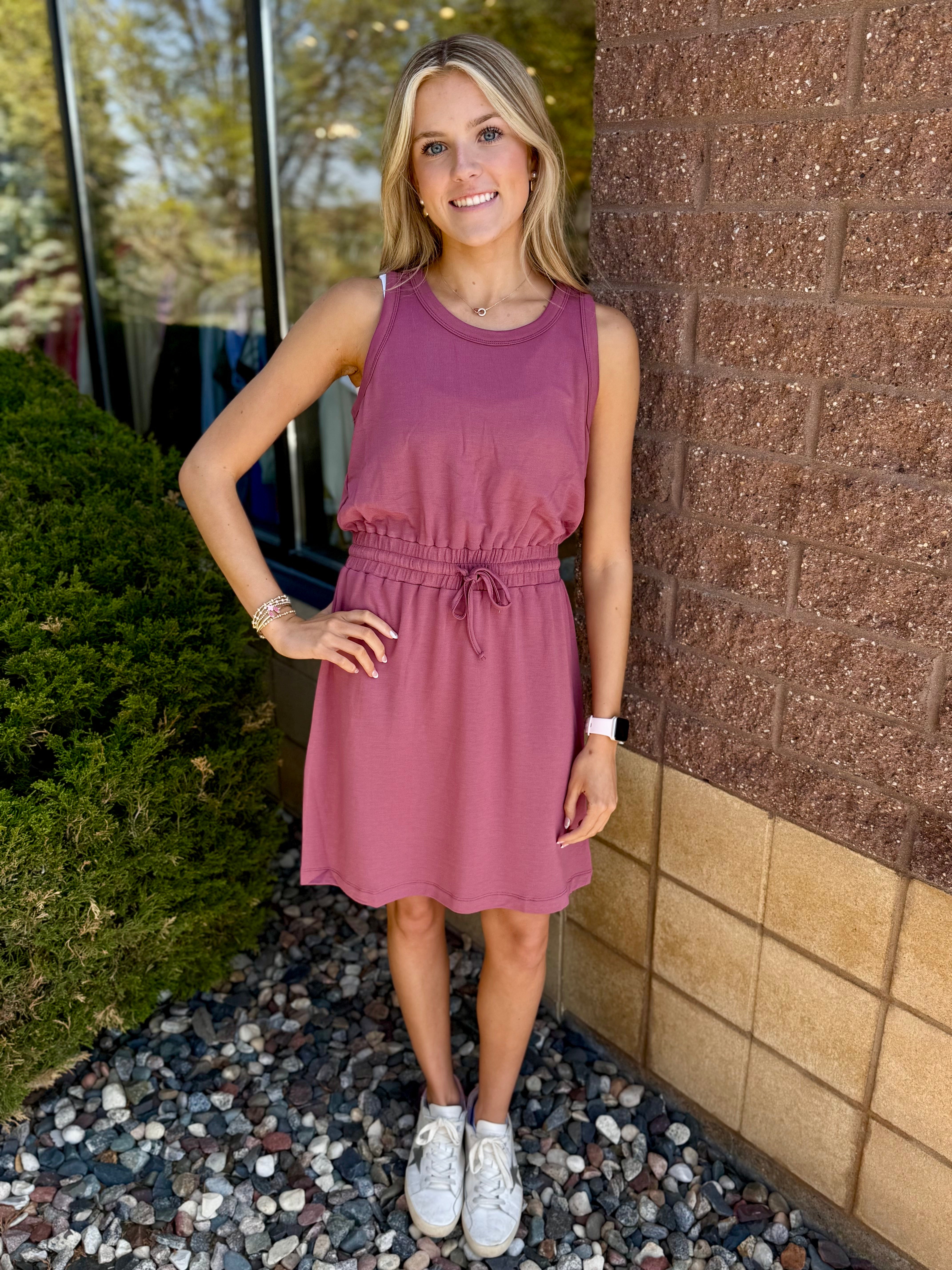 ROUND NECK ELASTIC BAND DRAWSTRING WAIST SLEEVELESS TOP