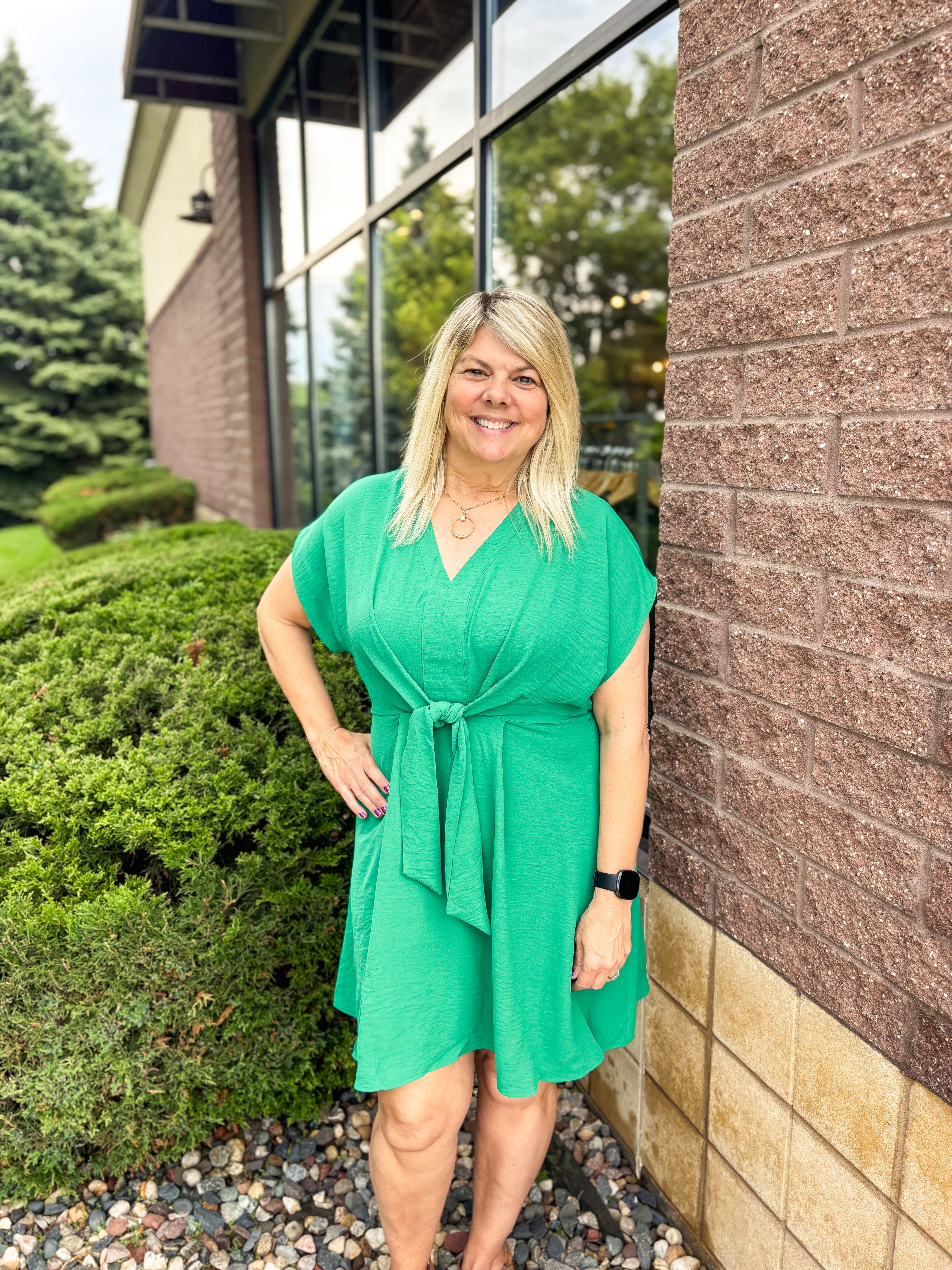 Long Sleeve V-neck Waist Elastic With Tie Dress