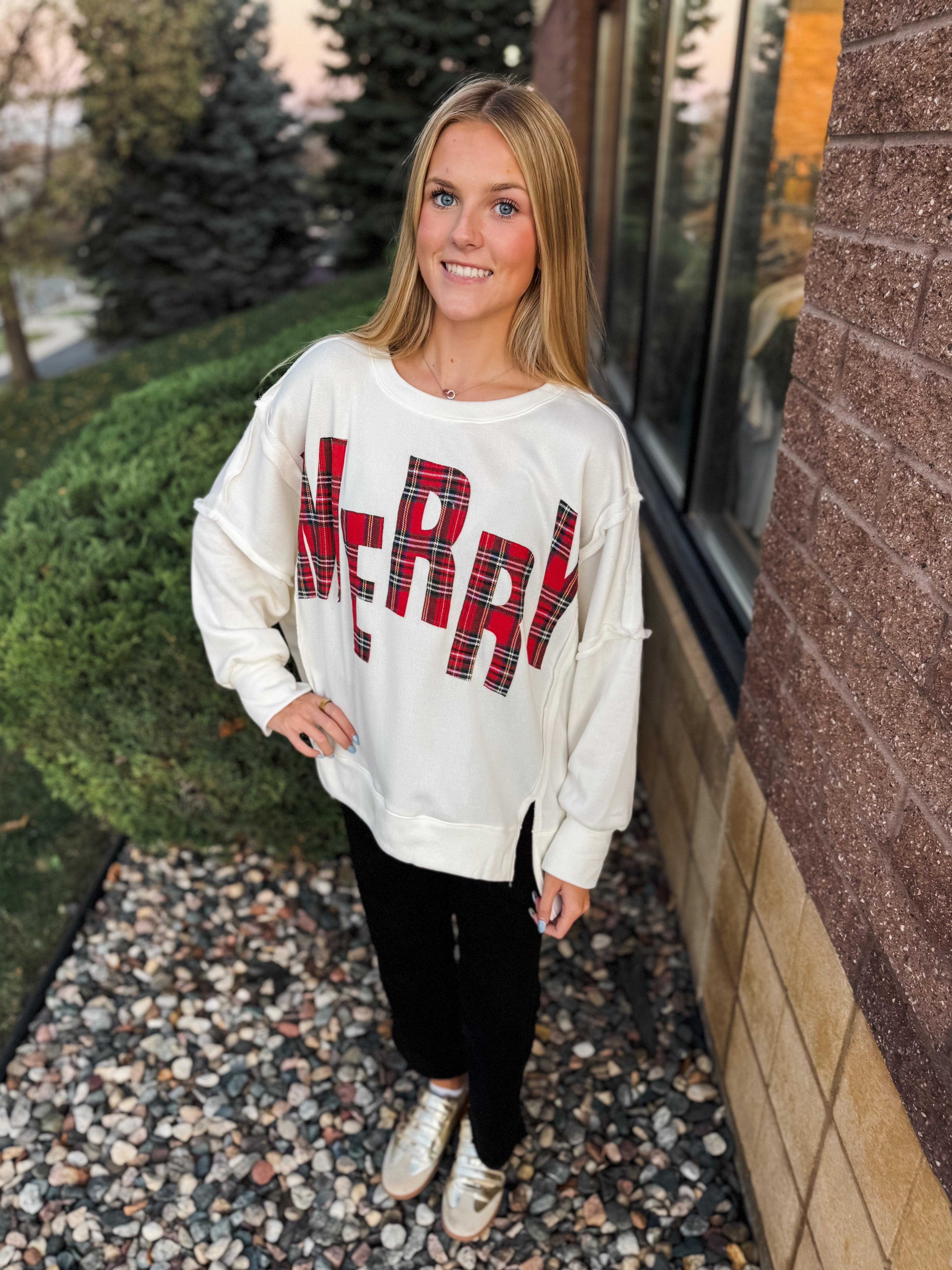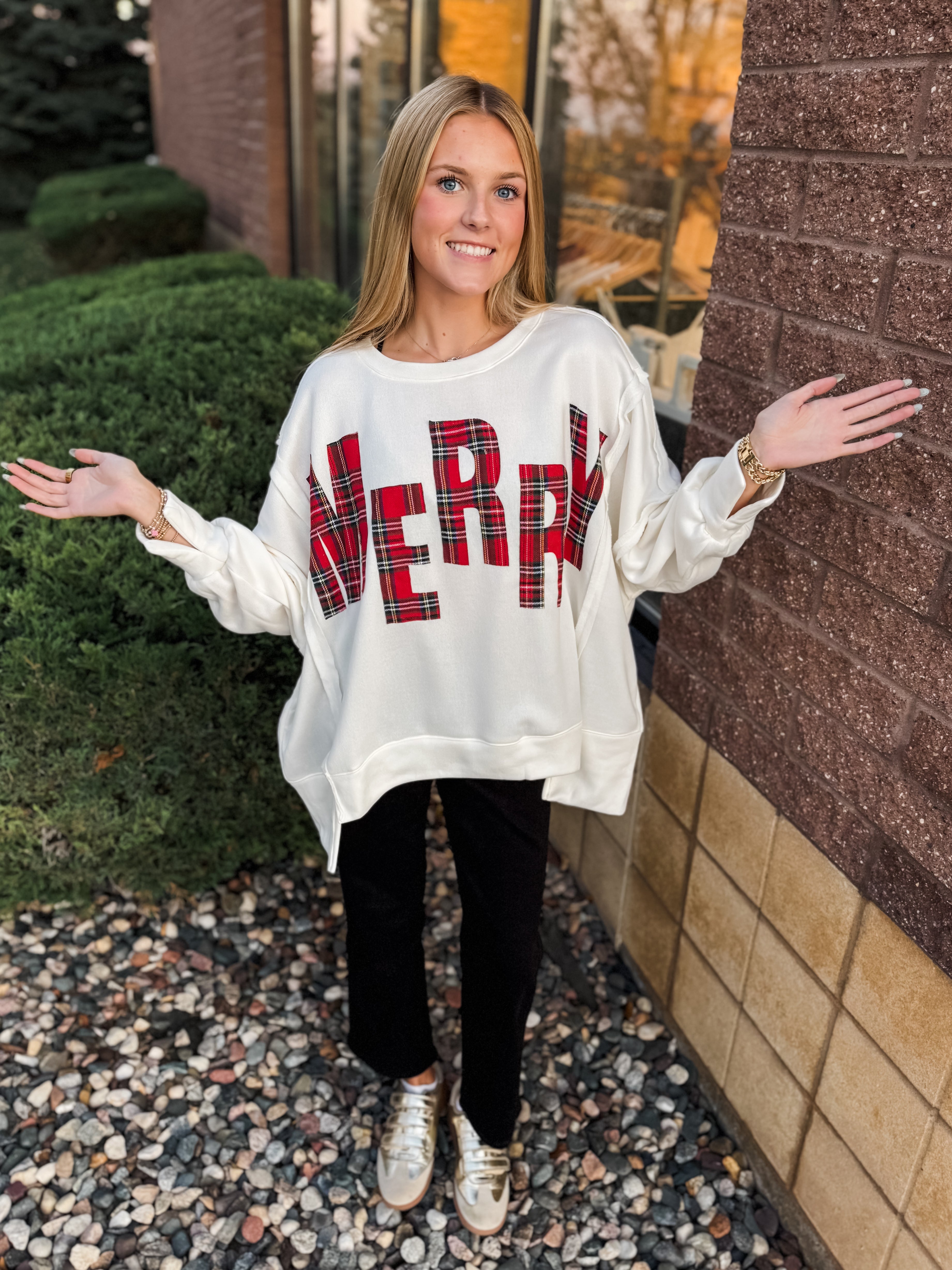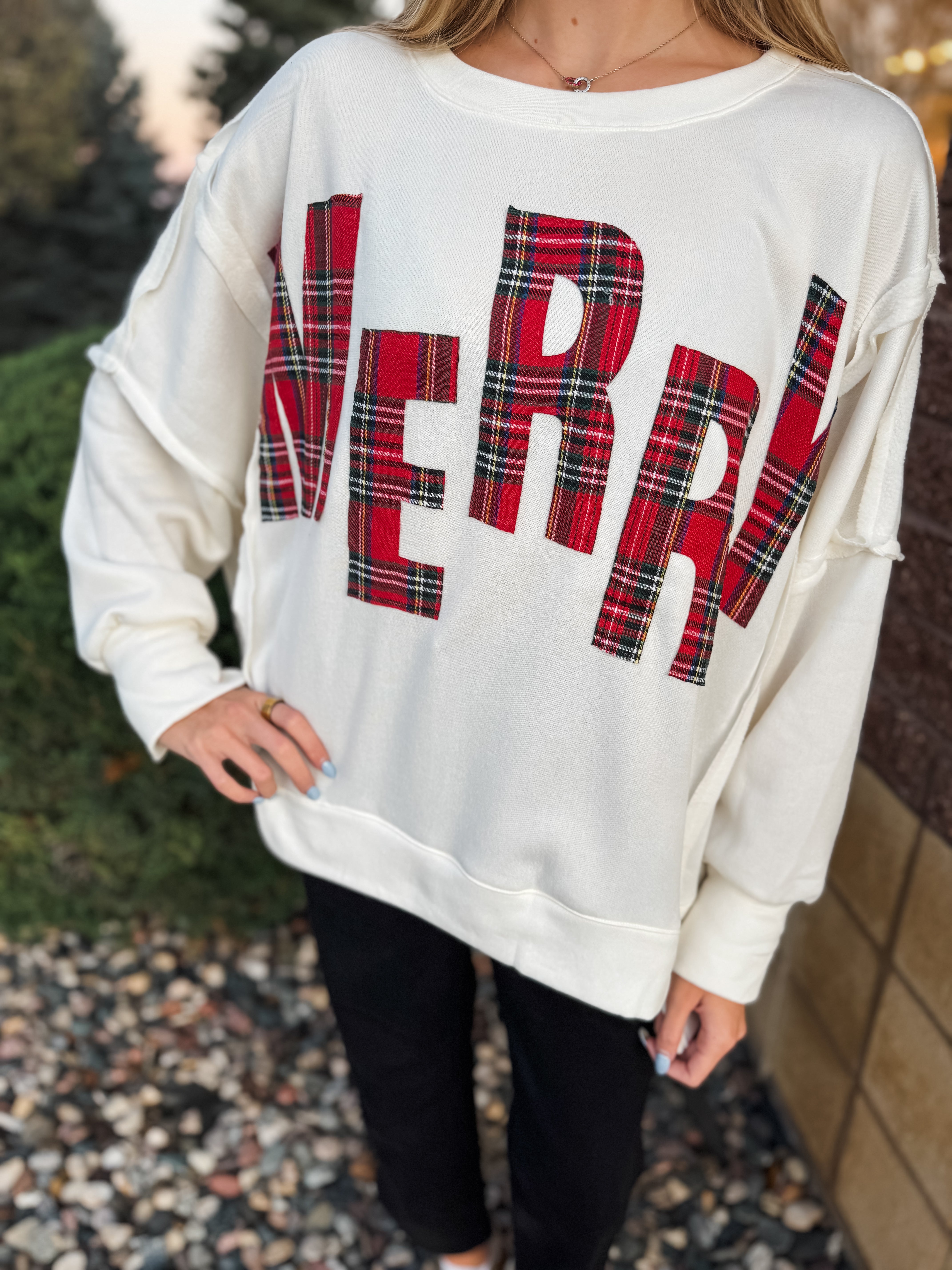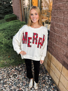 Christmas Plaid Merry Lettering Fleece Sweatshirt