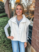 Cozy Sherpa Vest Jacket With Tie-up Side Details