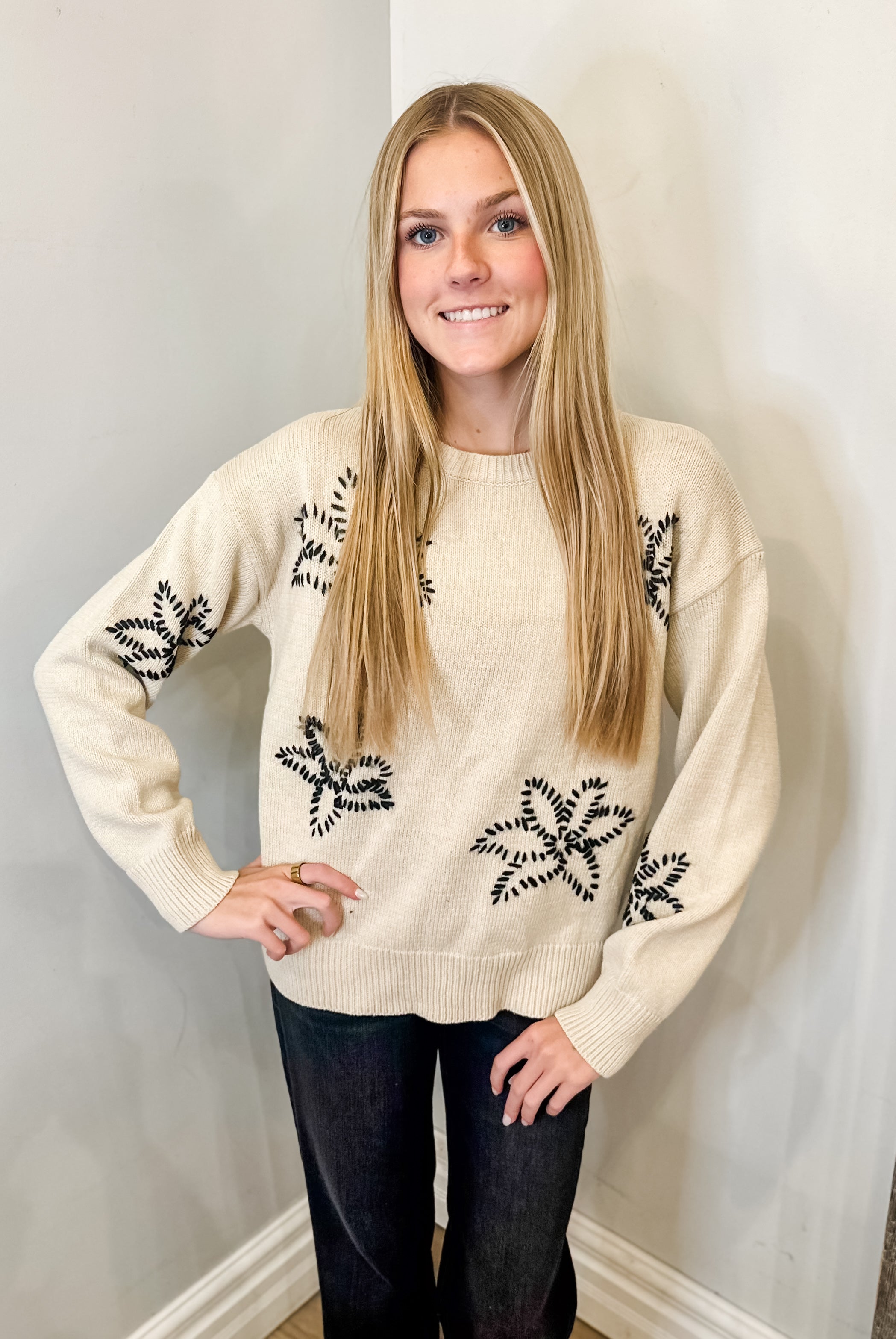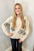 Flower Contrast Whipstitch Drop Sleeve Sweater