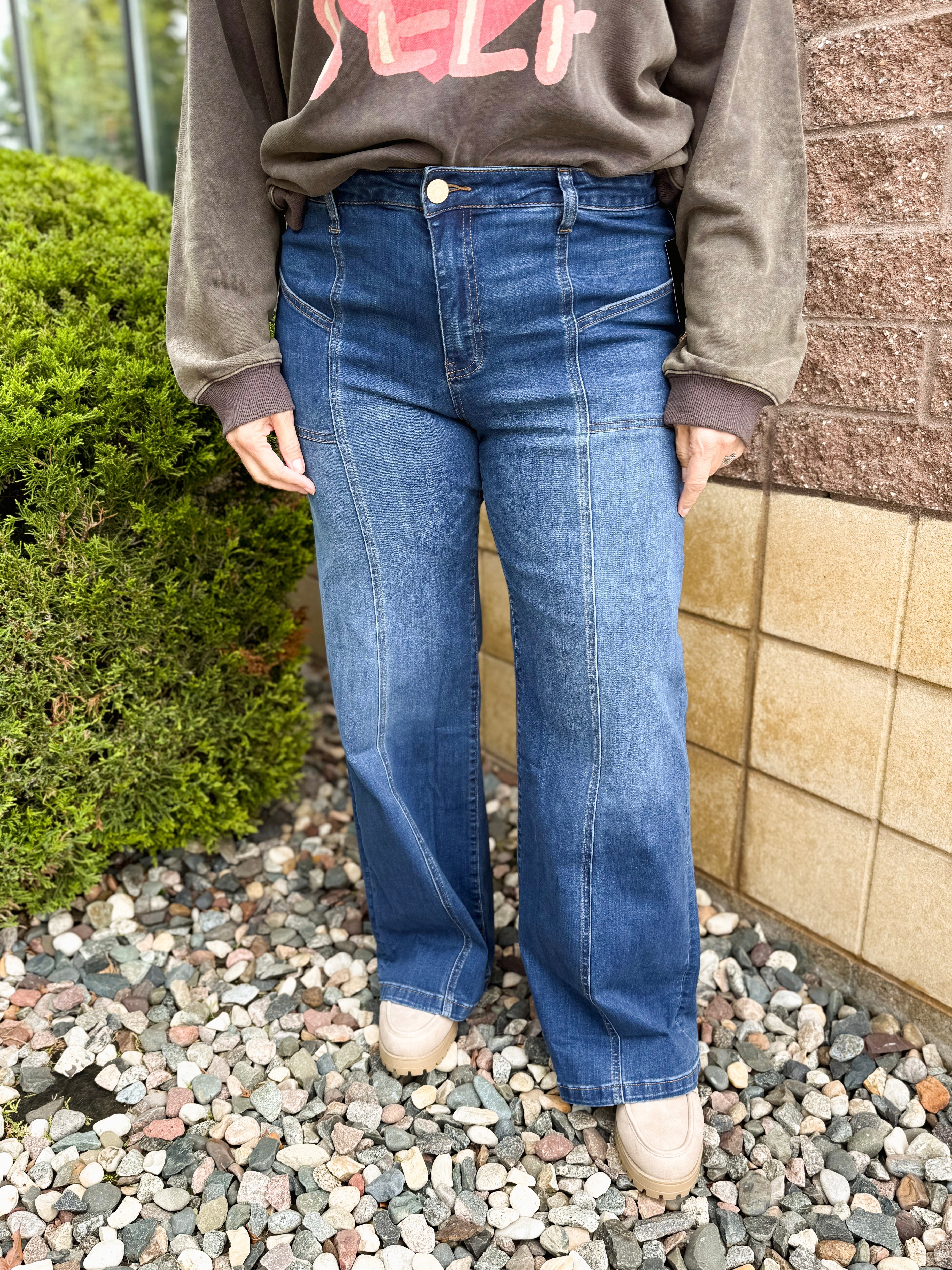 Jean High Rise Front Seam Patch Front Pockets