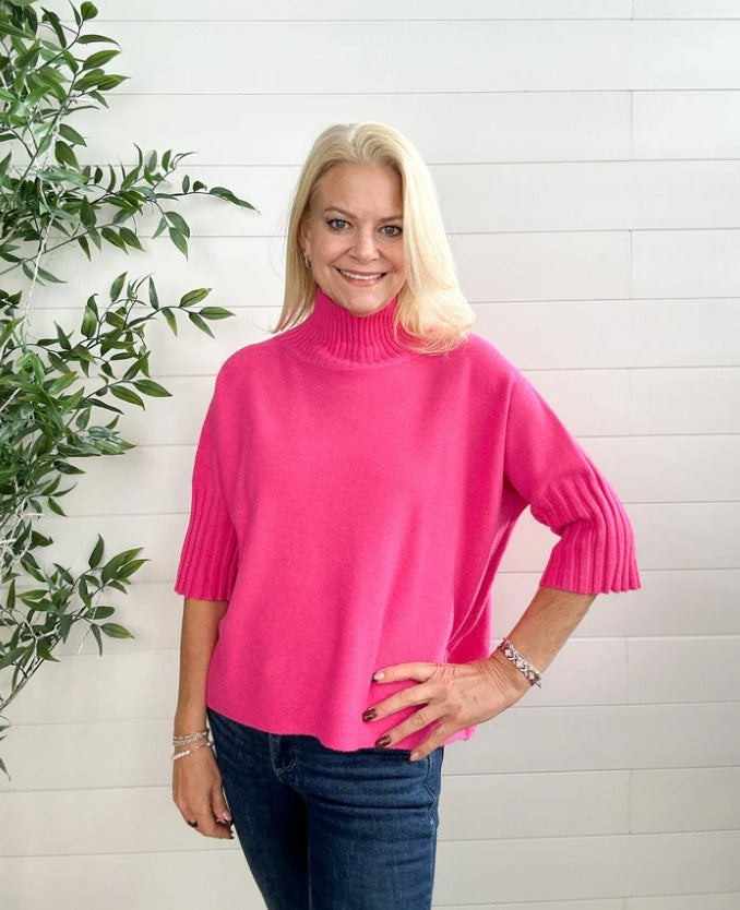 Made in Italy Mock Neck 3/4 Sleeve Sweater
