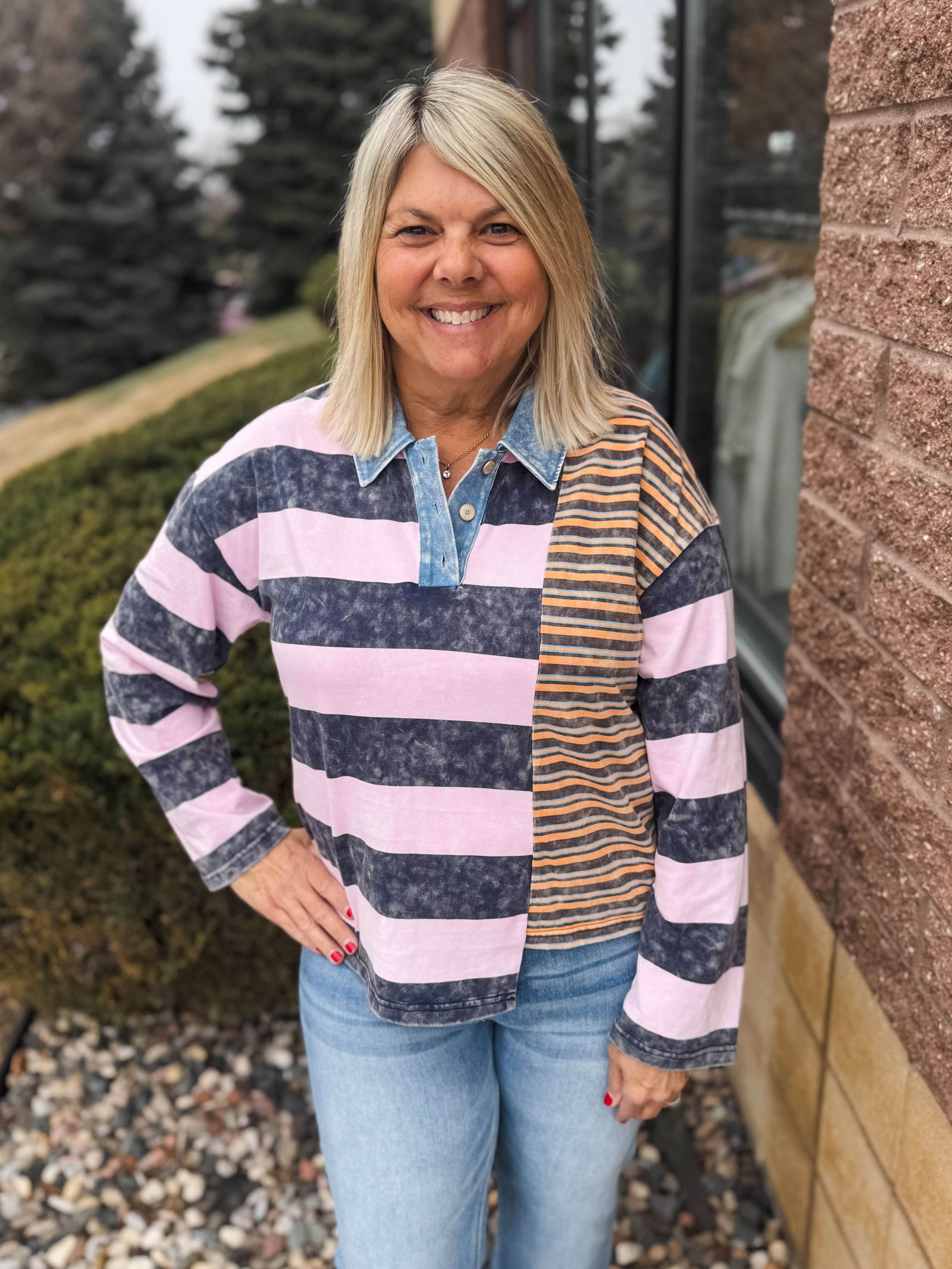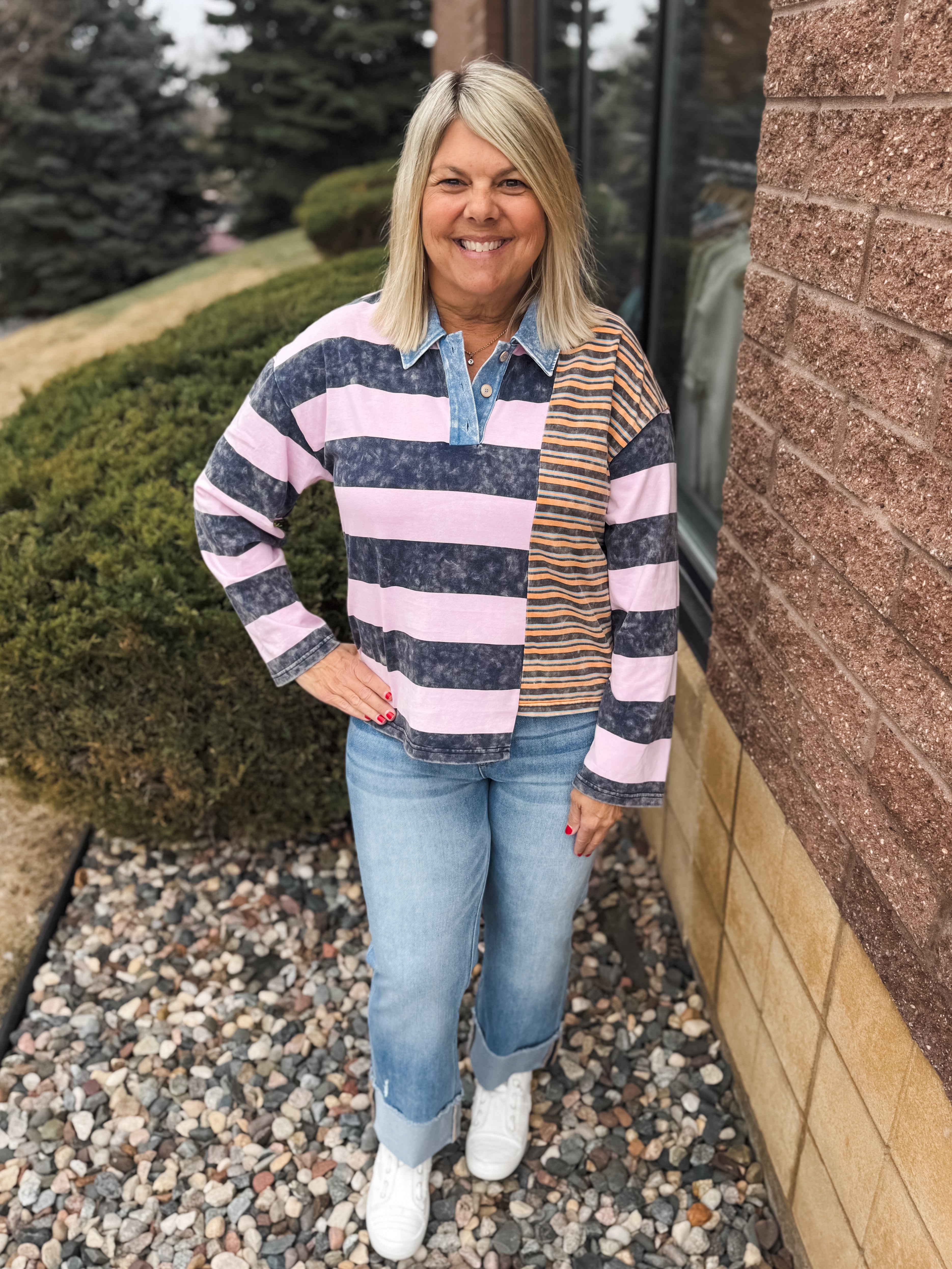 Mixed Stripe Washed Polo Shirt