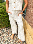 Stripe Front Pocket Detail Wide Leg Pants