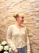 Textured Weave V Neck Button Down Cardigan
