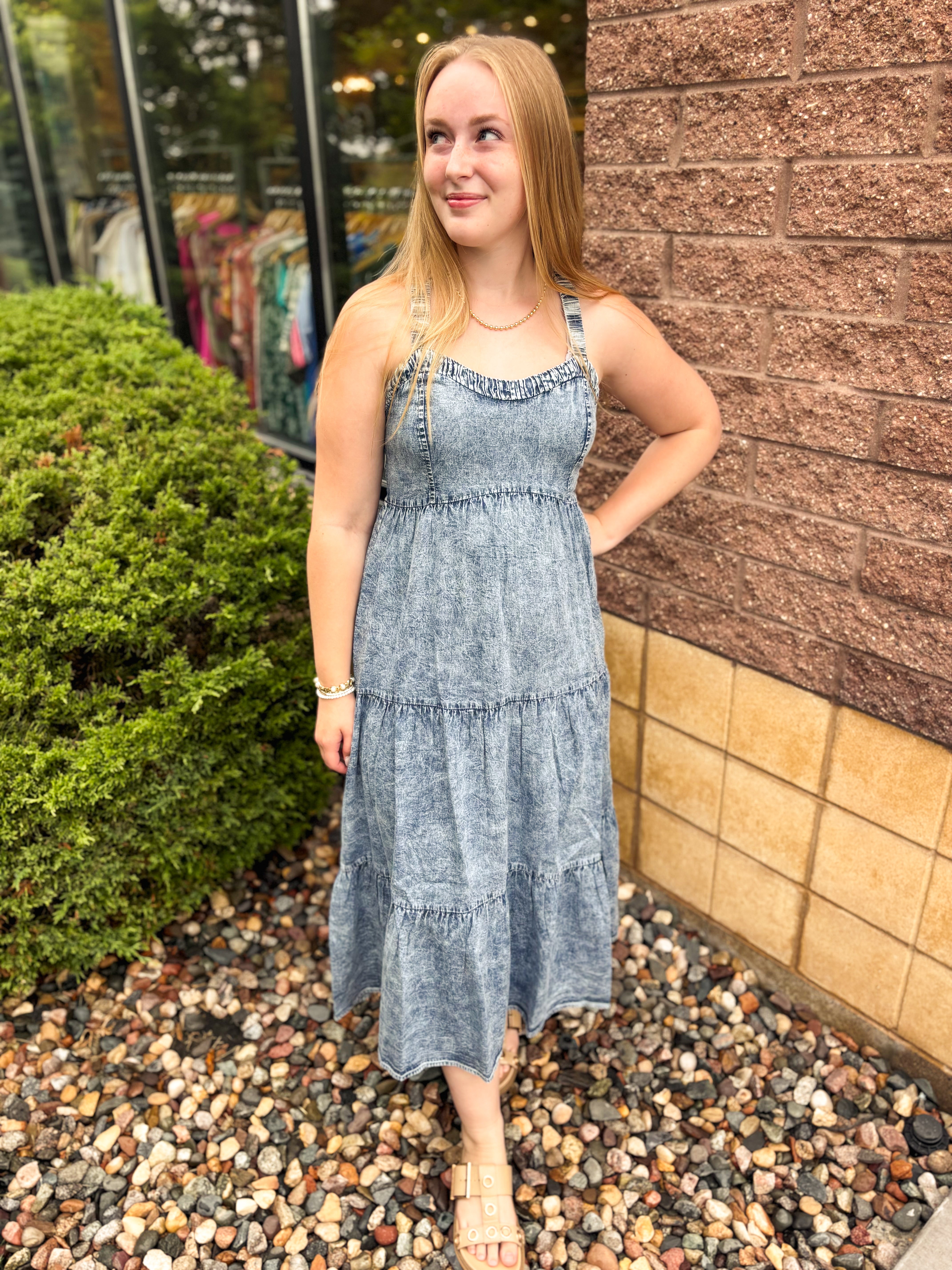 Washed Tencel Tiered Dress