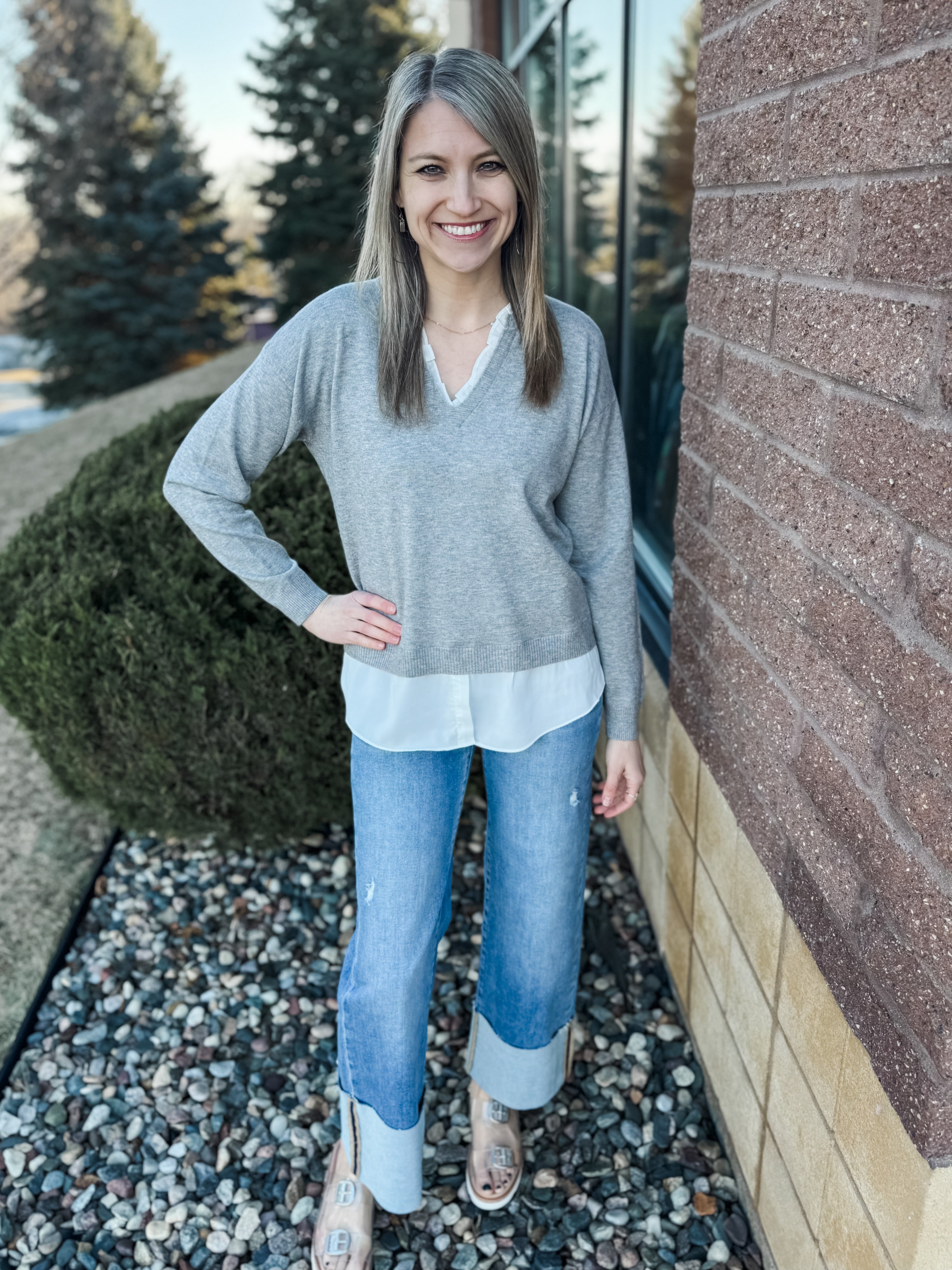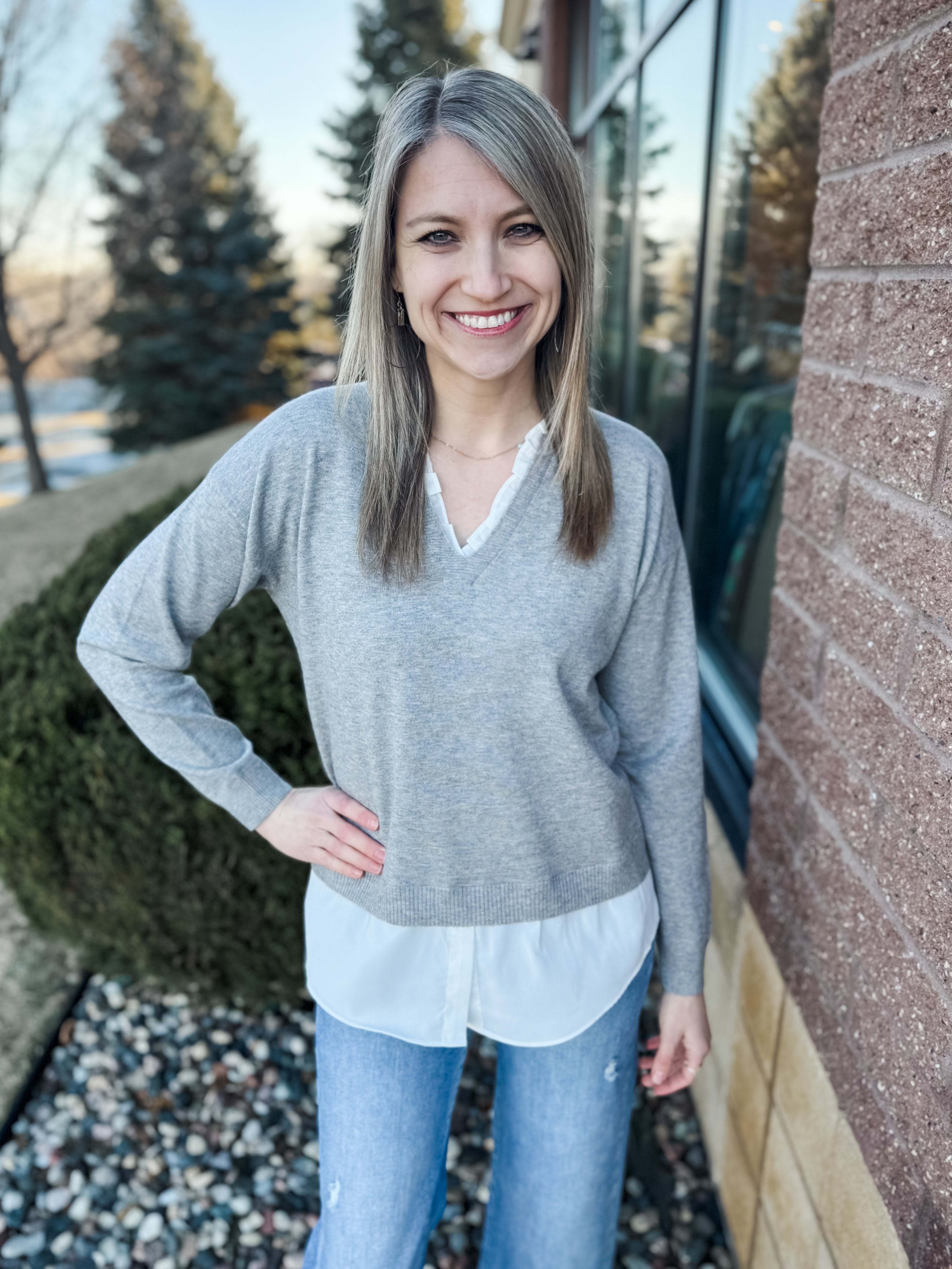 V-Neck Knit Woven Combo Top