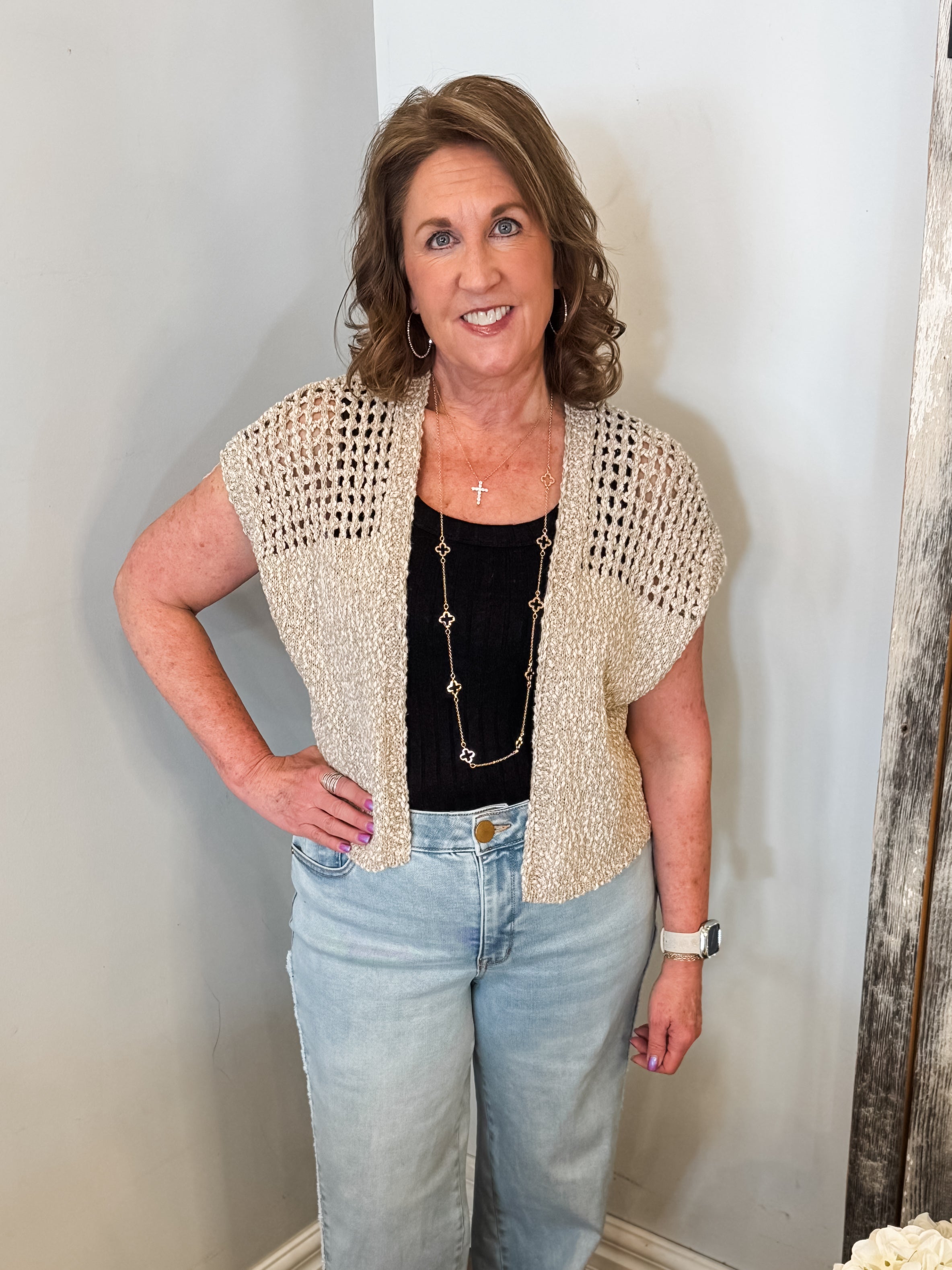 Open Front Knit Sleeveless Cardigan