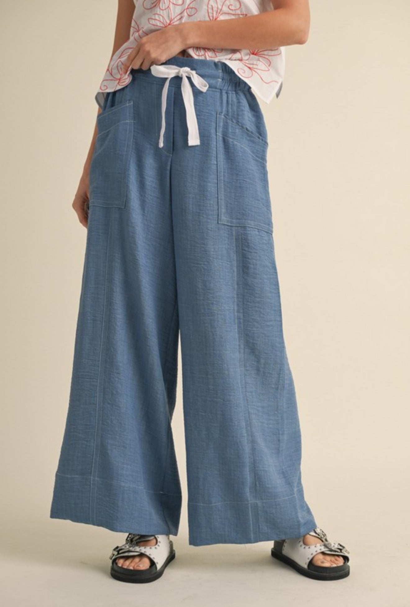 Machine Wash Wide Legs Pants W/drawstring Waist