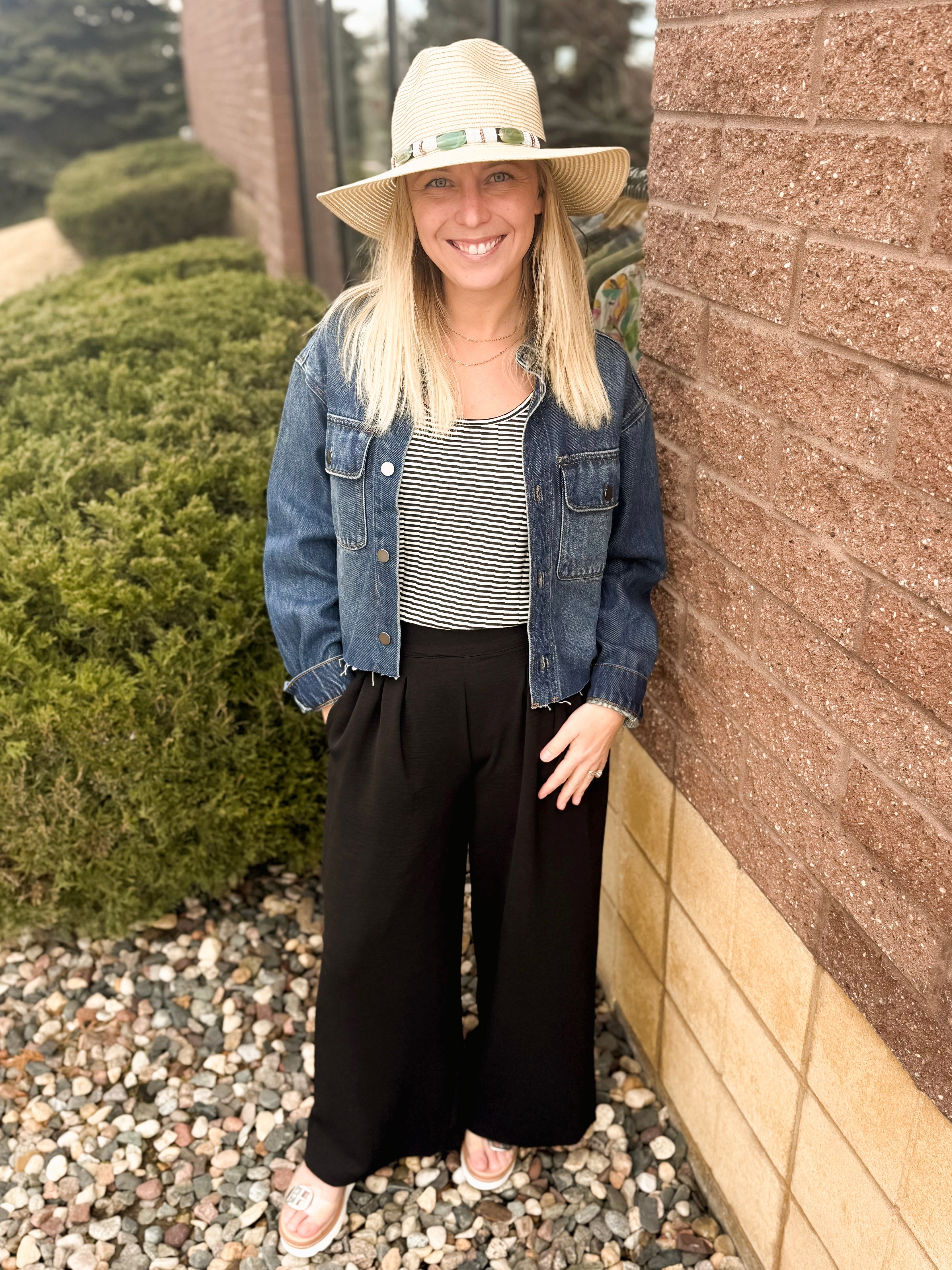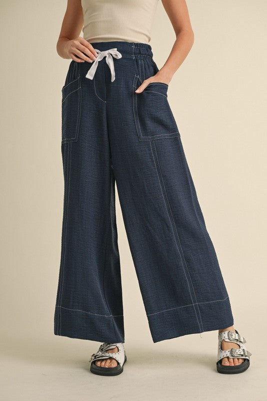 Textured Wide Leg Woven Pants