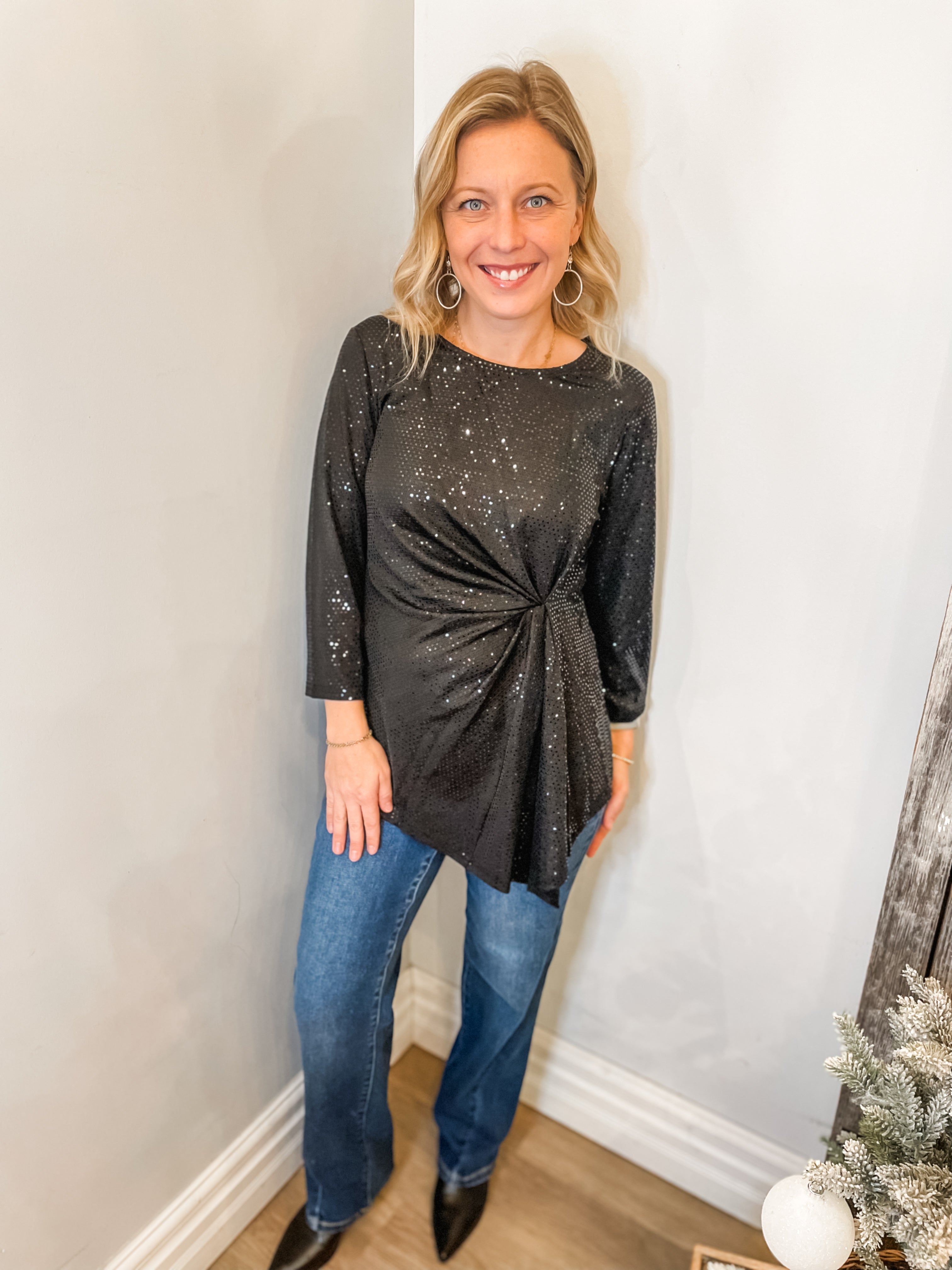 Dot Sequin Ruched Asymmetric Blouse