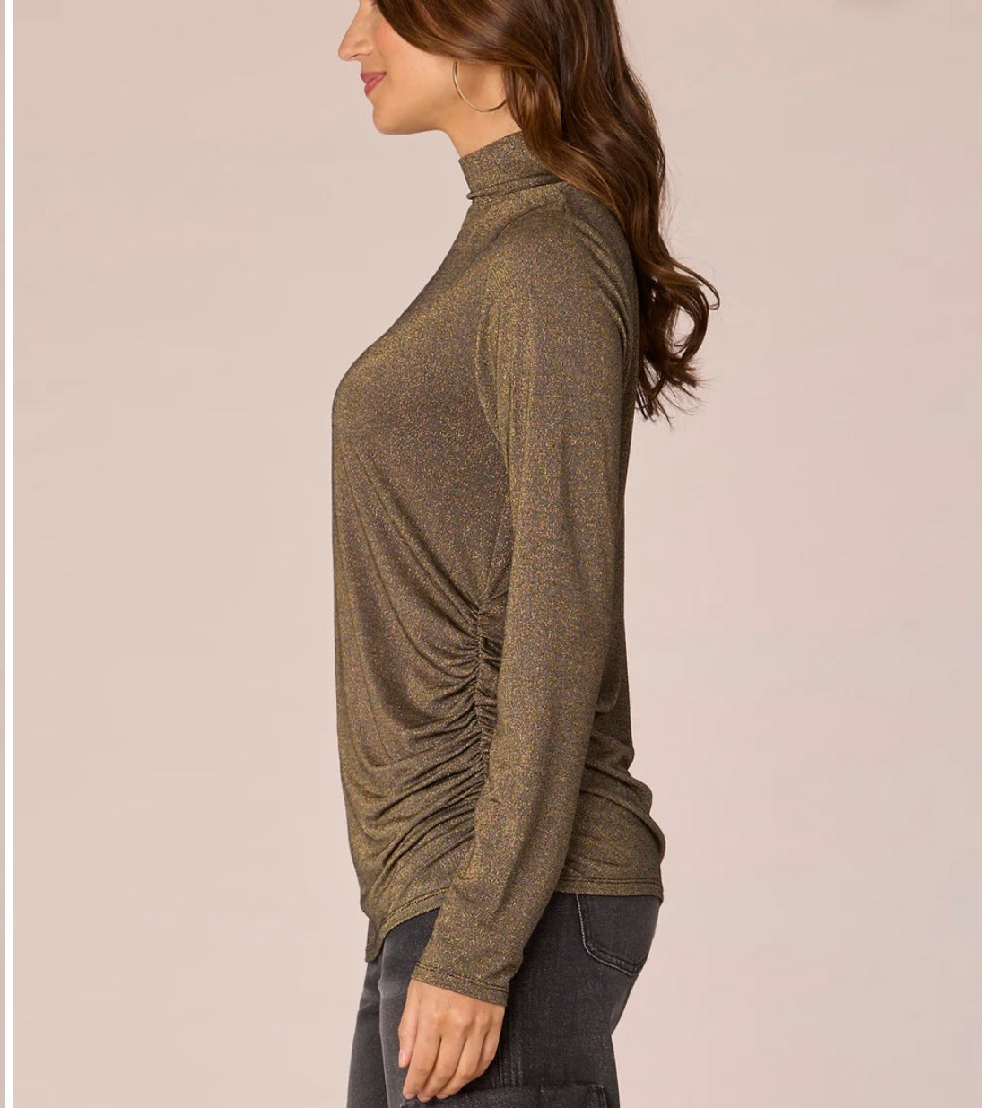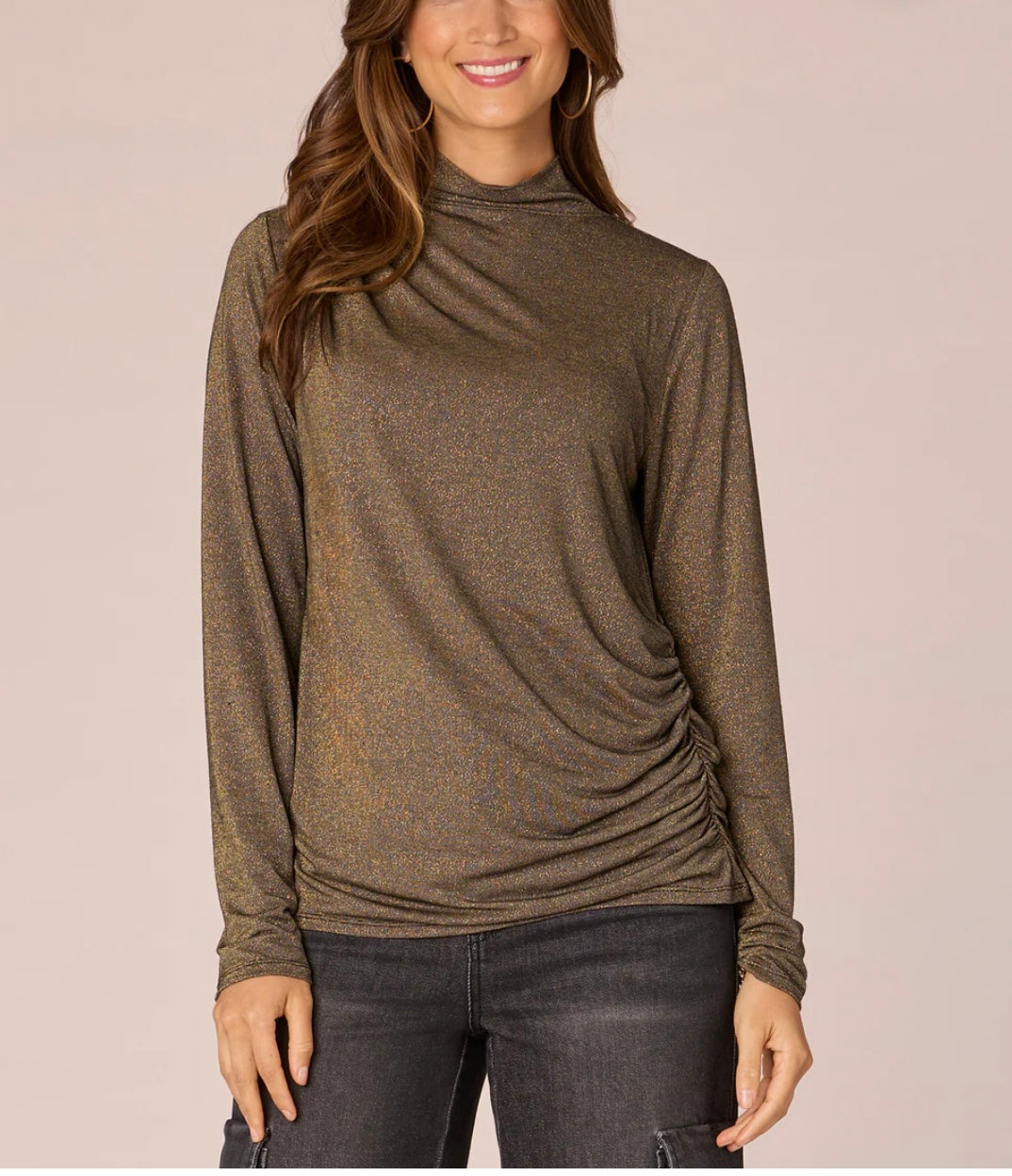 Long Sleeve Mock Neck Asymmetrical Ruching Detail Knit Top