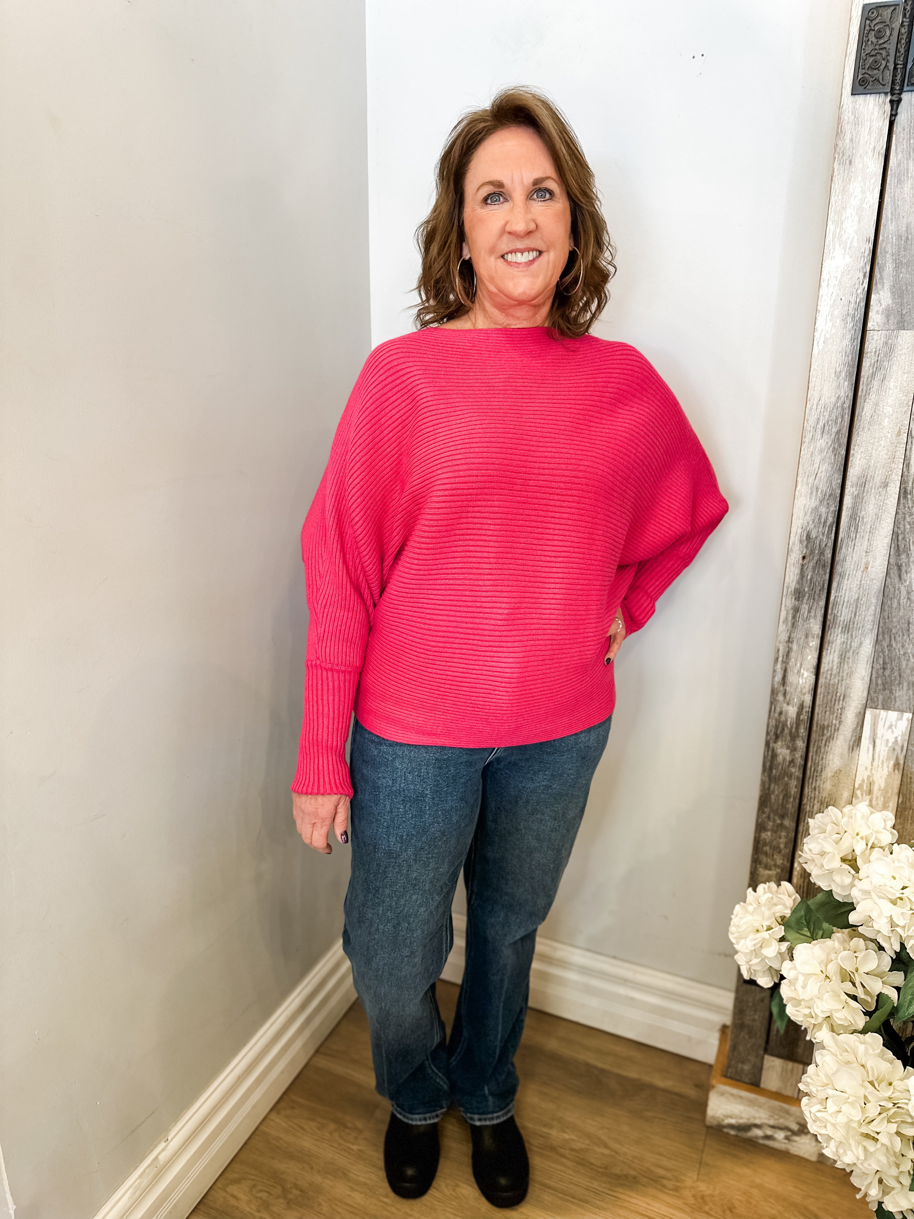 Ribbed Boat Neckline Bubble Sleeve Sweater Top