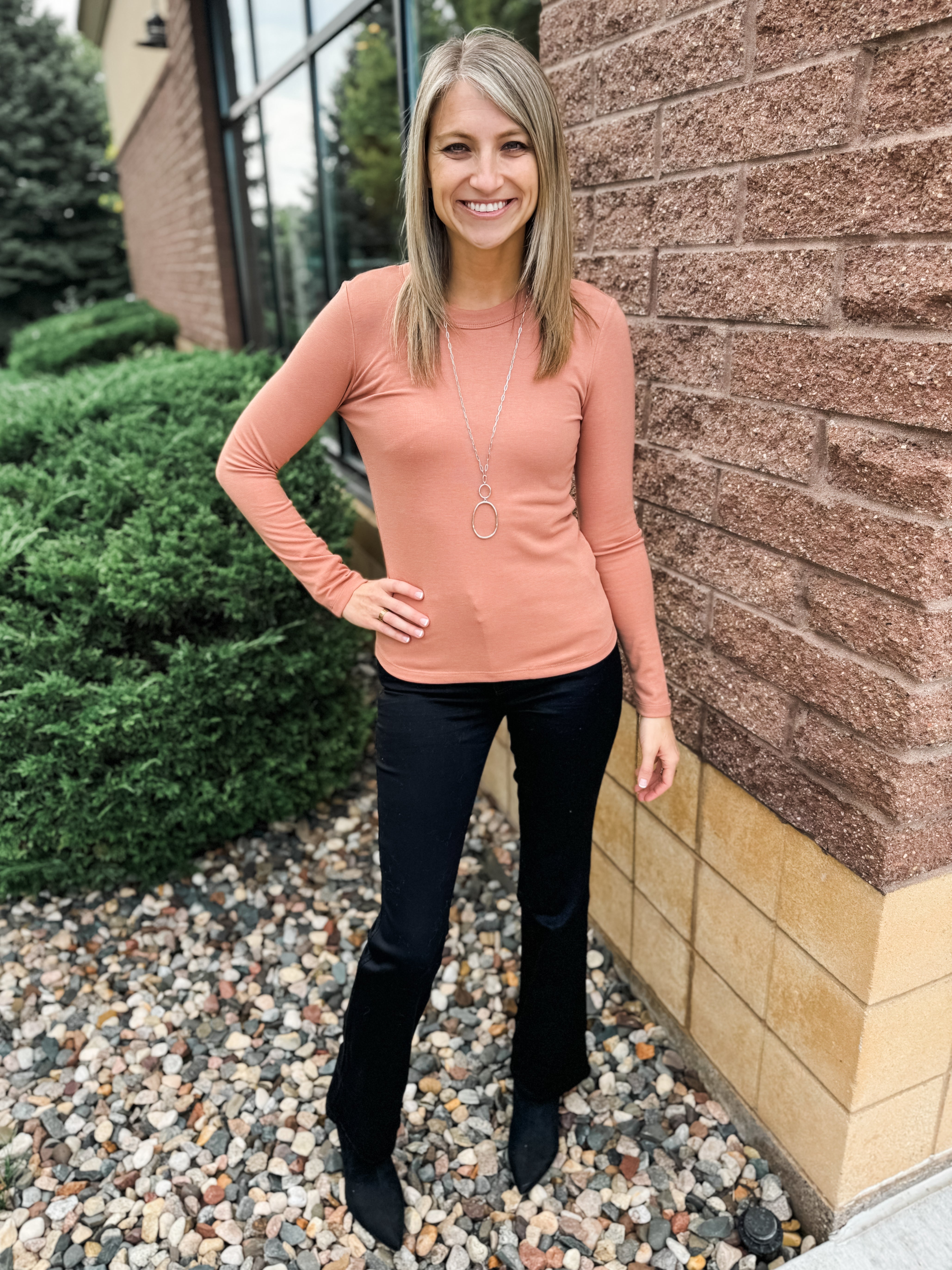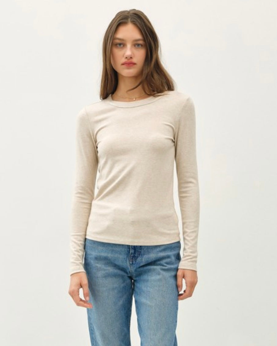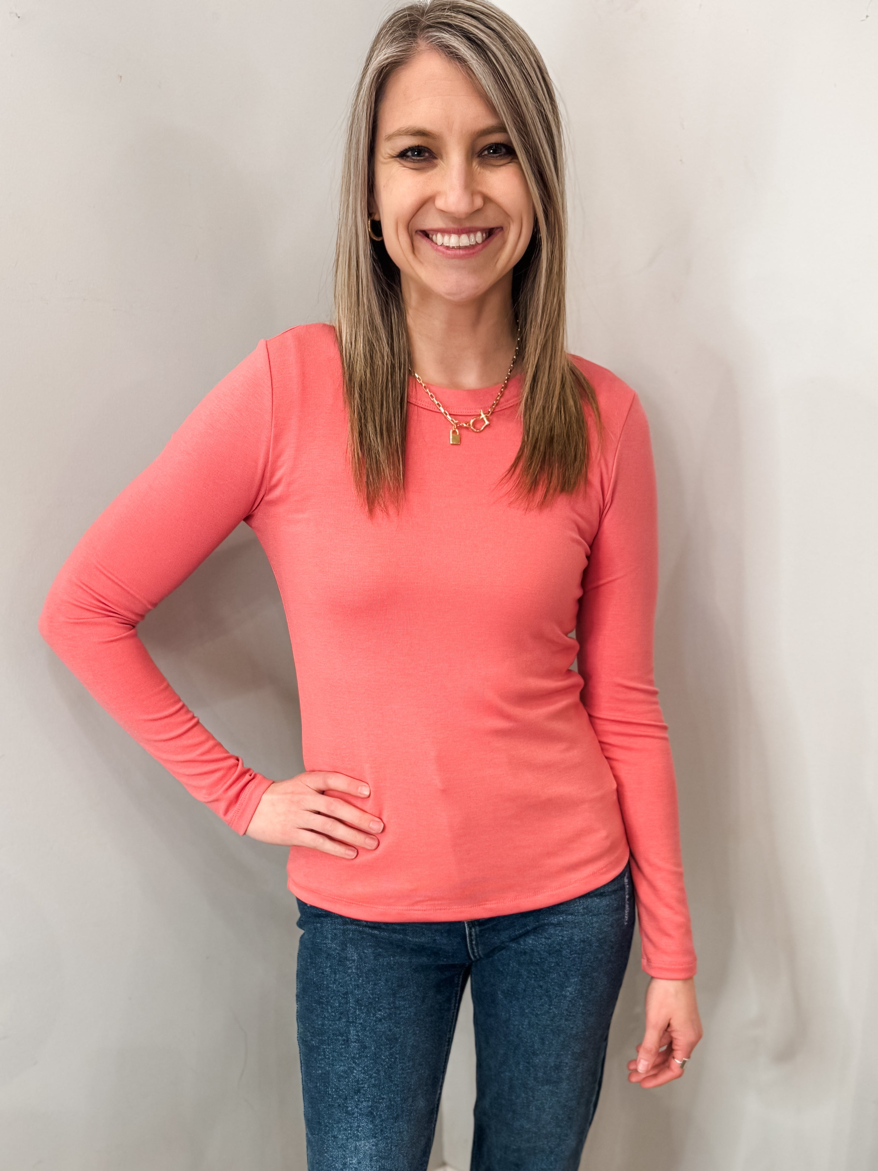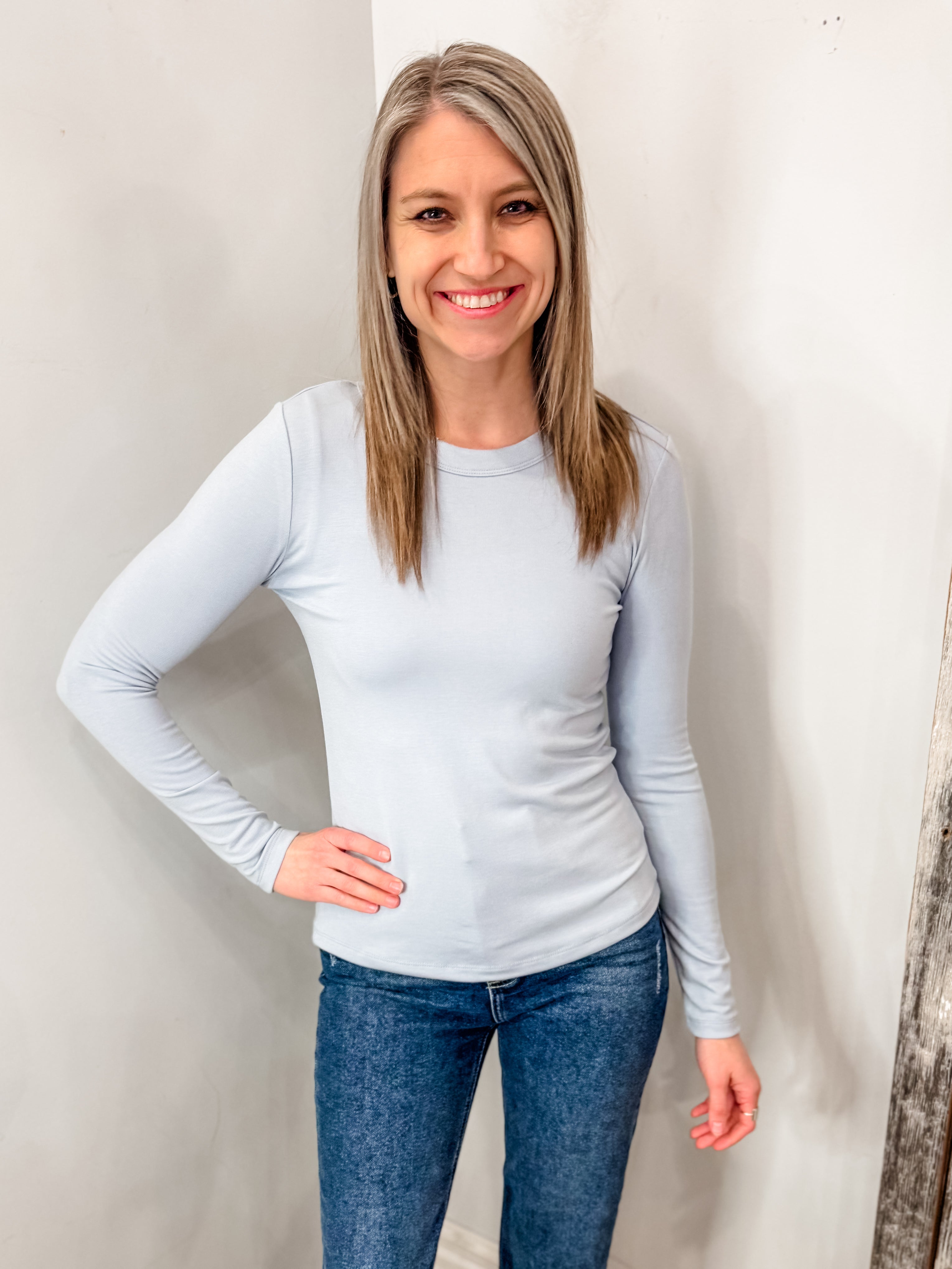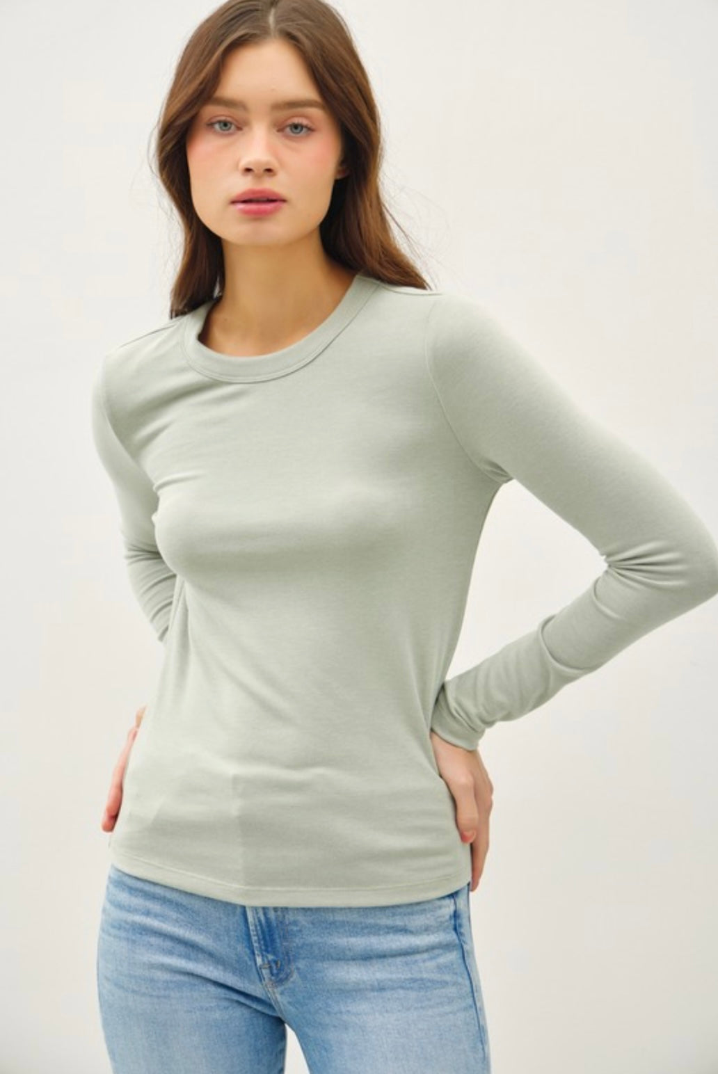 SOFT BASIC SPLIT NECK LONG SLEEVE KNIT TEE