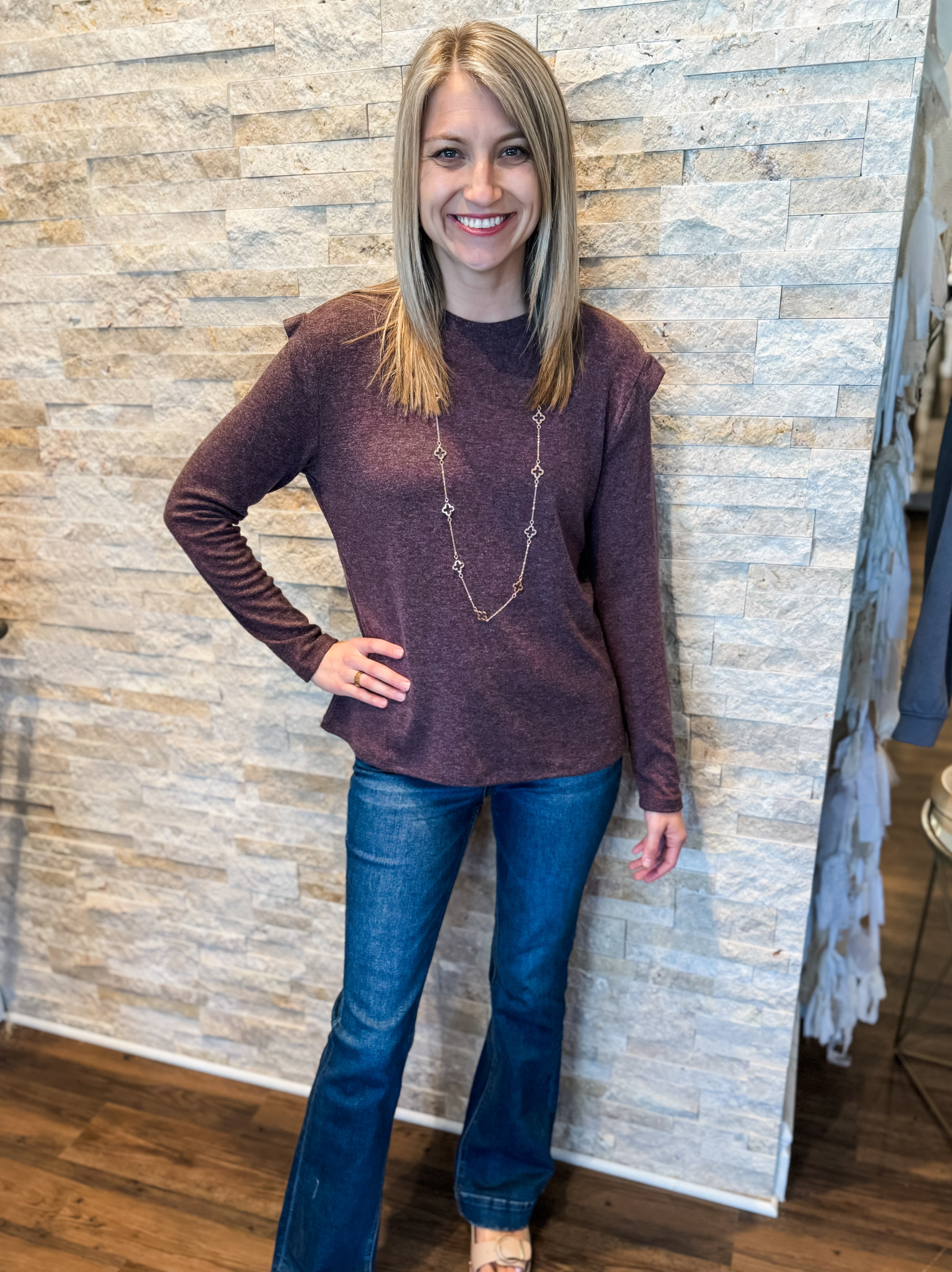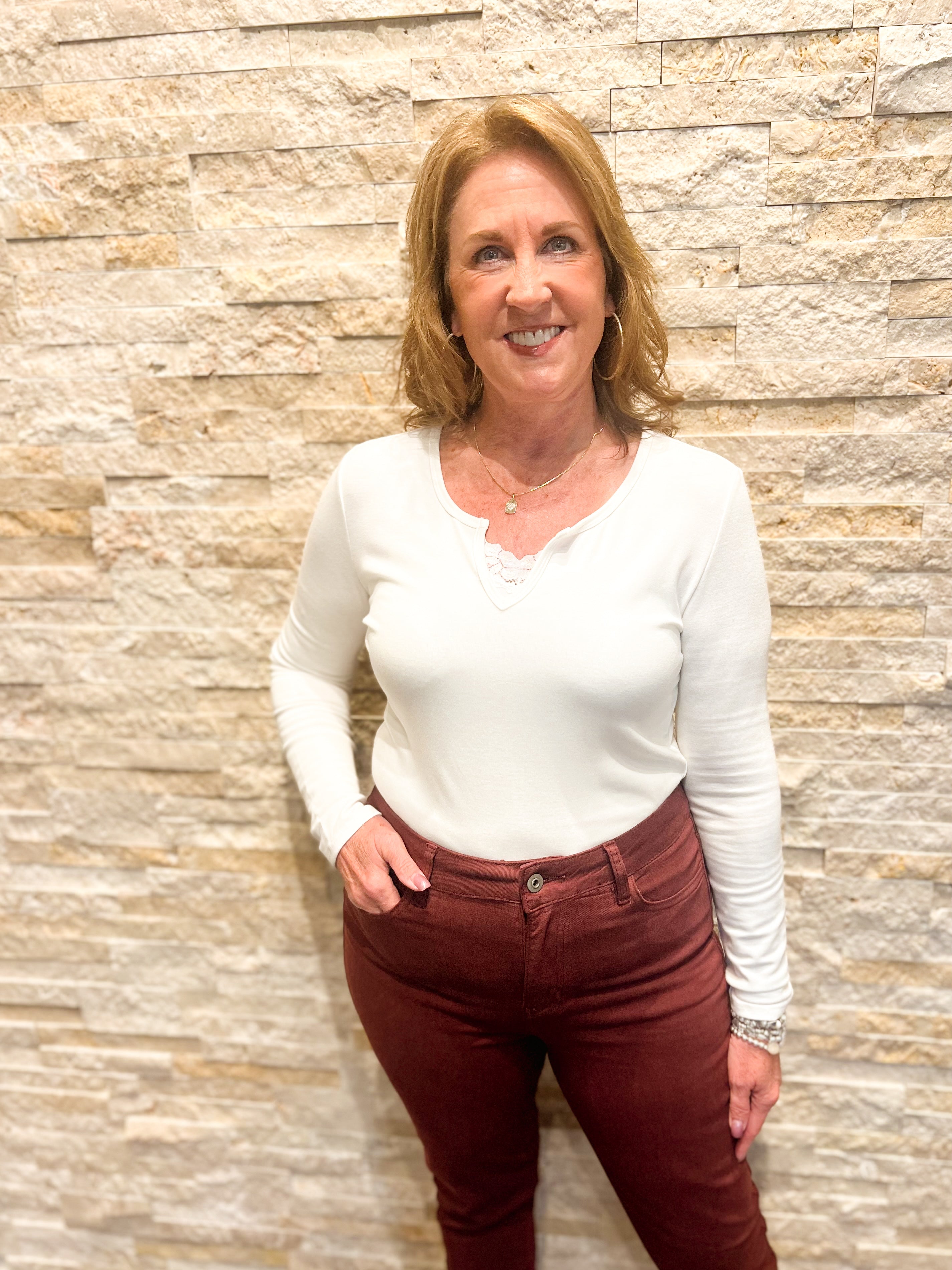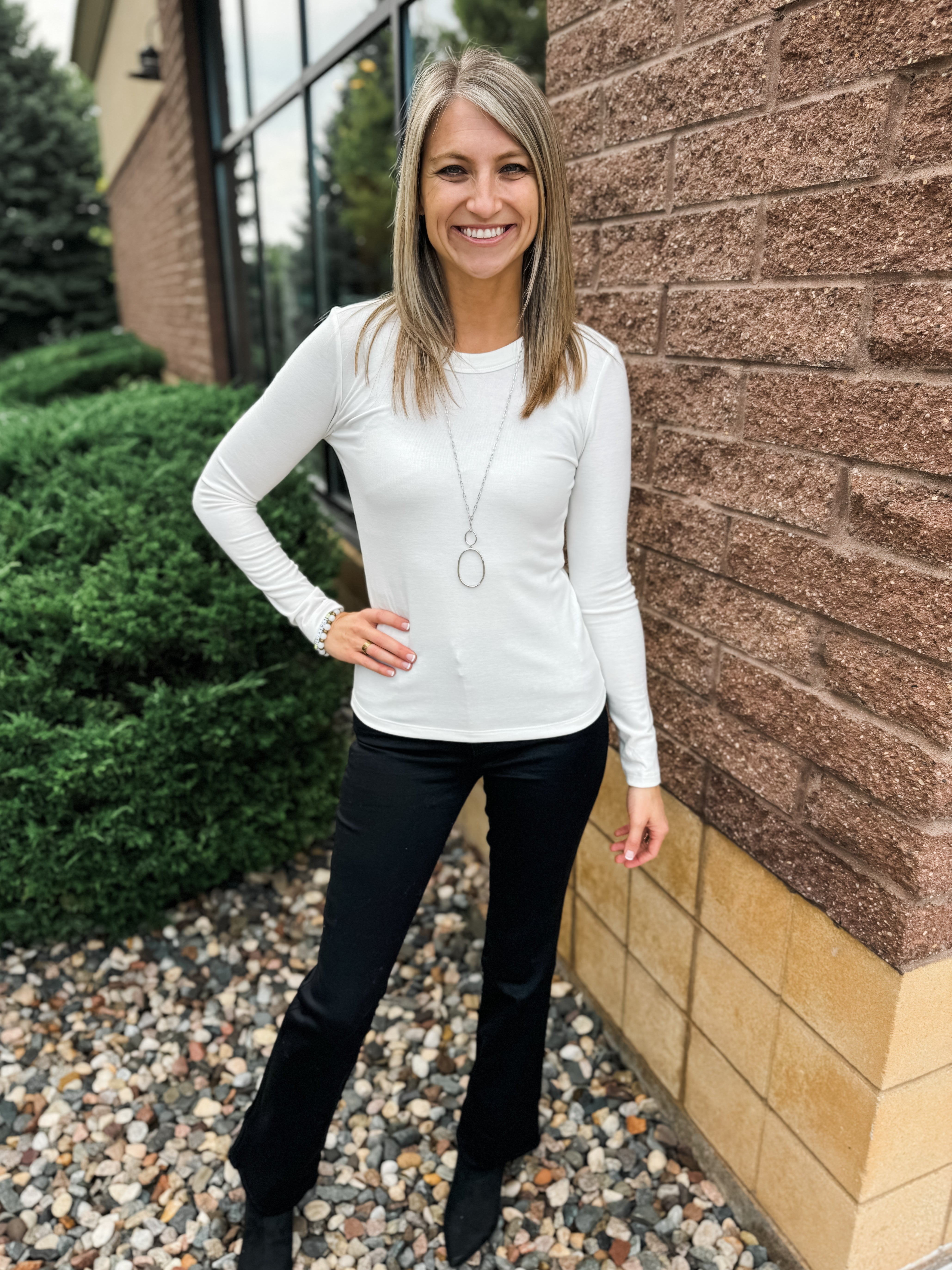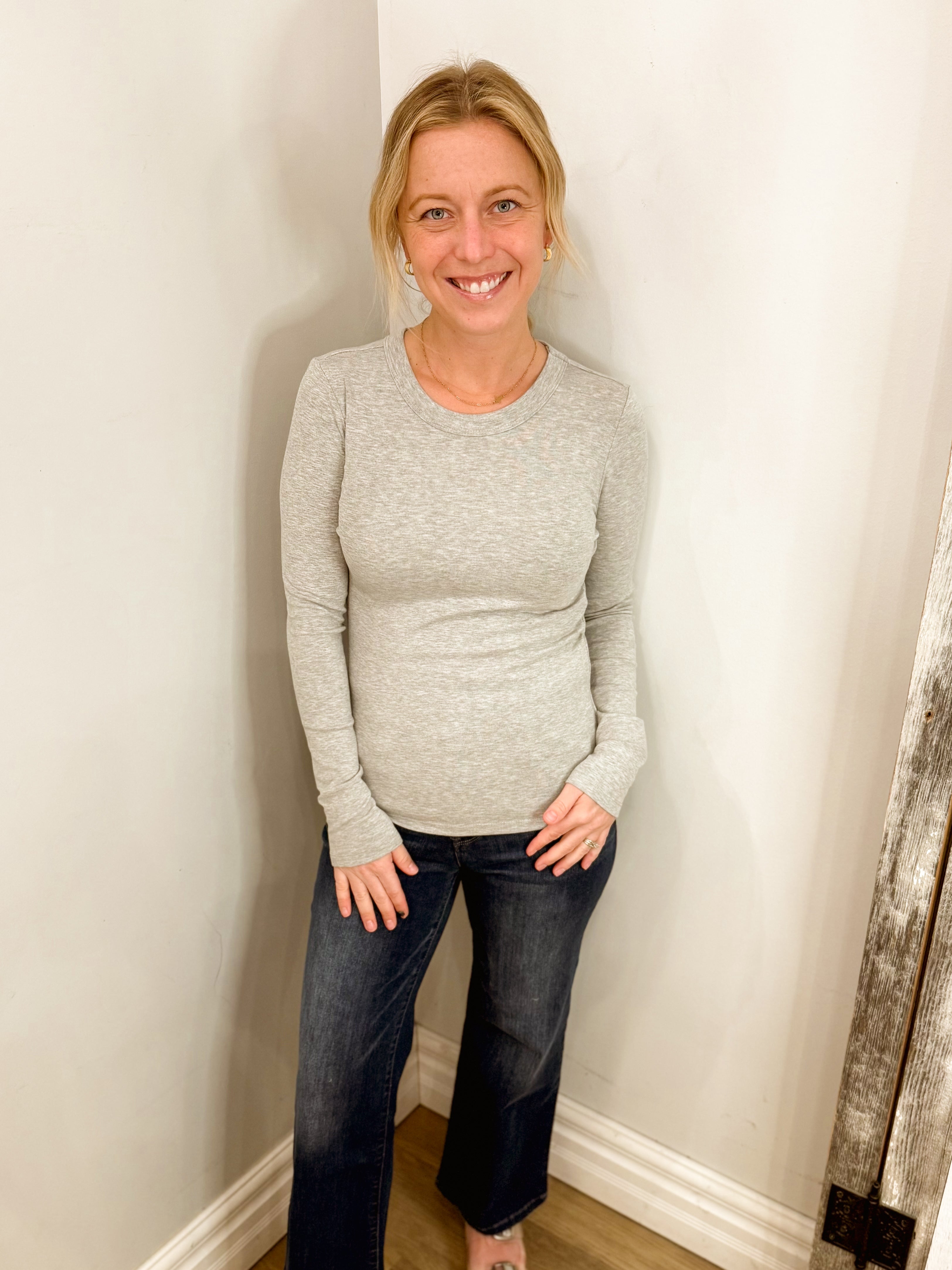SOFT BASIC SPLIT NECK LONG SLEEVE KNIT TEE