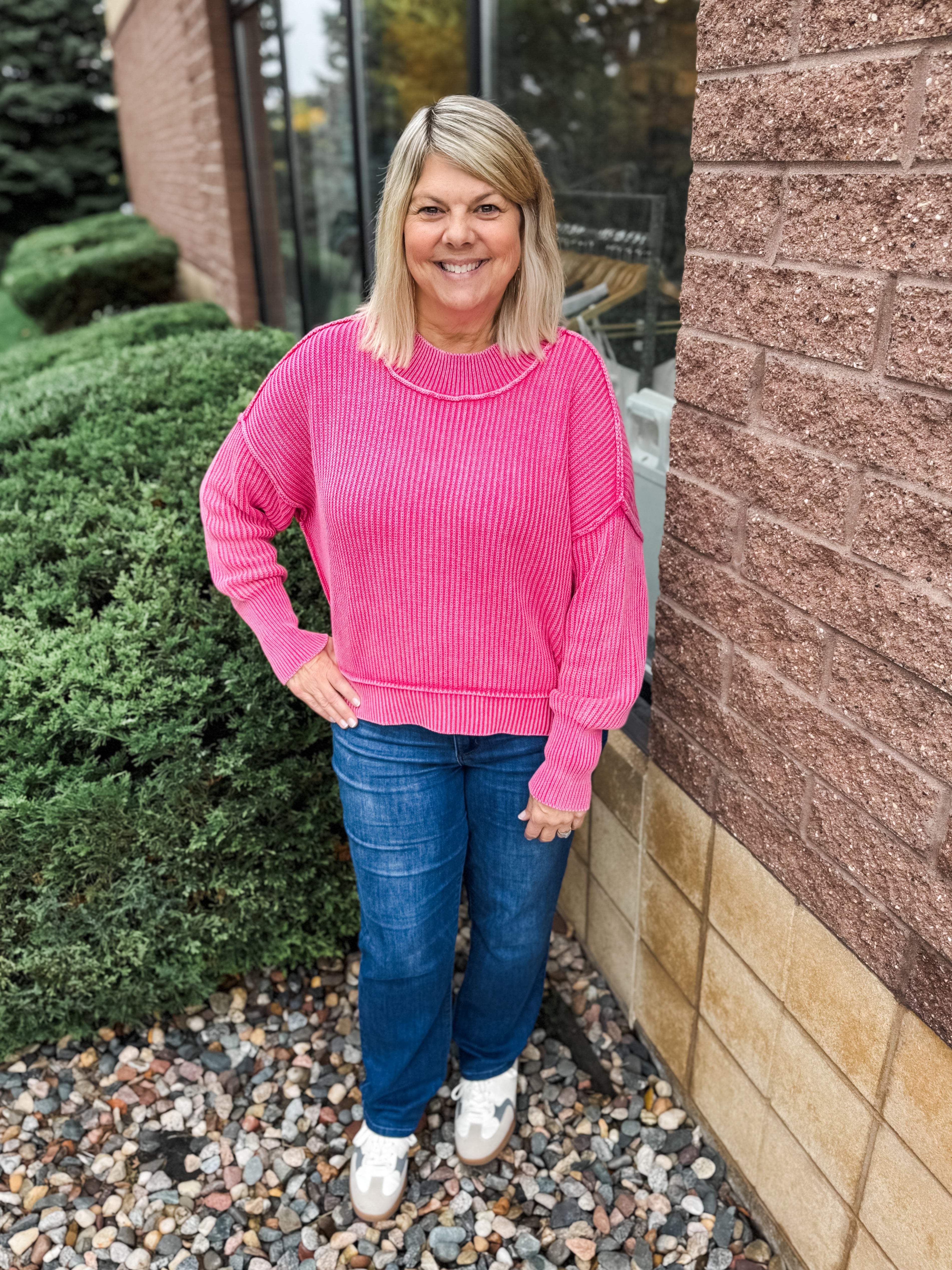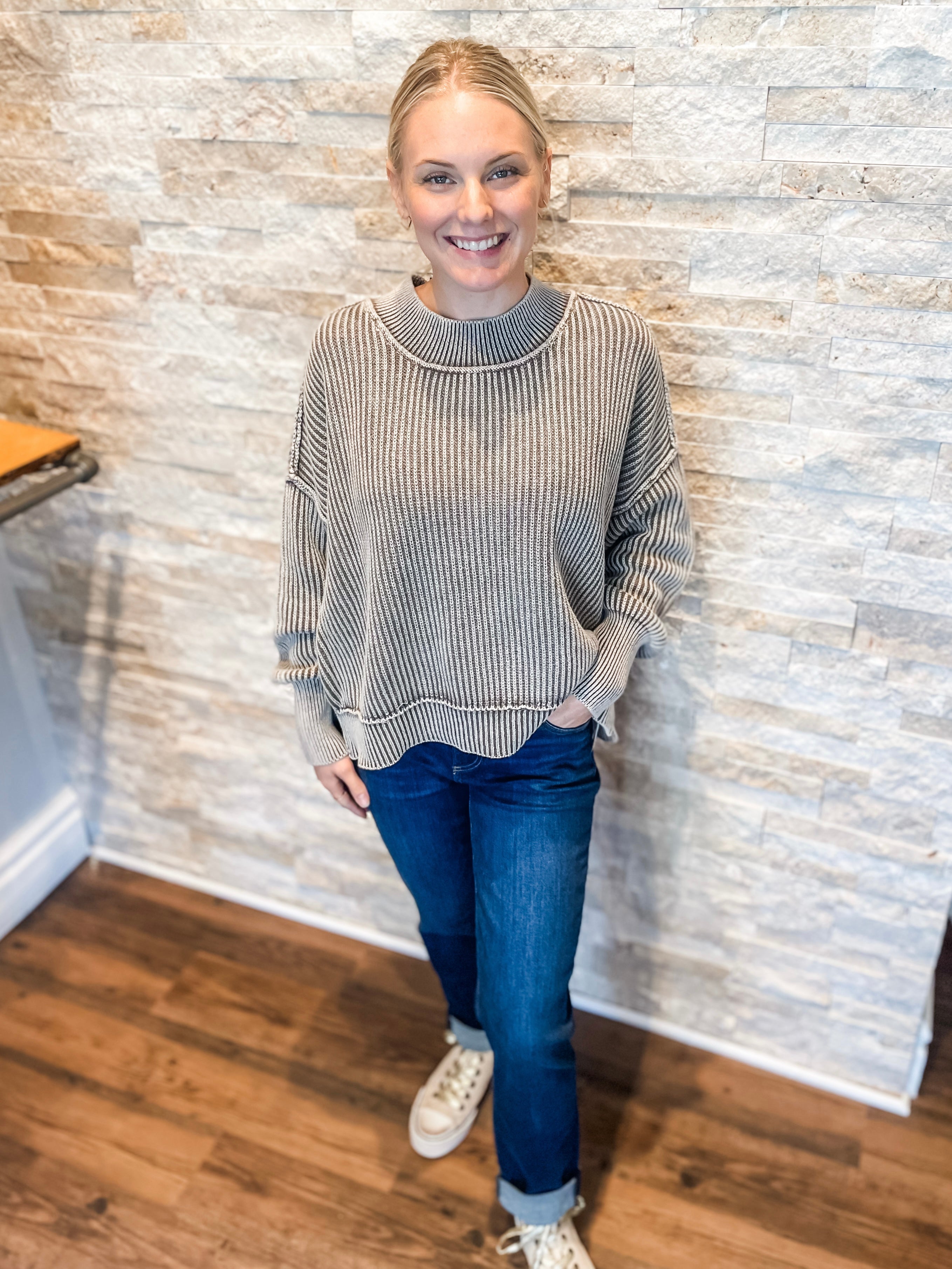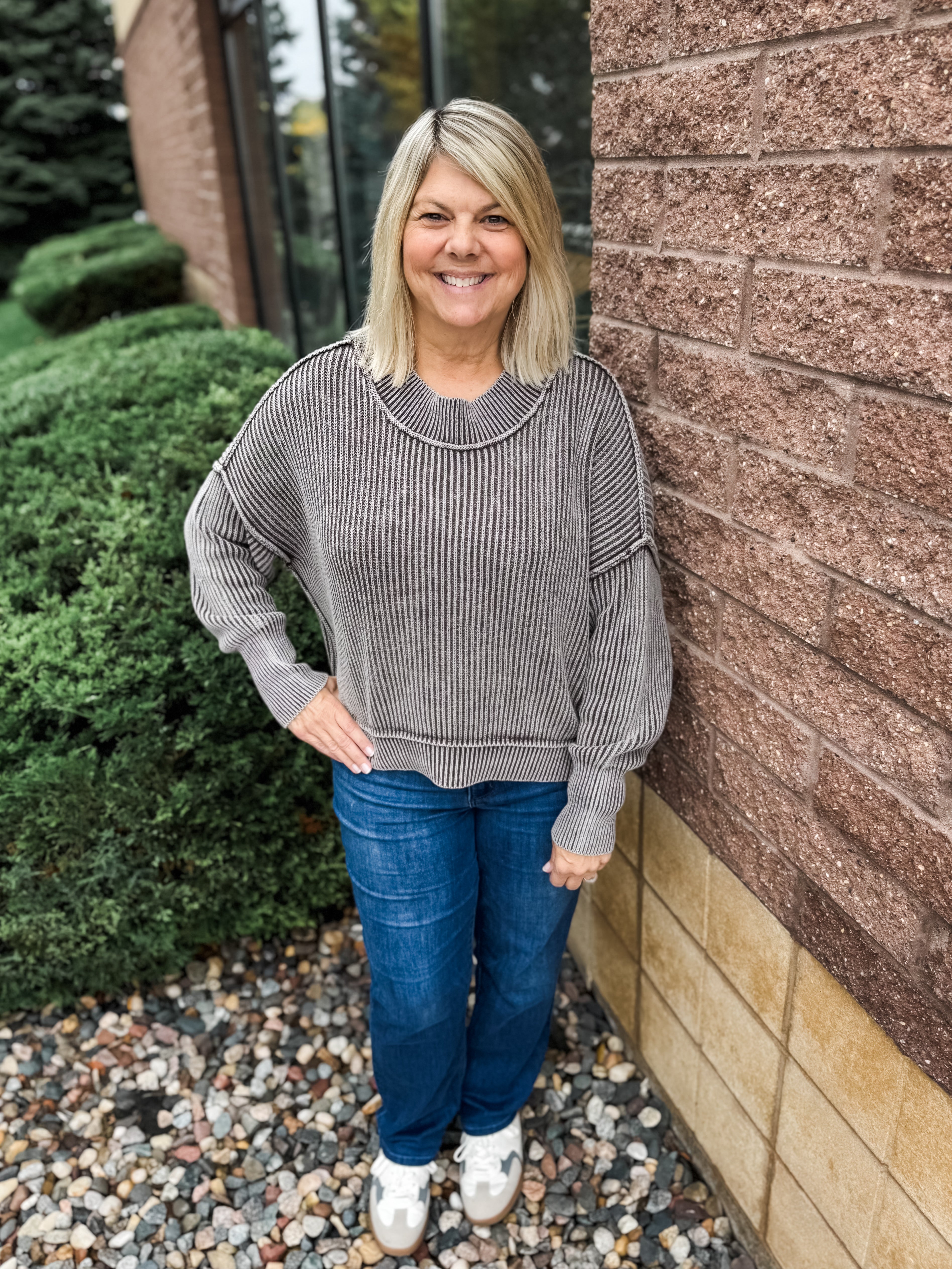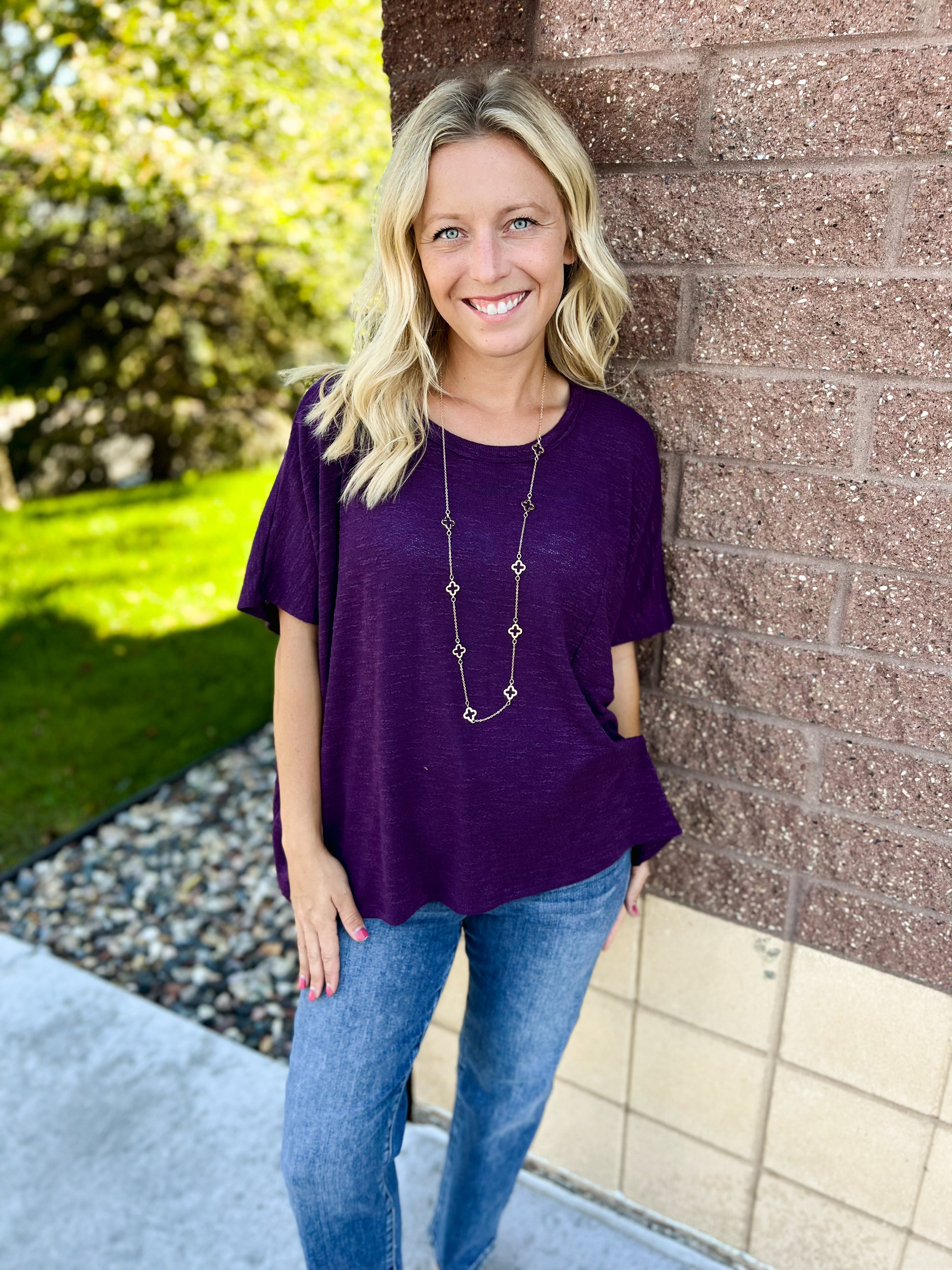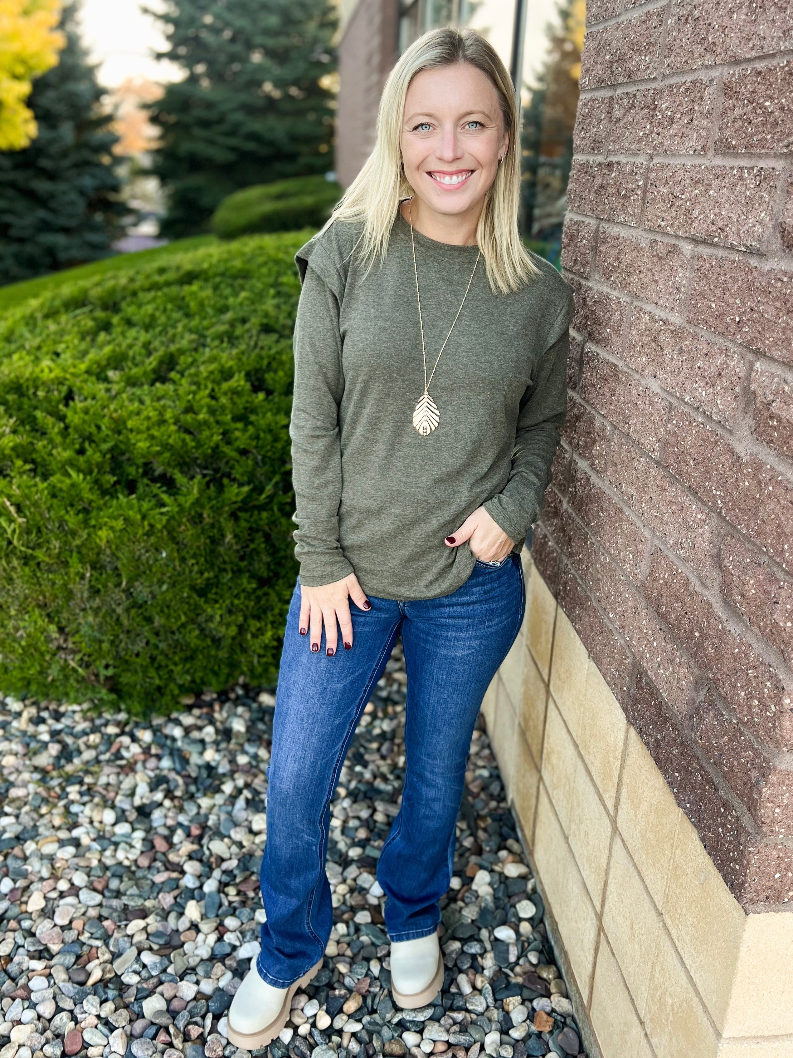 SOFT BASIC SPLIT NECK LONG SLEEVE KNIT TEE