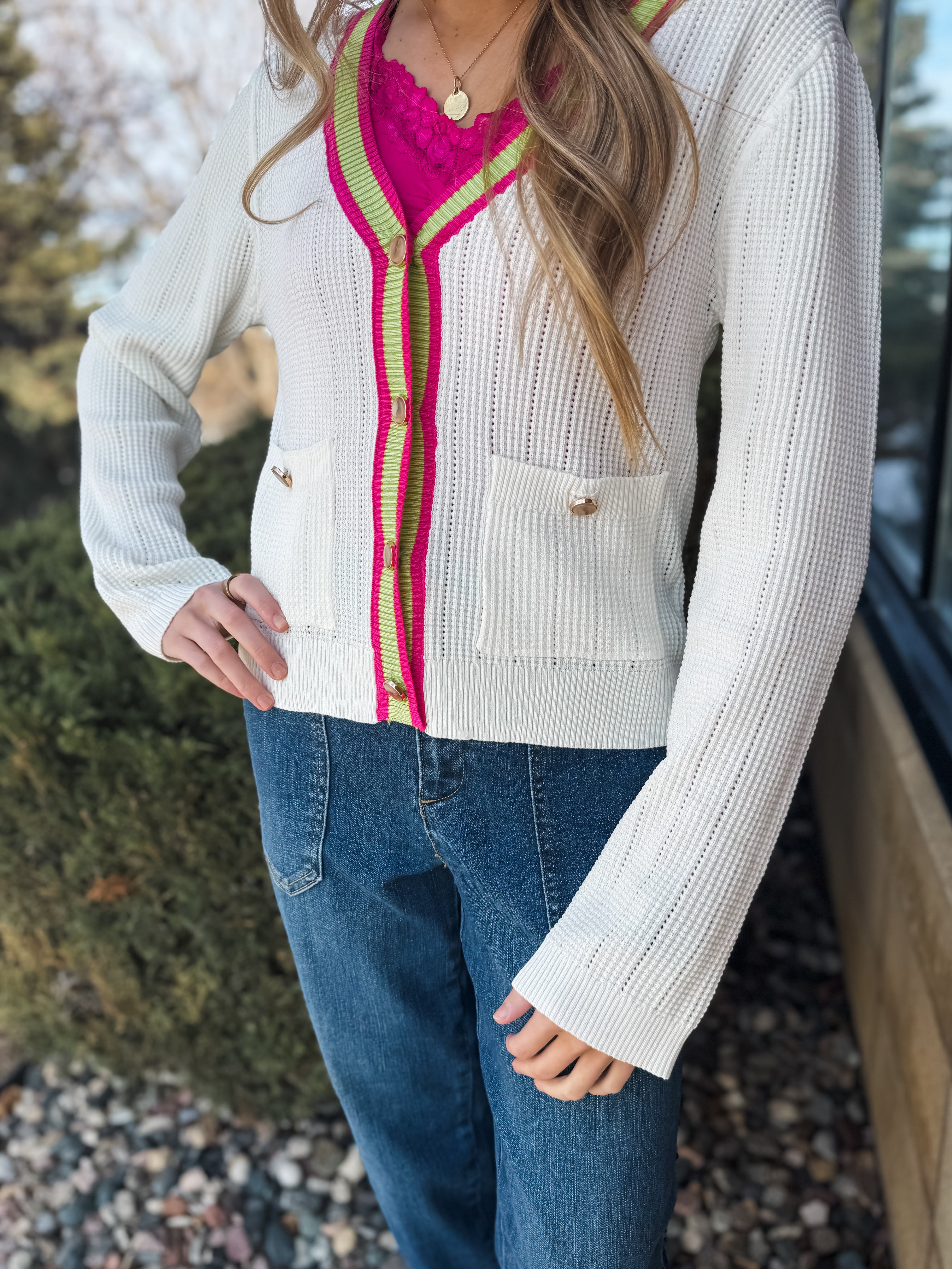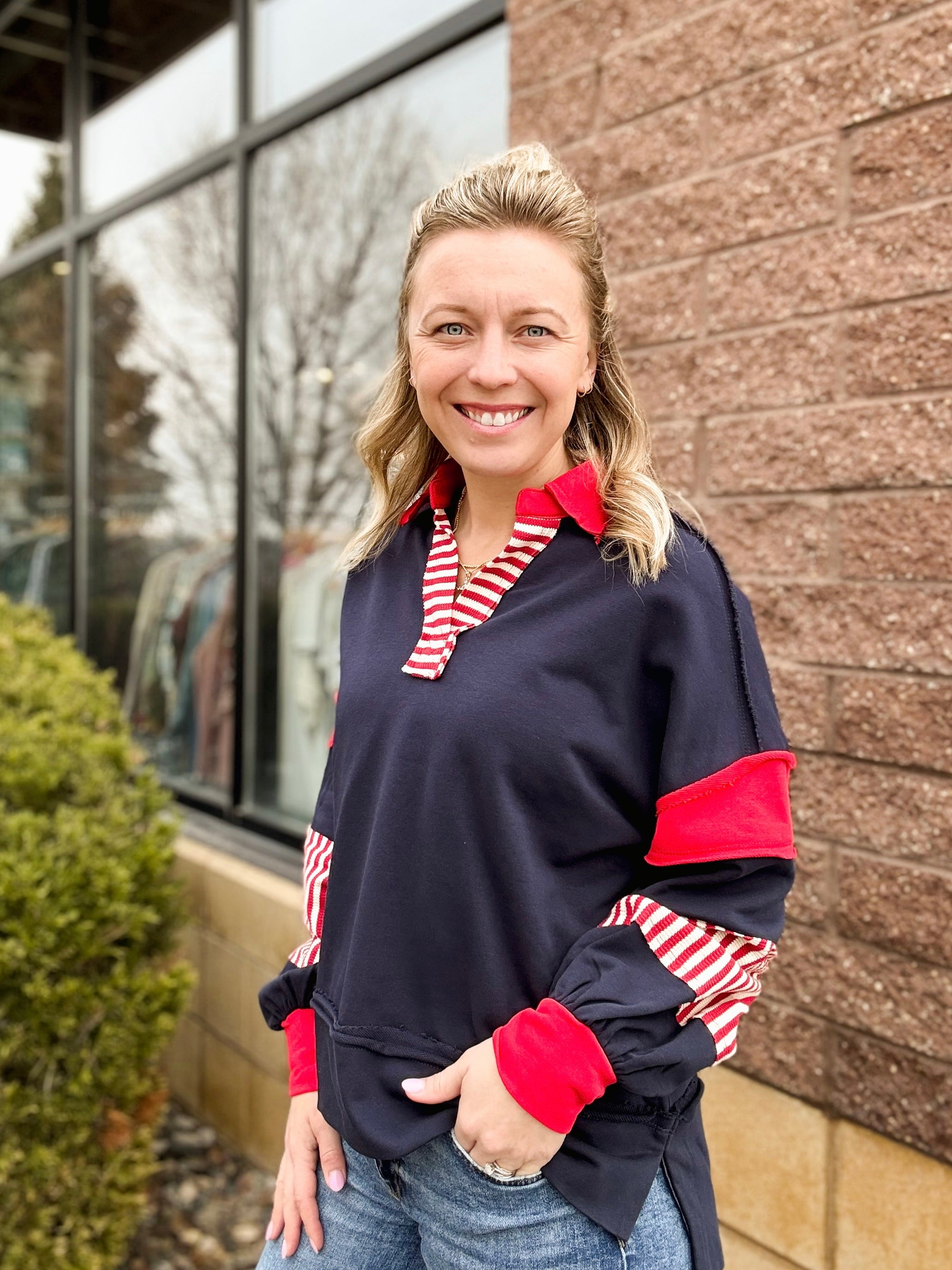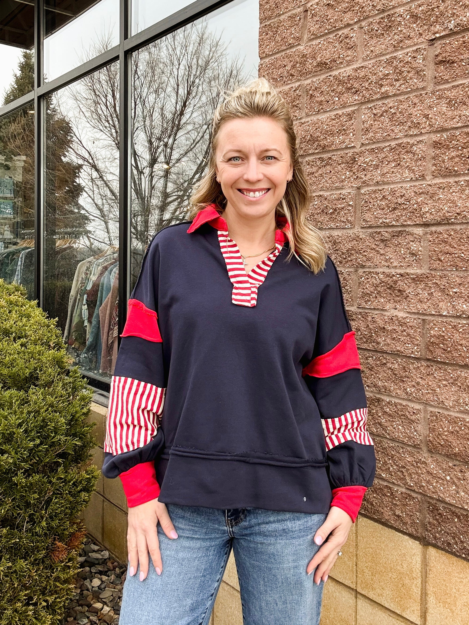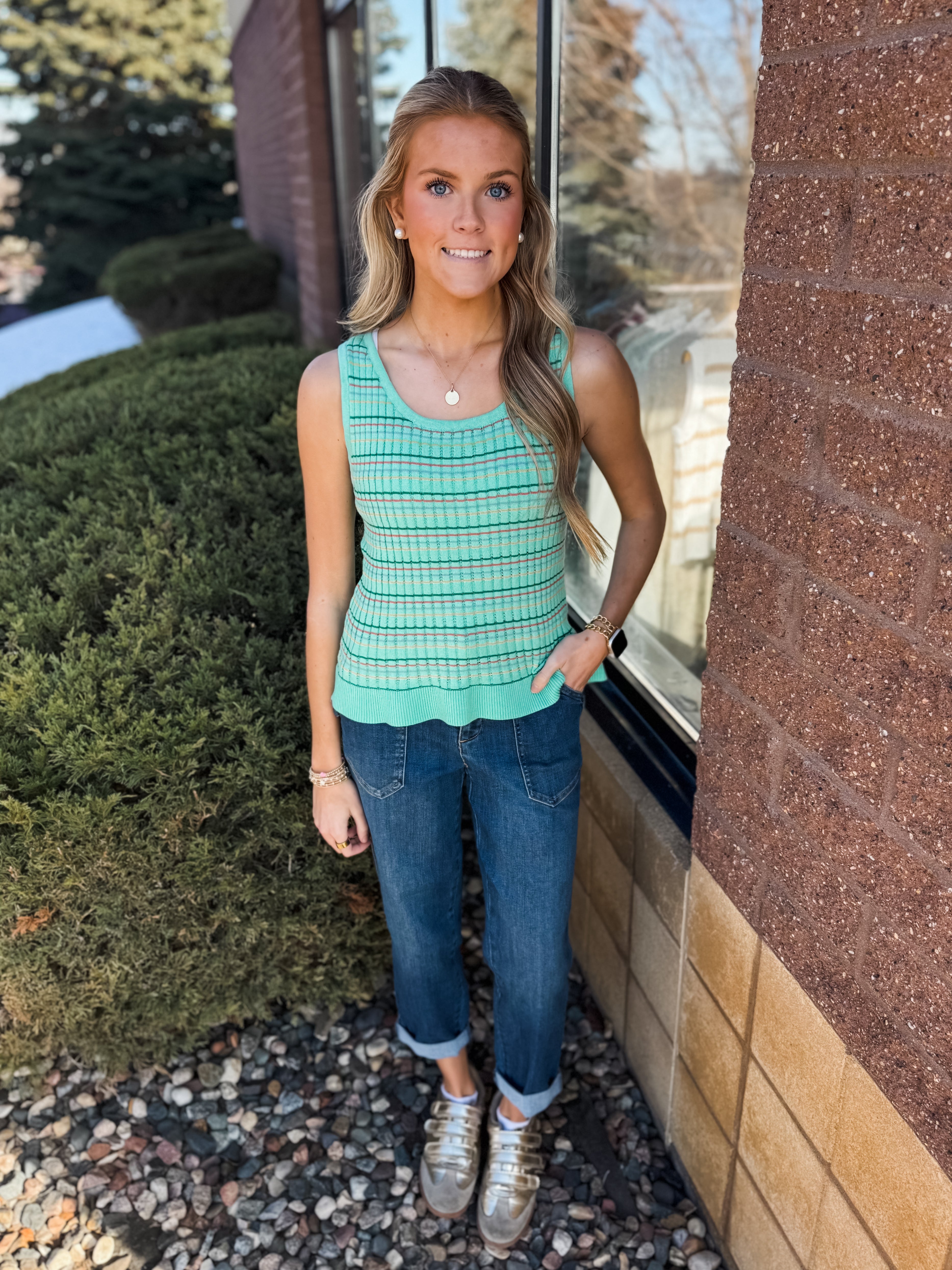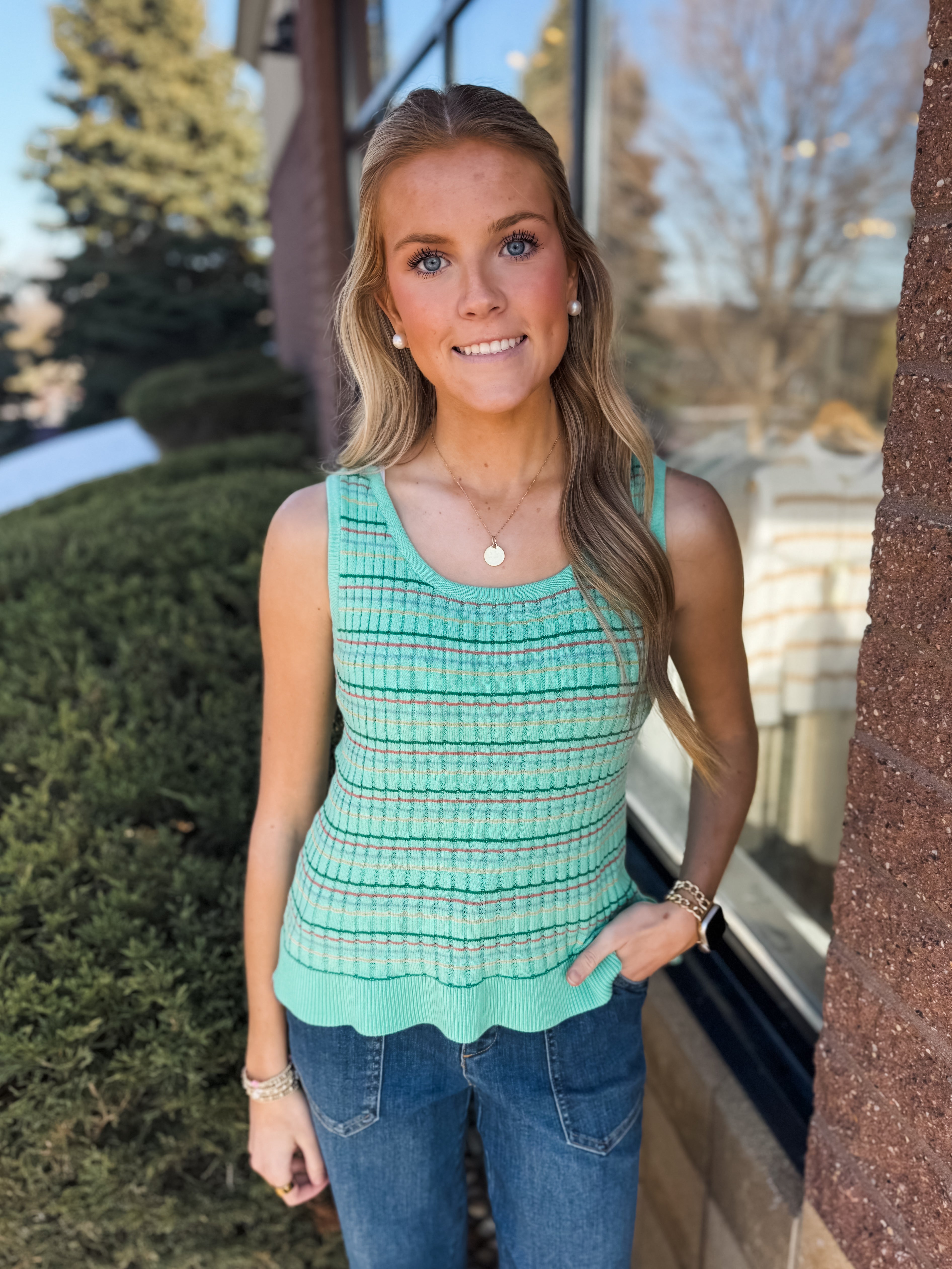 Round Neck Multi-Color Striped Pointelle Rib Sweater Peplum Tank