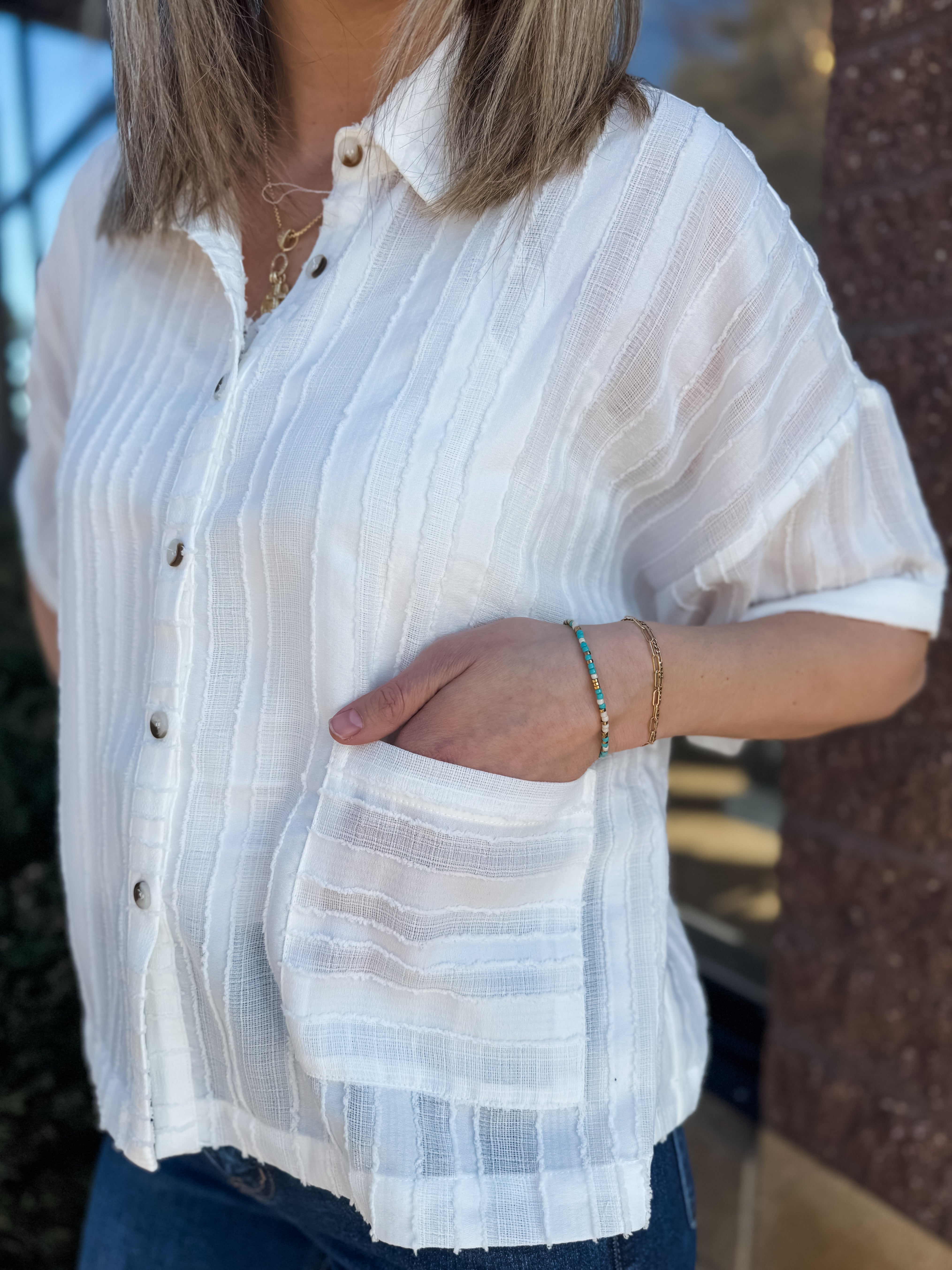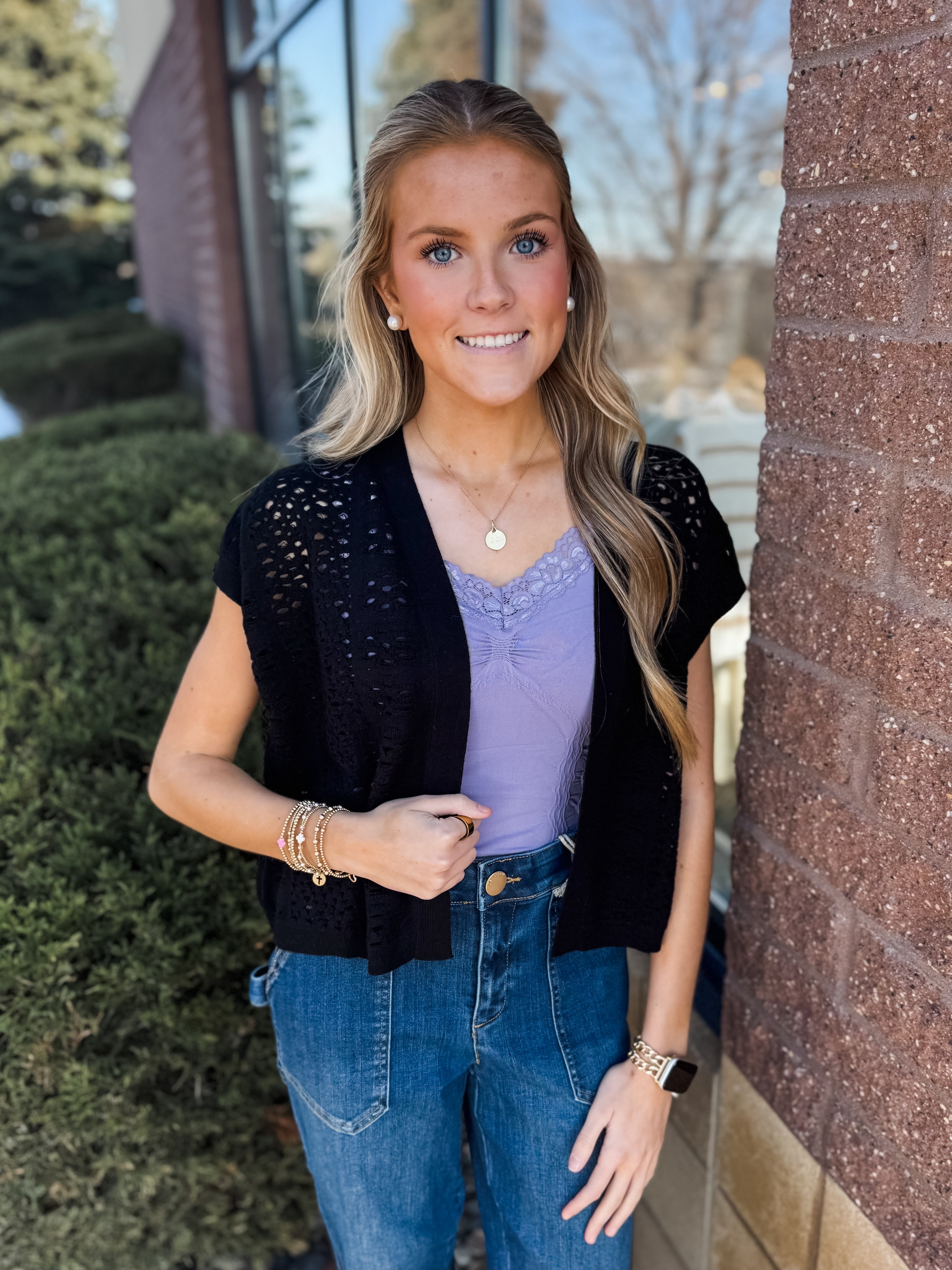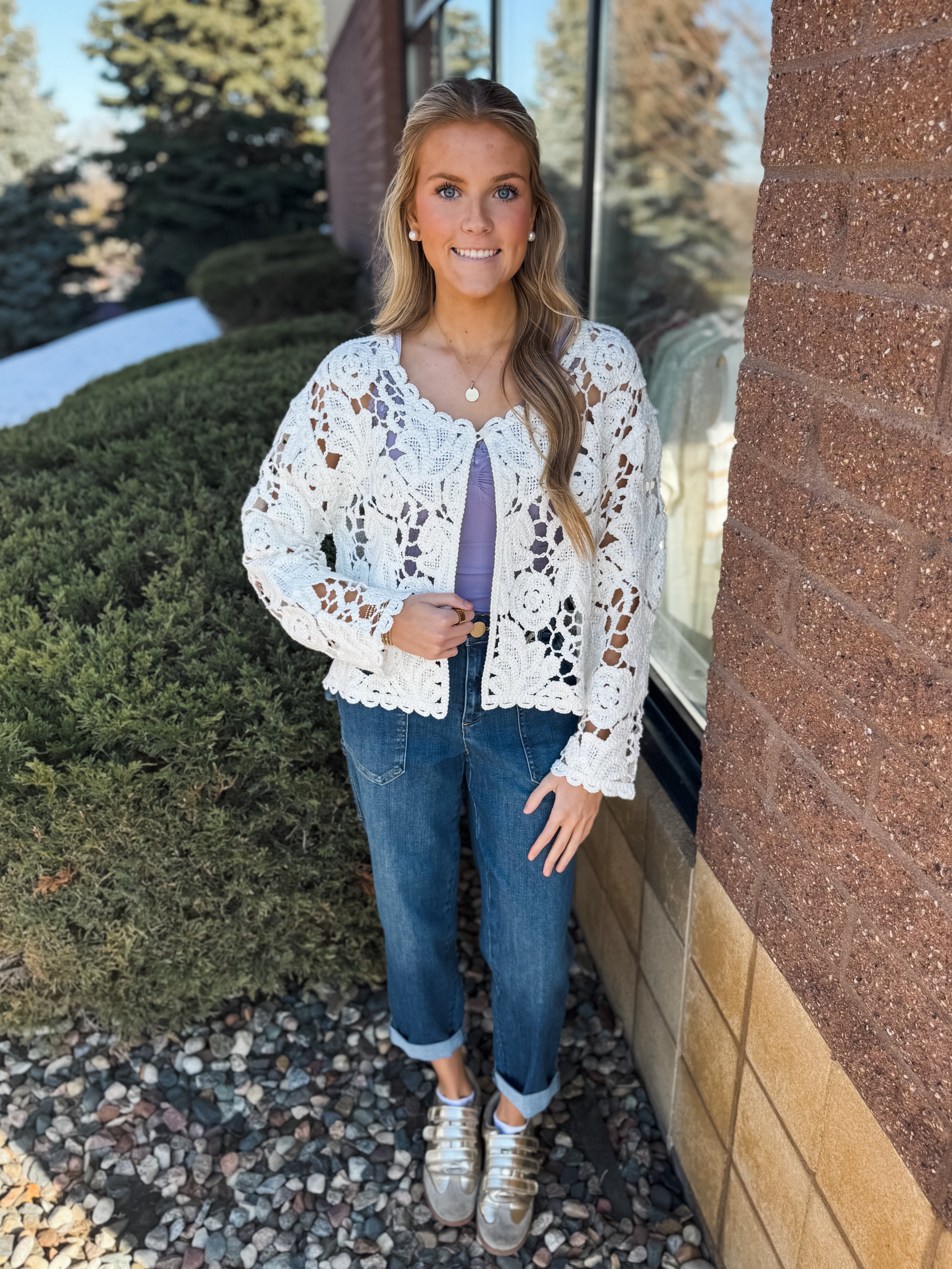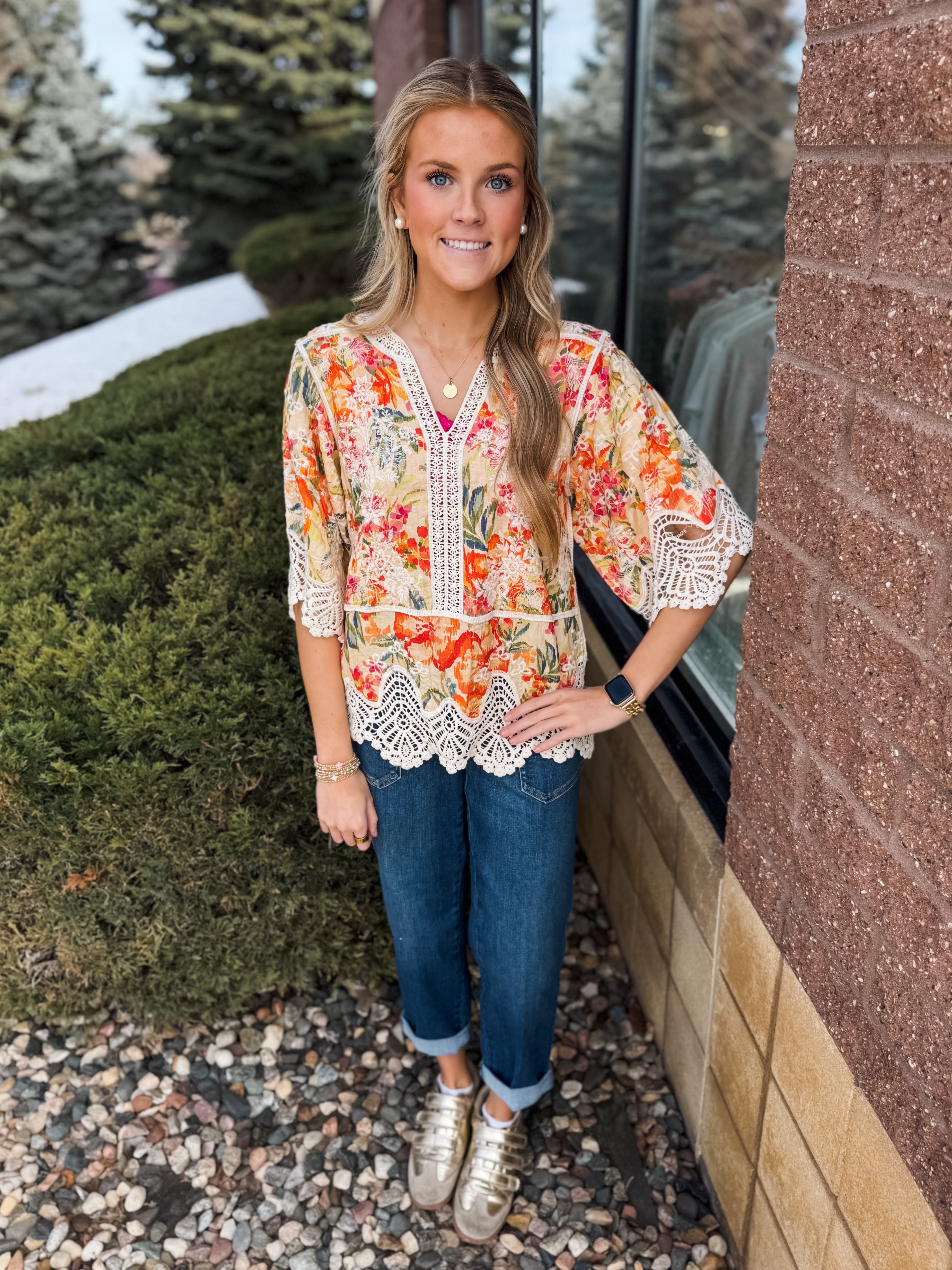 Below Elbow Sleeve V-Notch Neck Scallop Edge Peplum Crochet Top
