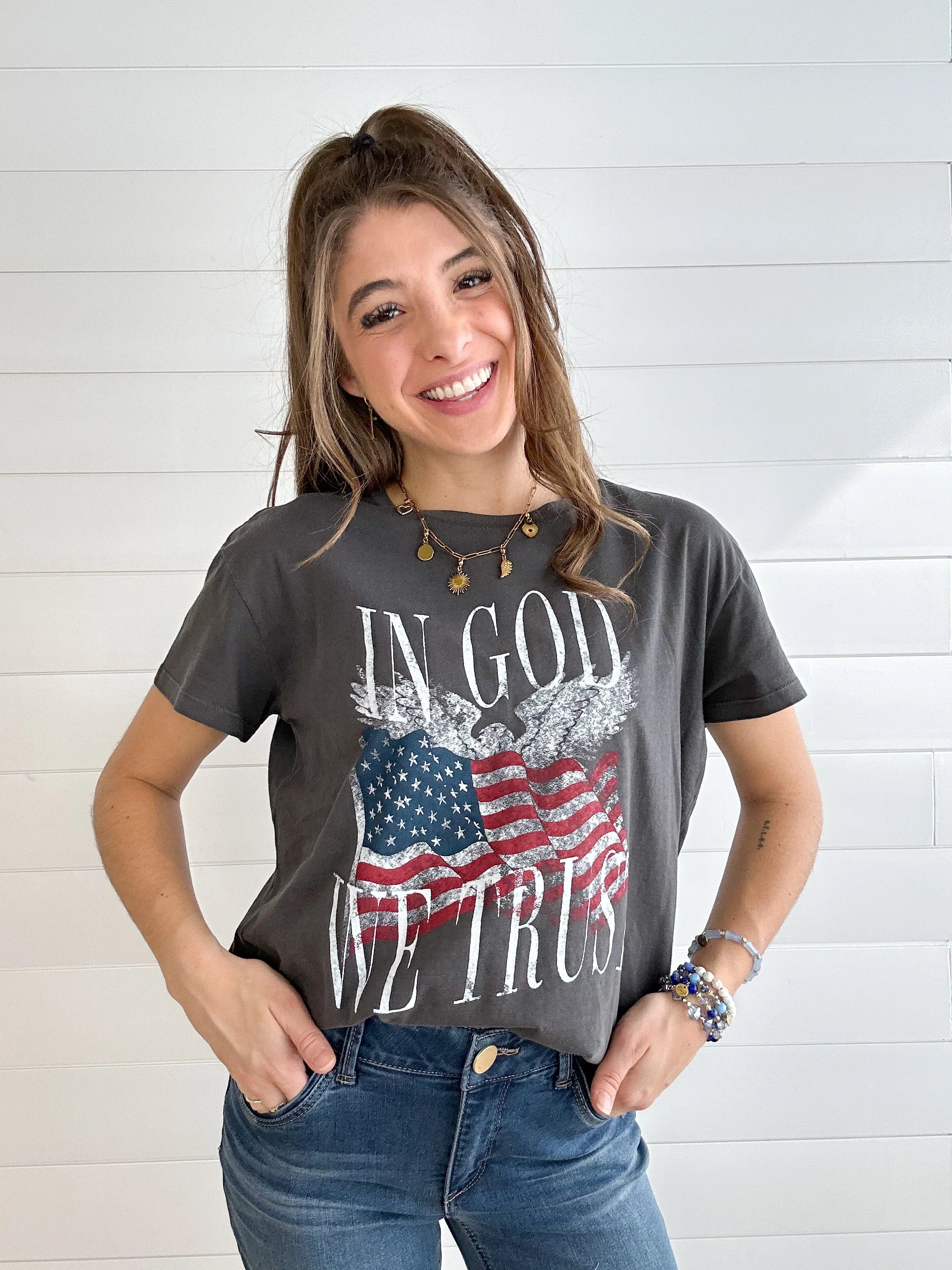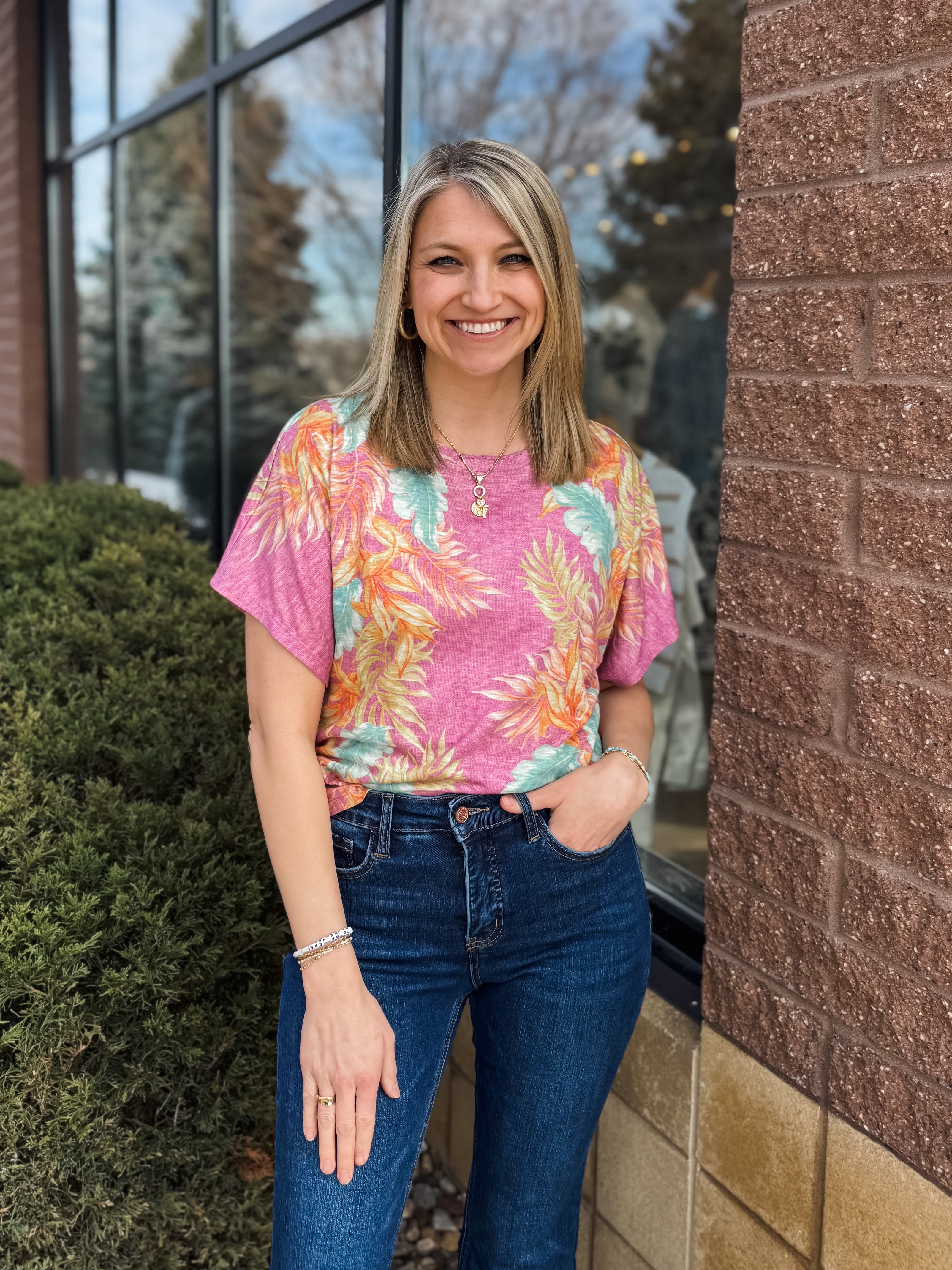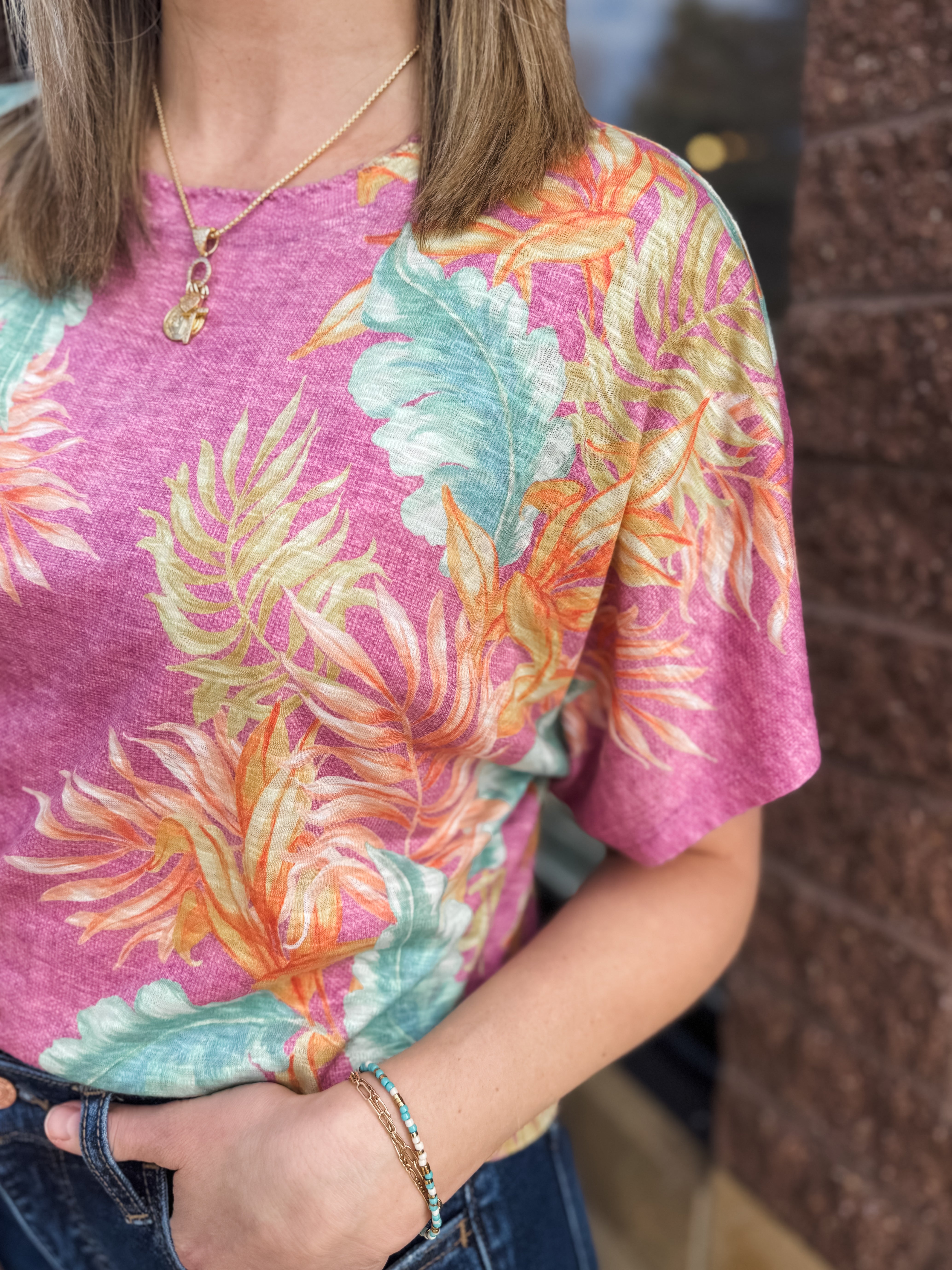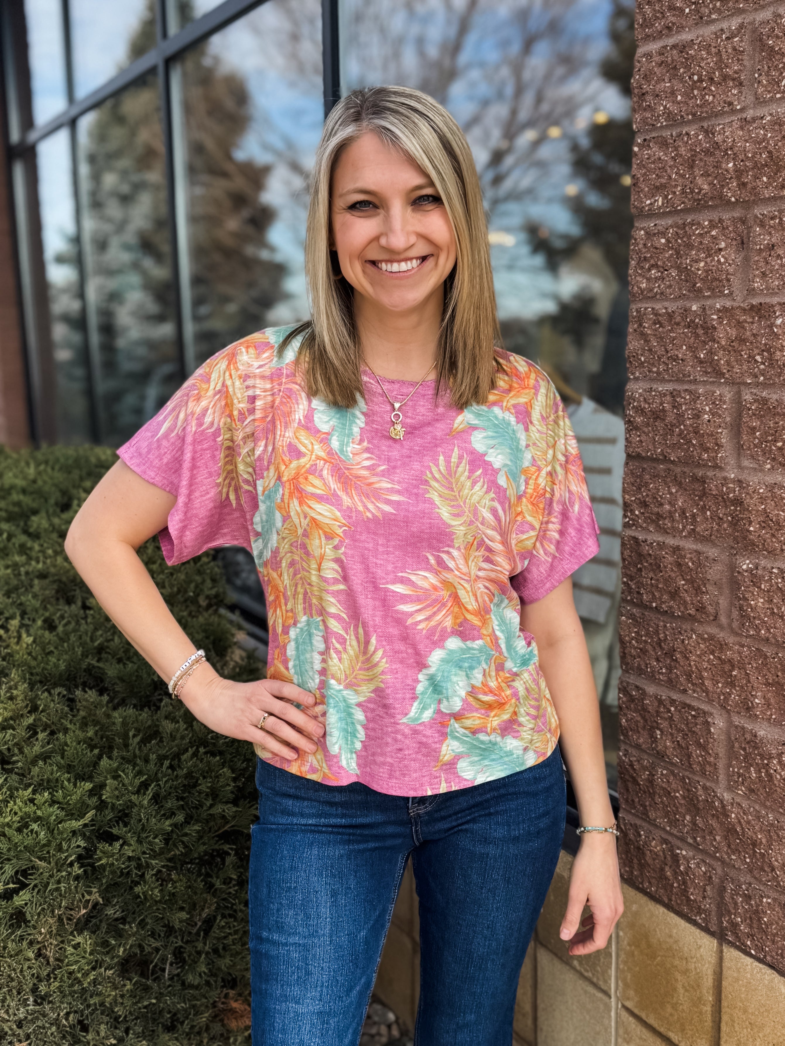 Short Dolman Sleeve Scoop Neck Placement Print Knit Top