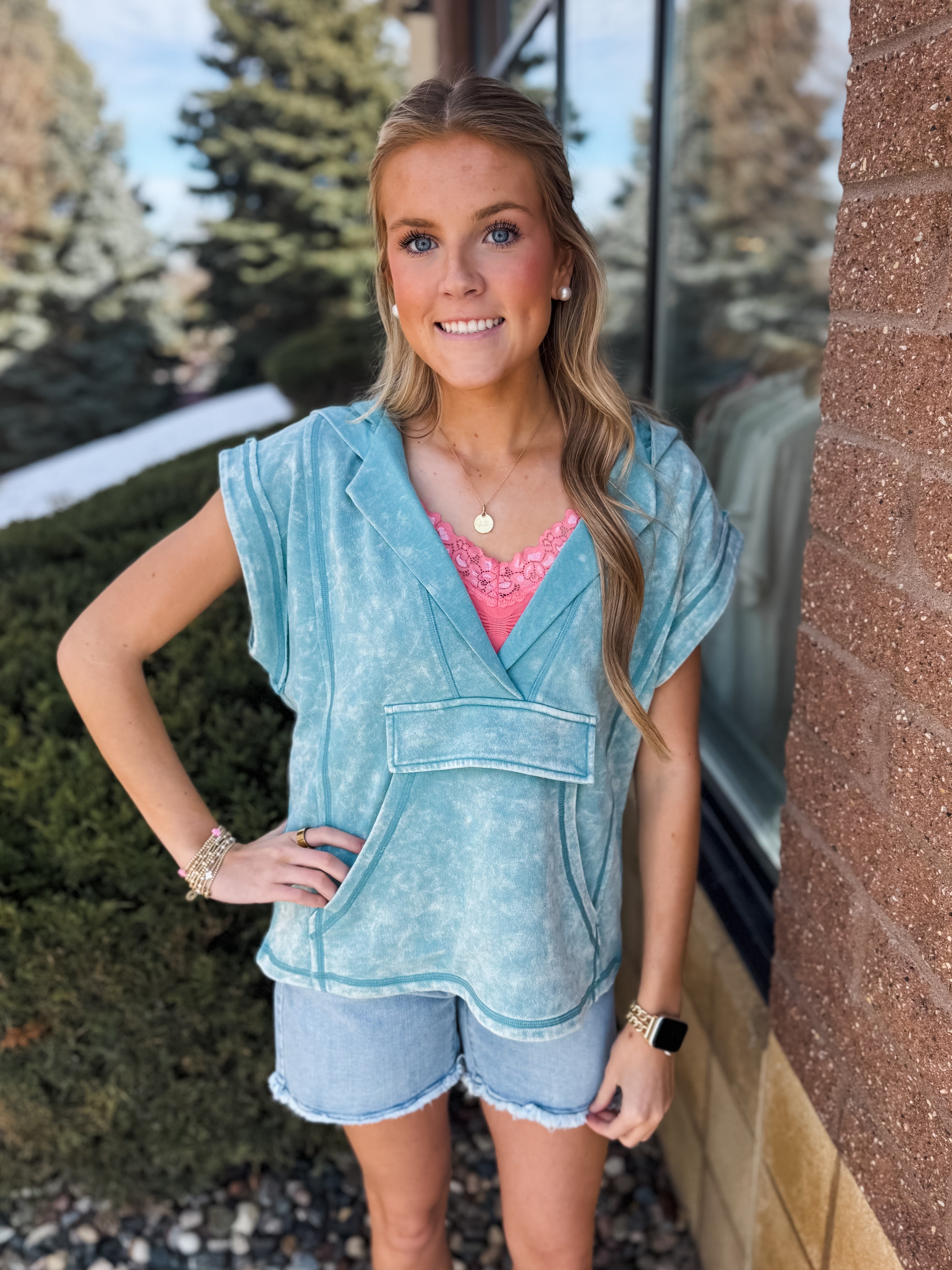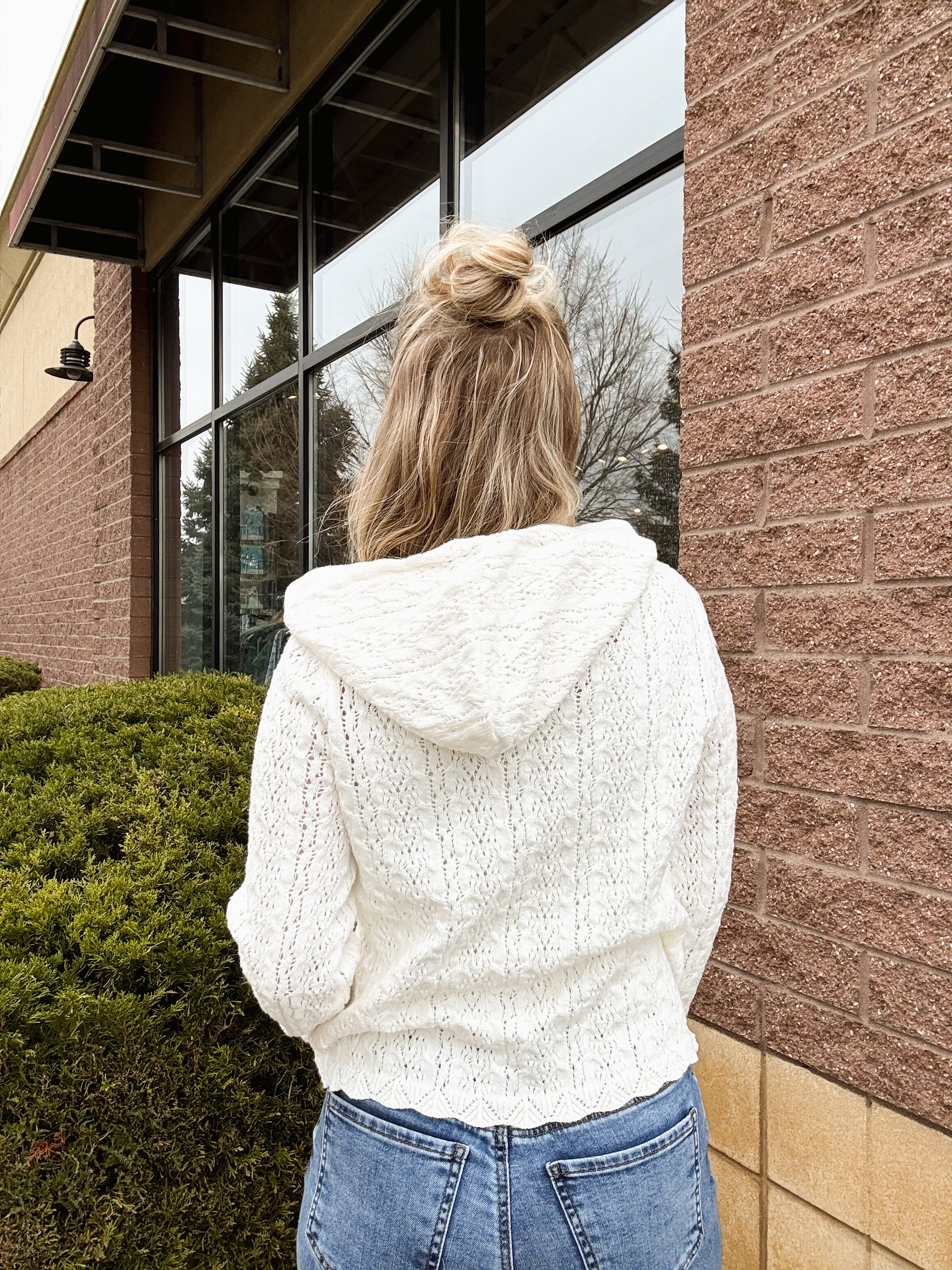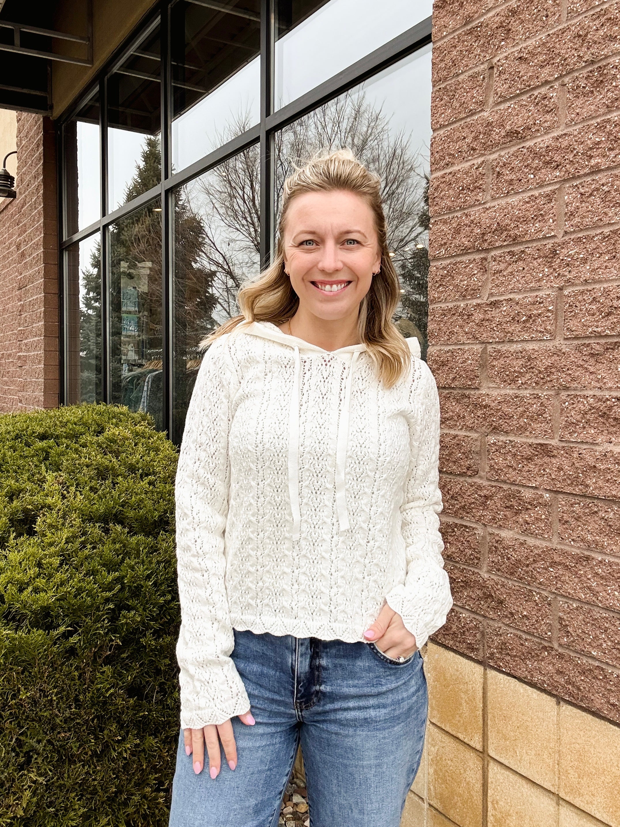 Eyelet Knitted Scalloped V Neck Hoodie Pullover