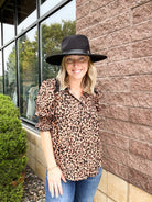 BELOW ELBOW LANTERN SLEEVE COLLAR WITH CROCHET EDGE BUTTON DOWN PRINTED WOVEN SHIRT