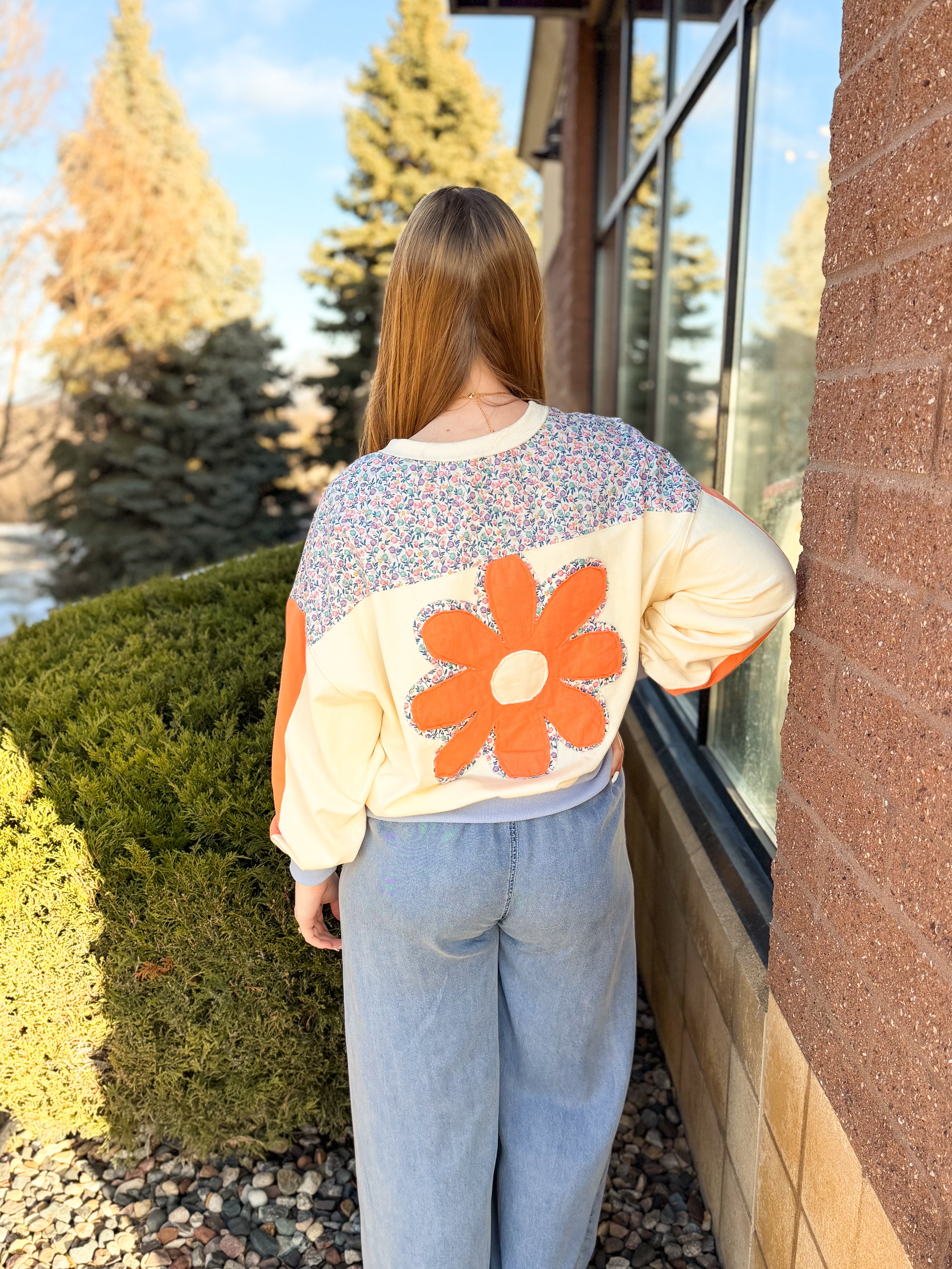 Ditsy Floral Mix Patch Loose Fit Terry Top