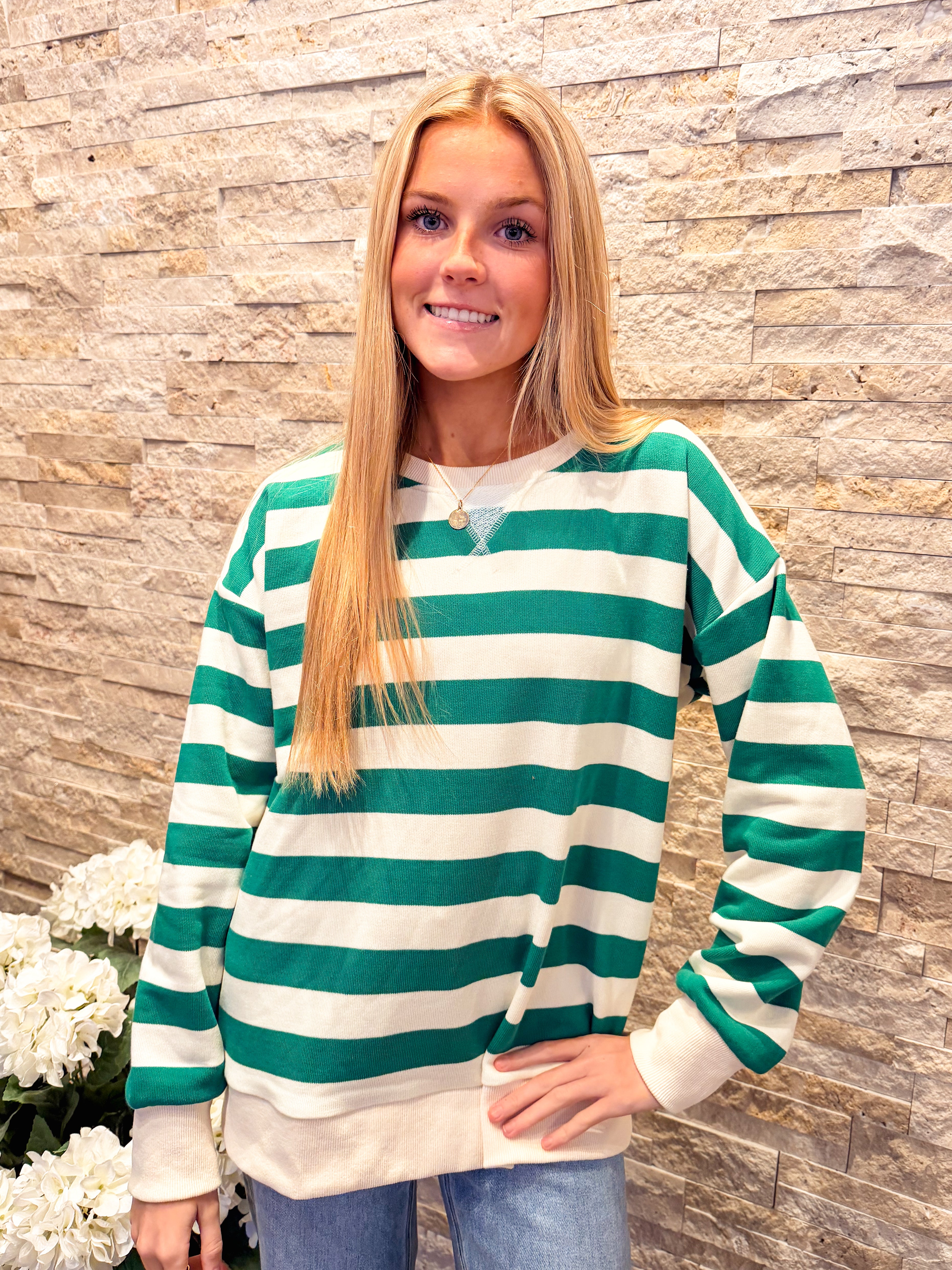 Oversized French Terry Striped Sweatshirt
