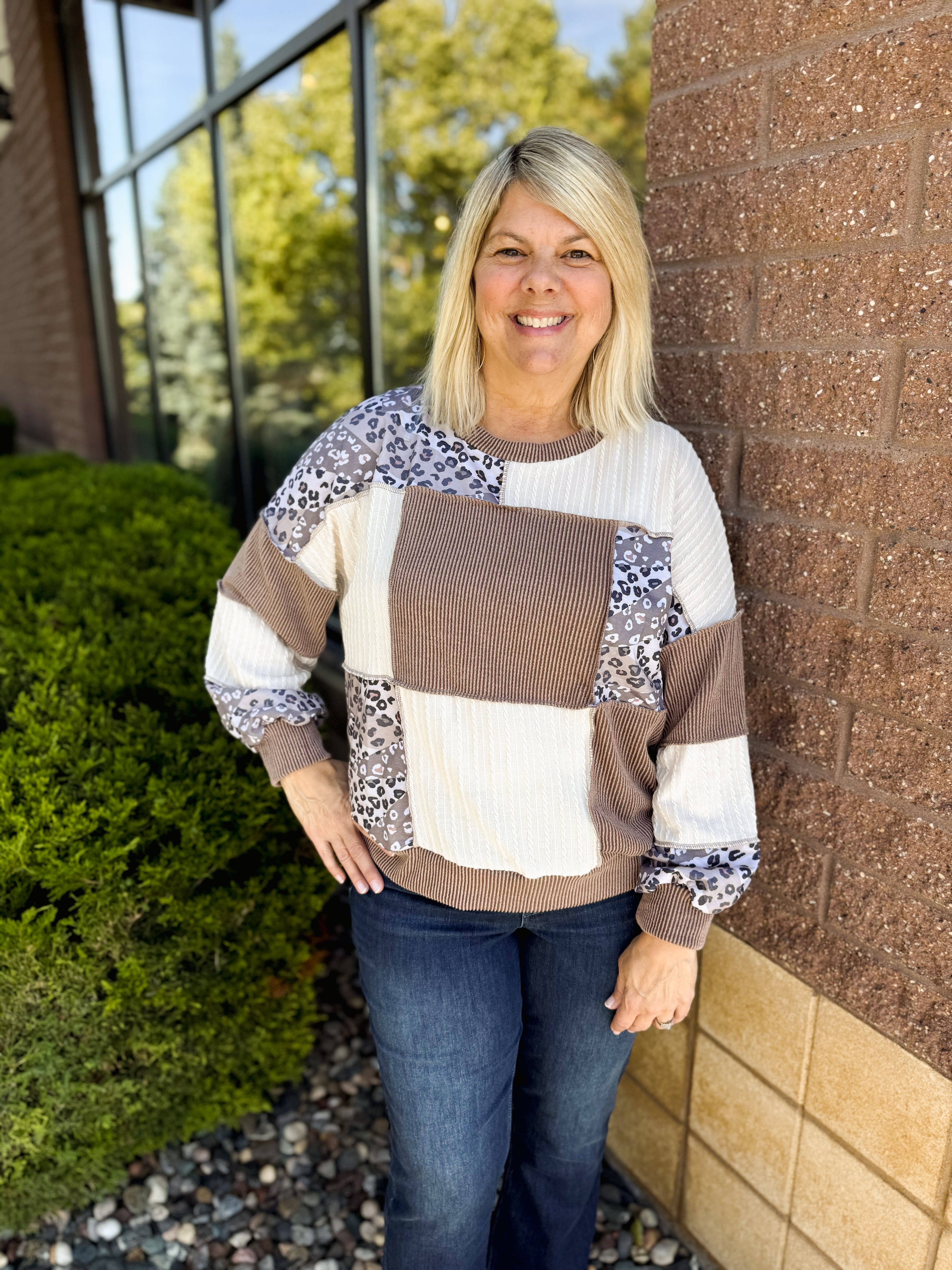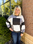 Rib Cable Knit Leopard Pullover Knit Top
