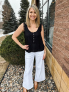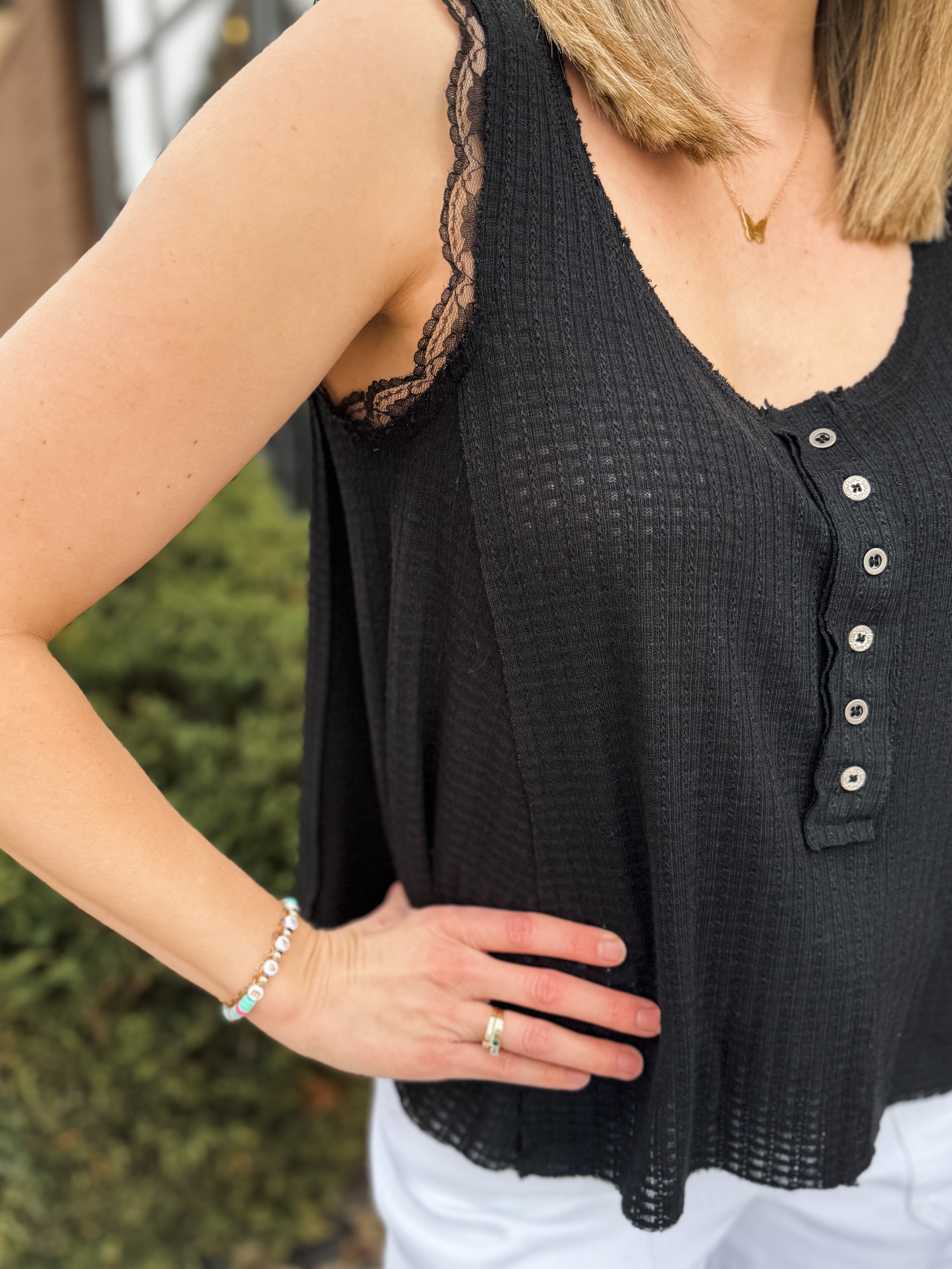 Soft Textured Front Placket Wavy Lace Sleeveless Top