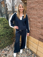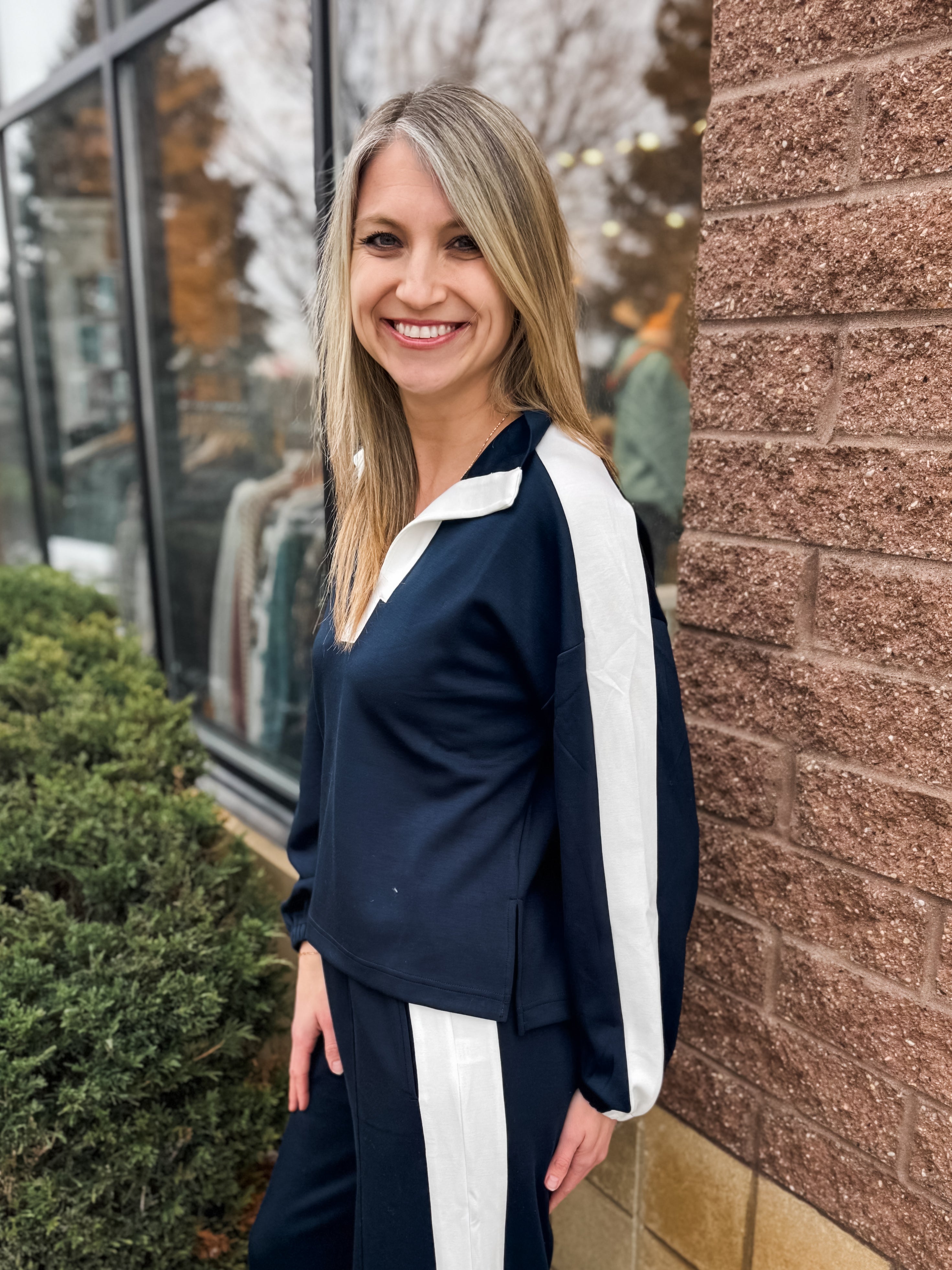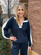 Solid Long Sleeve Knit Top With Contrast Collar