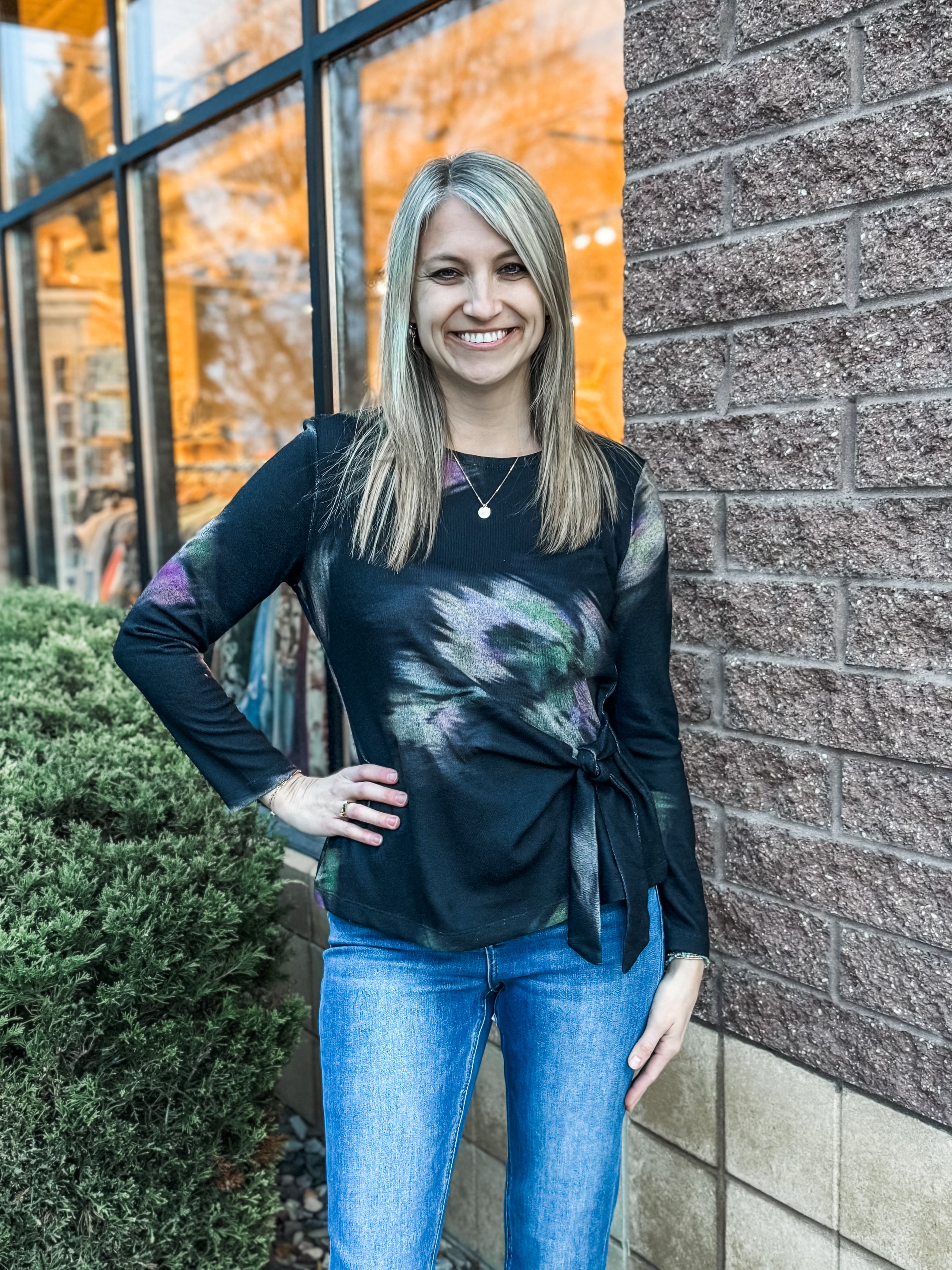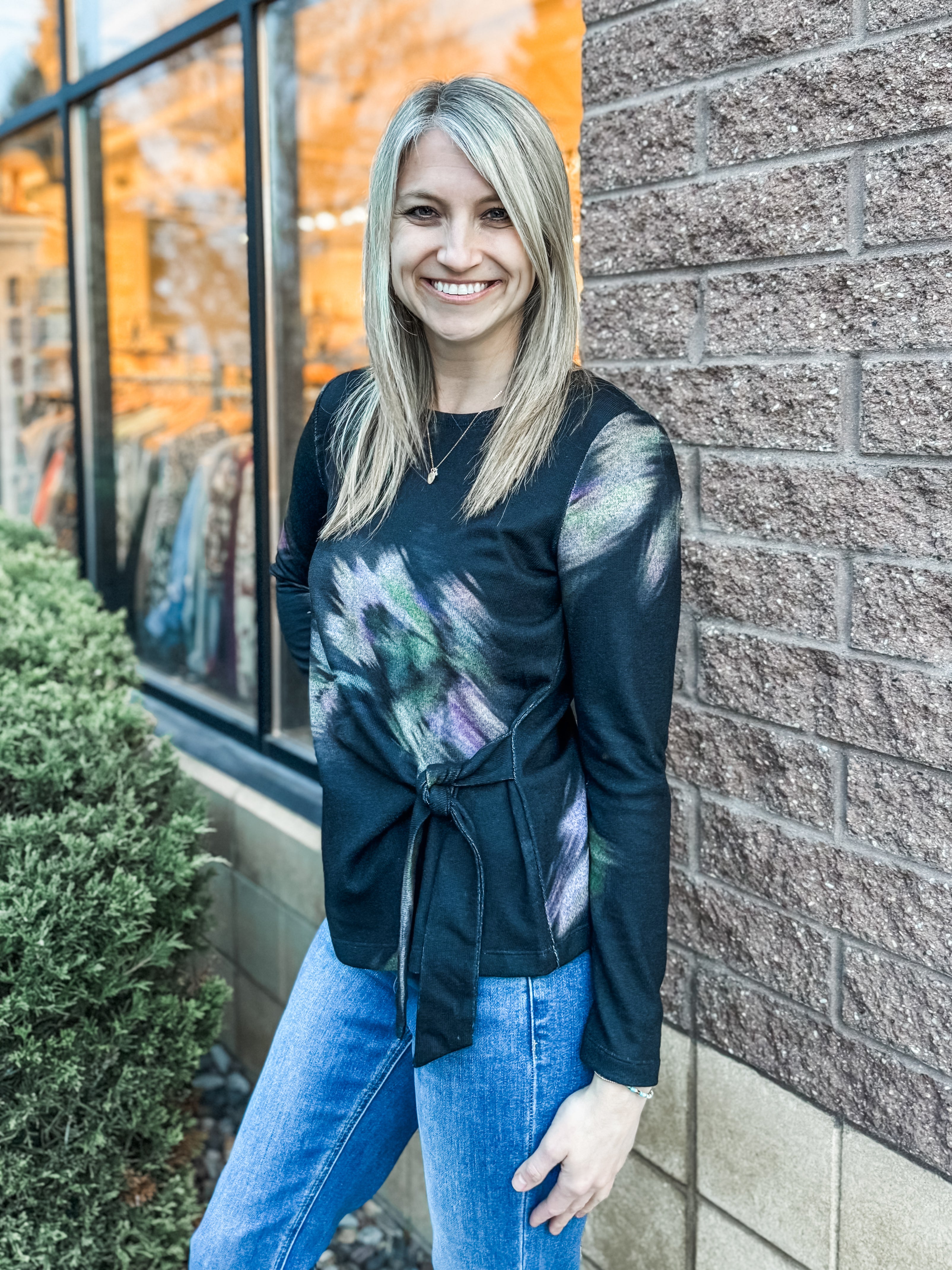 Brush Print Soft Side-Tie Sweater