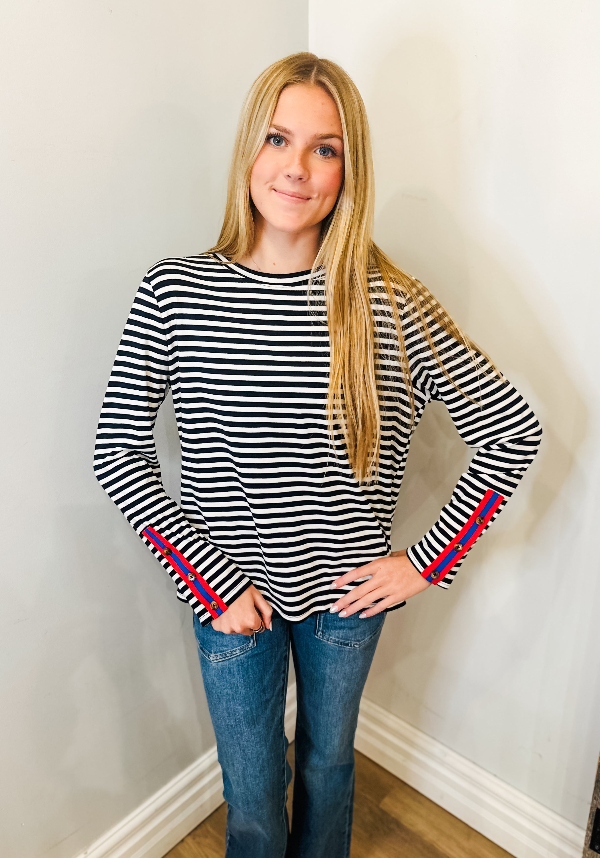 Color Tape Button Down Long Sleeve Top