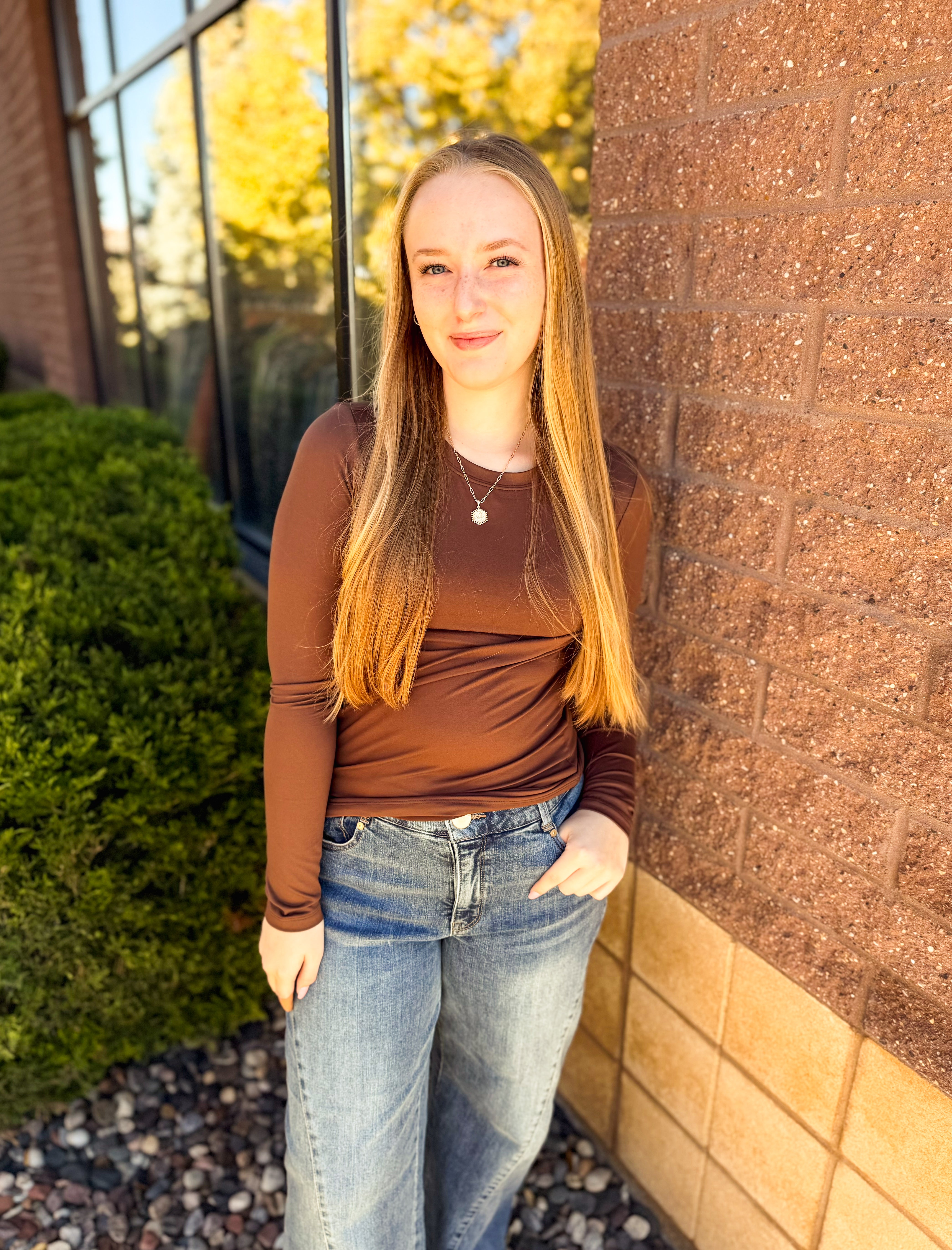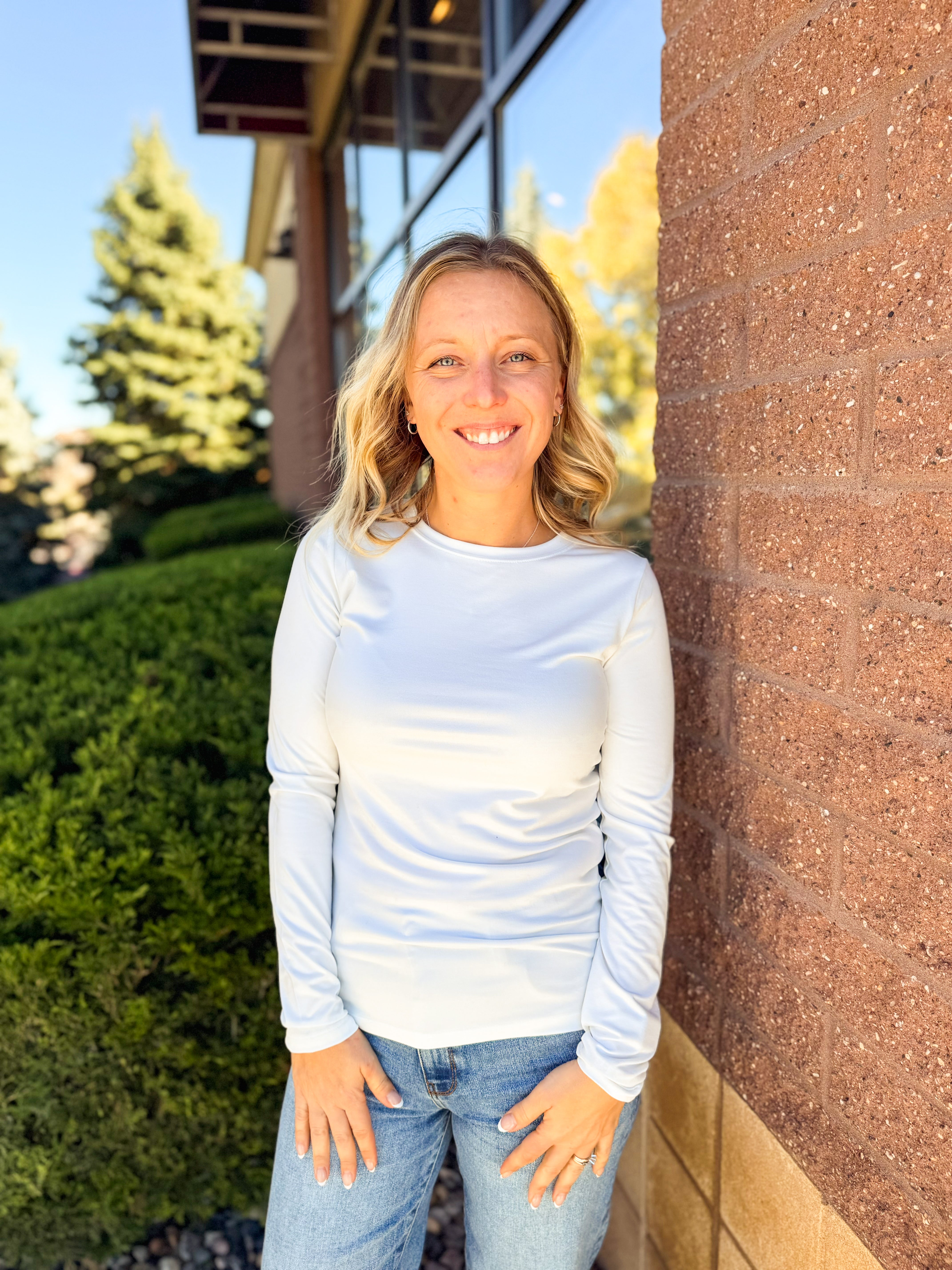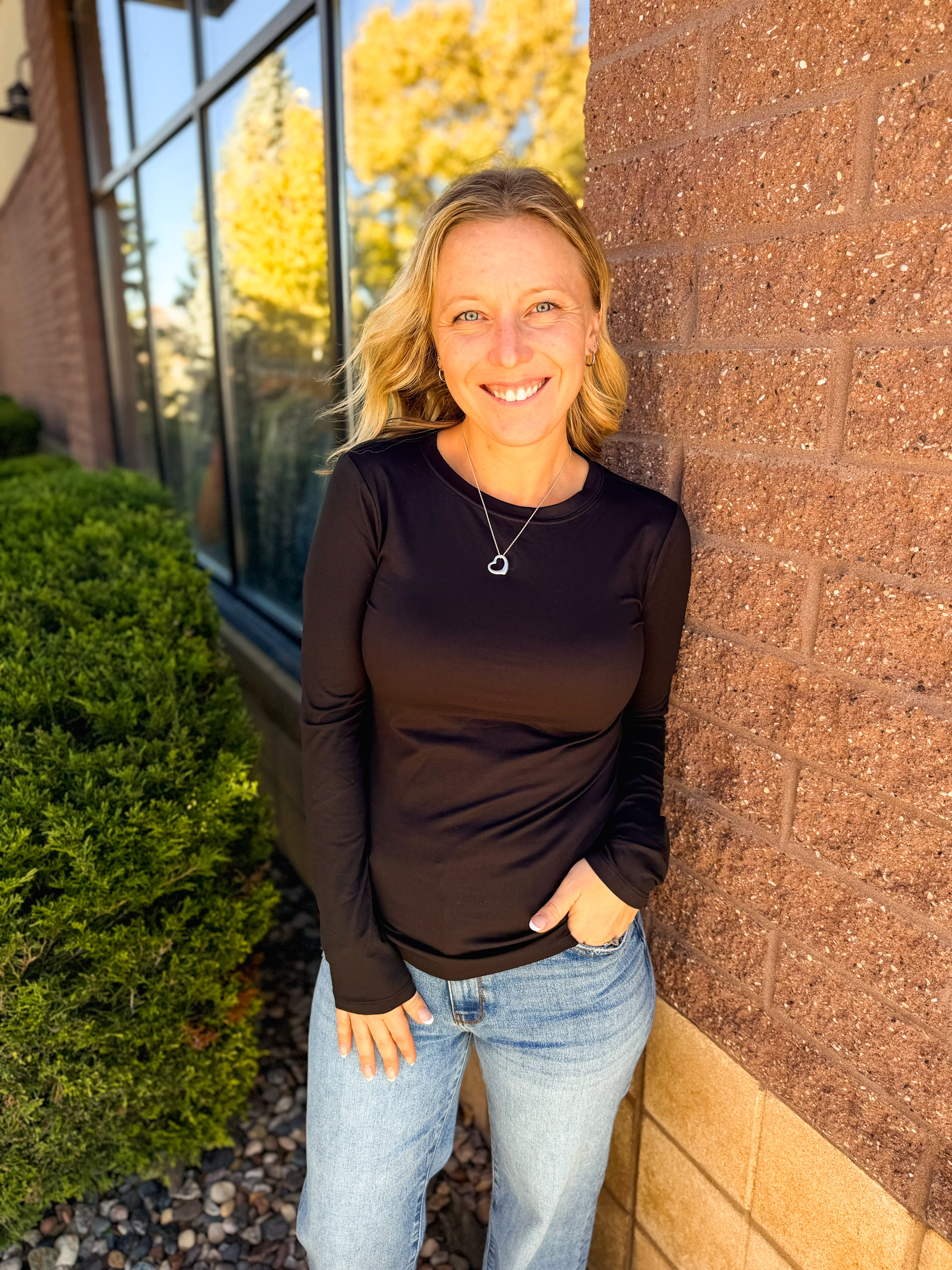 Brushed Microfiber Long Sleeve Round Neck Tee