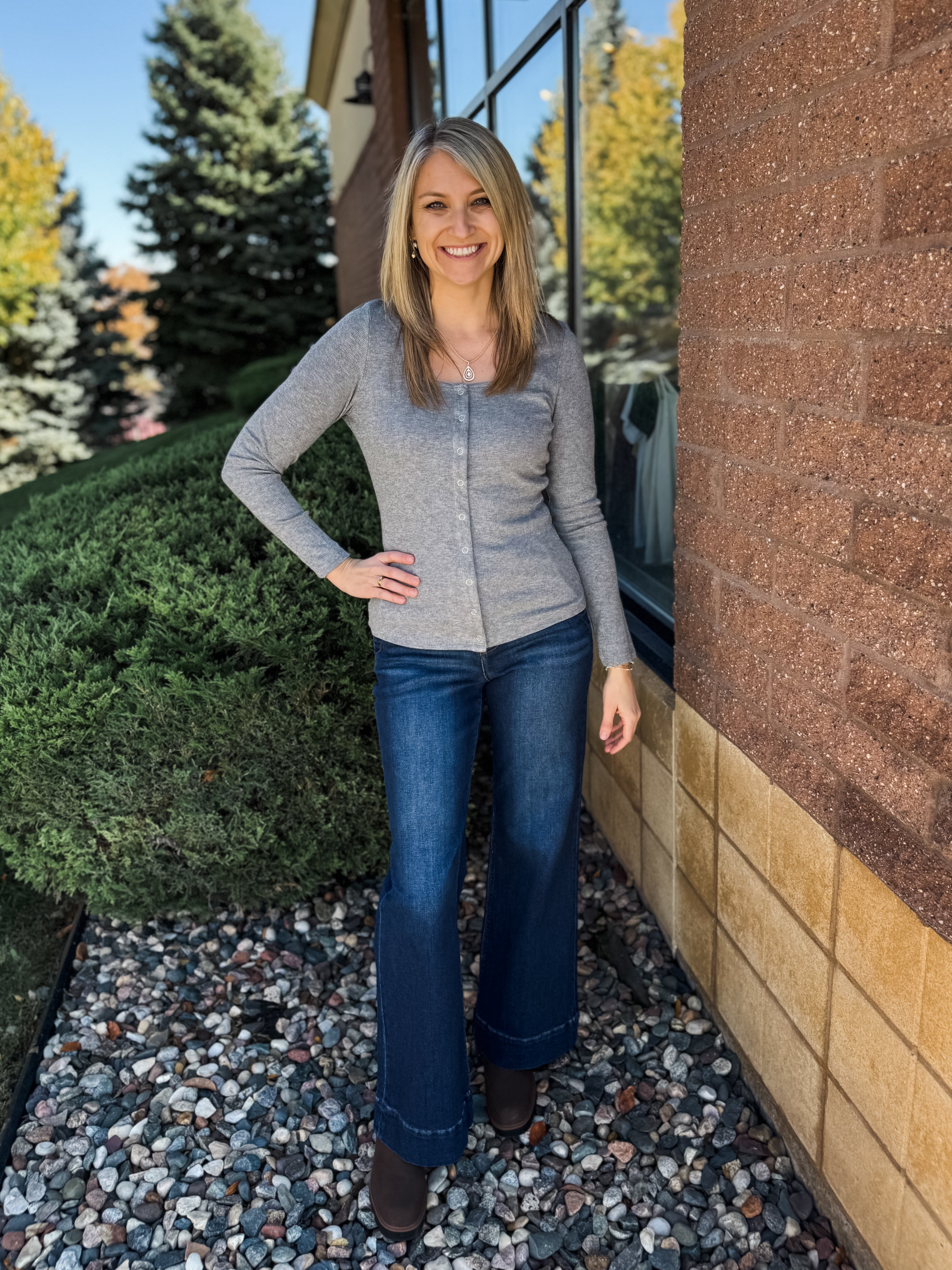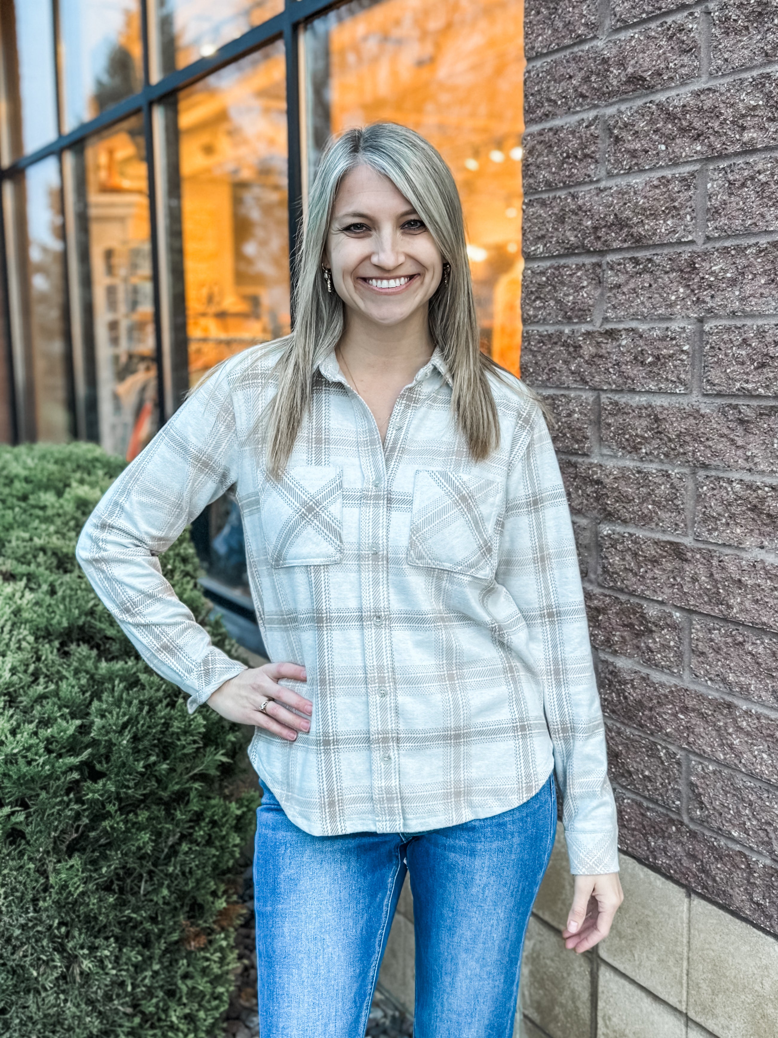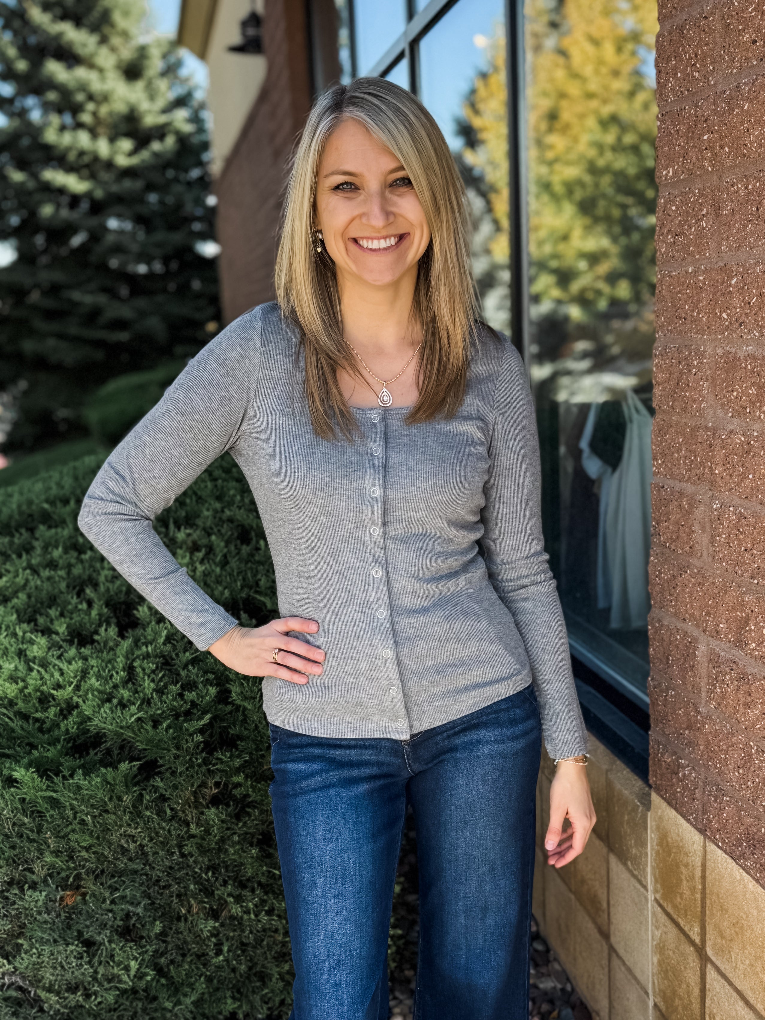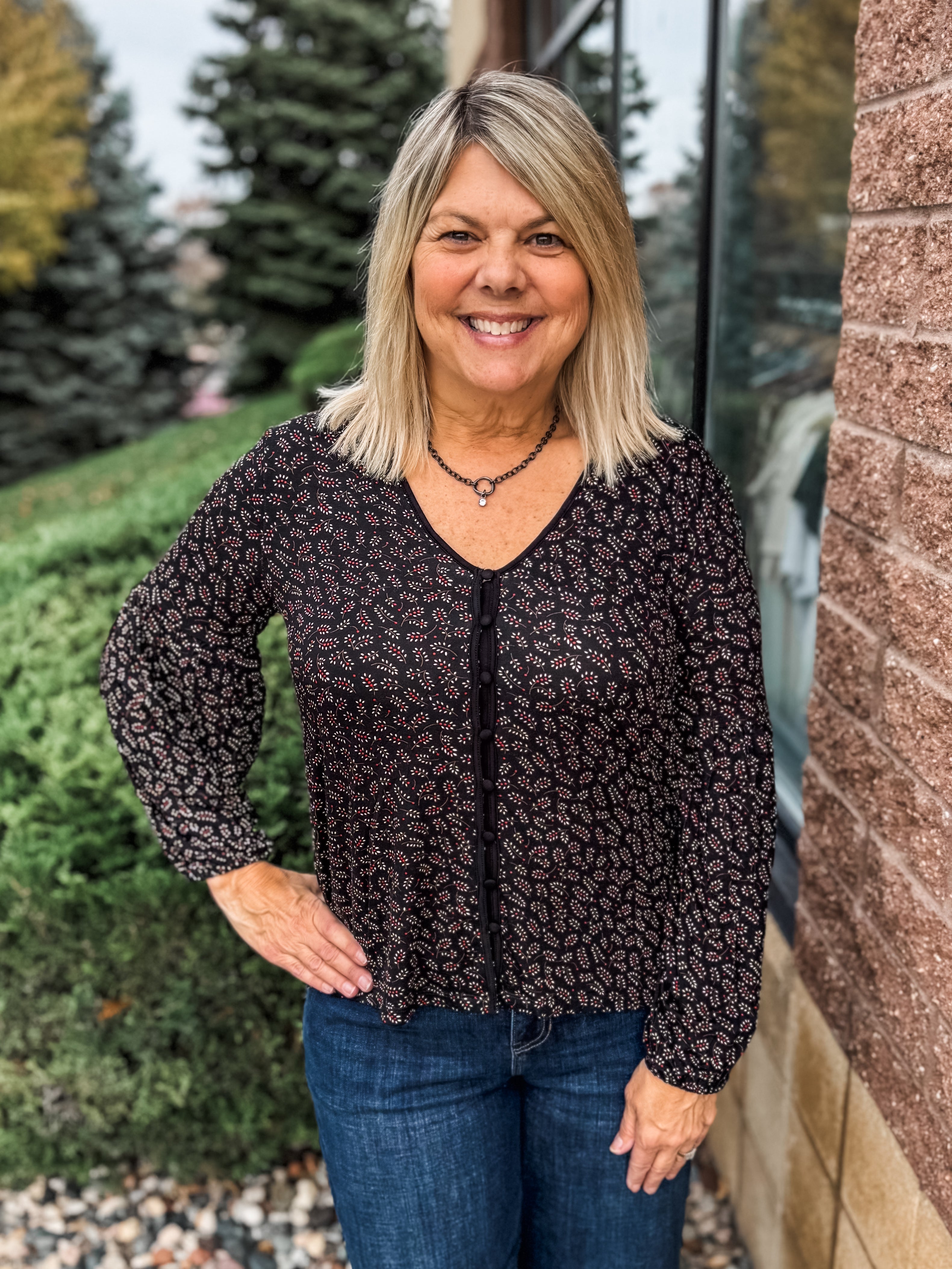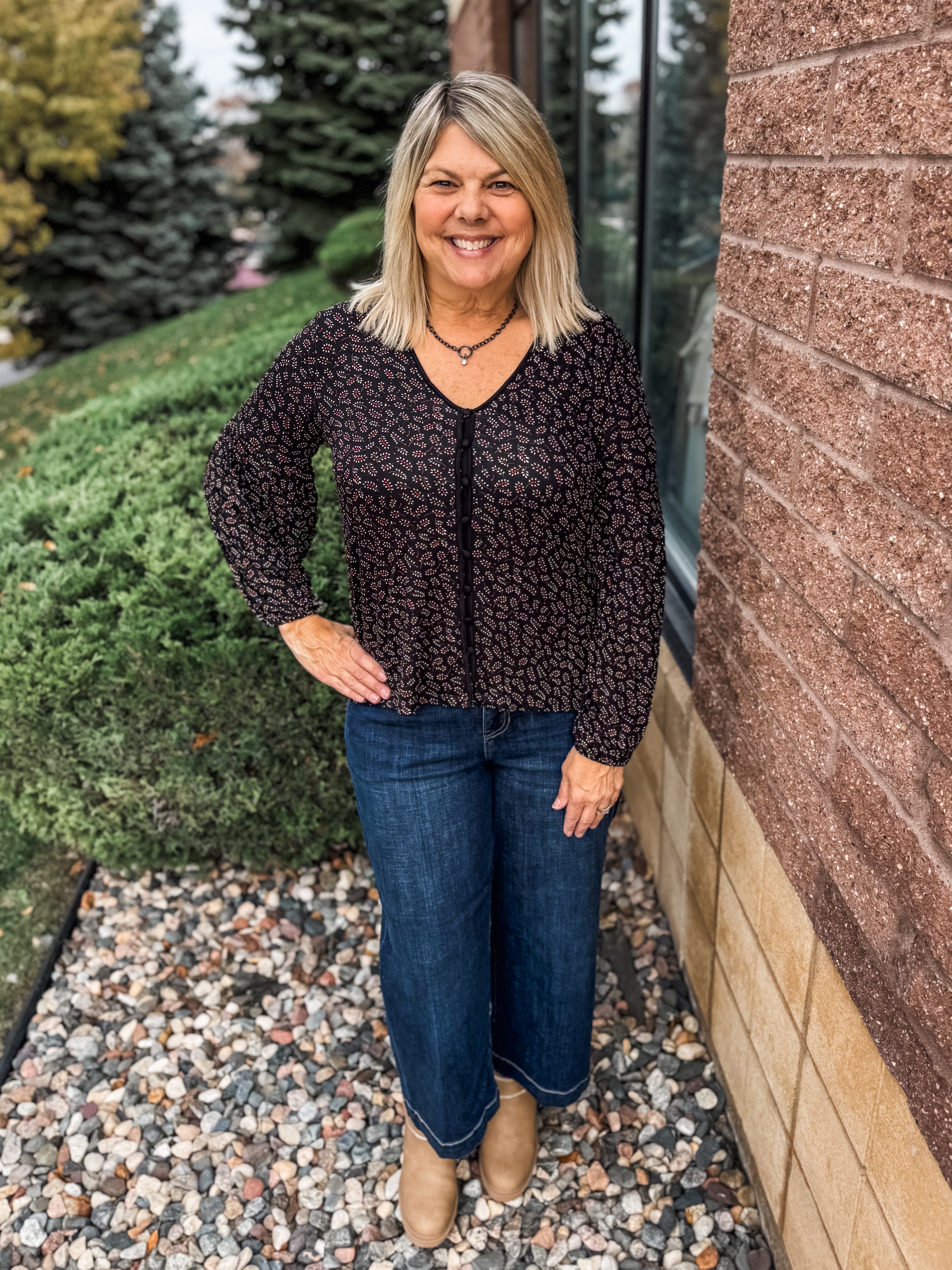 Long Sleeve Button Front Knit Top