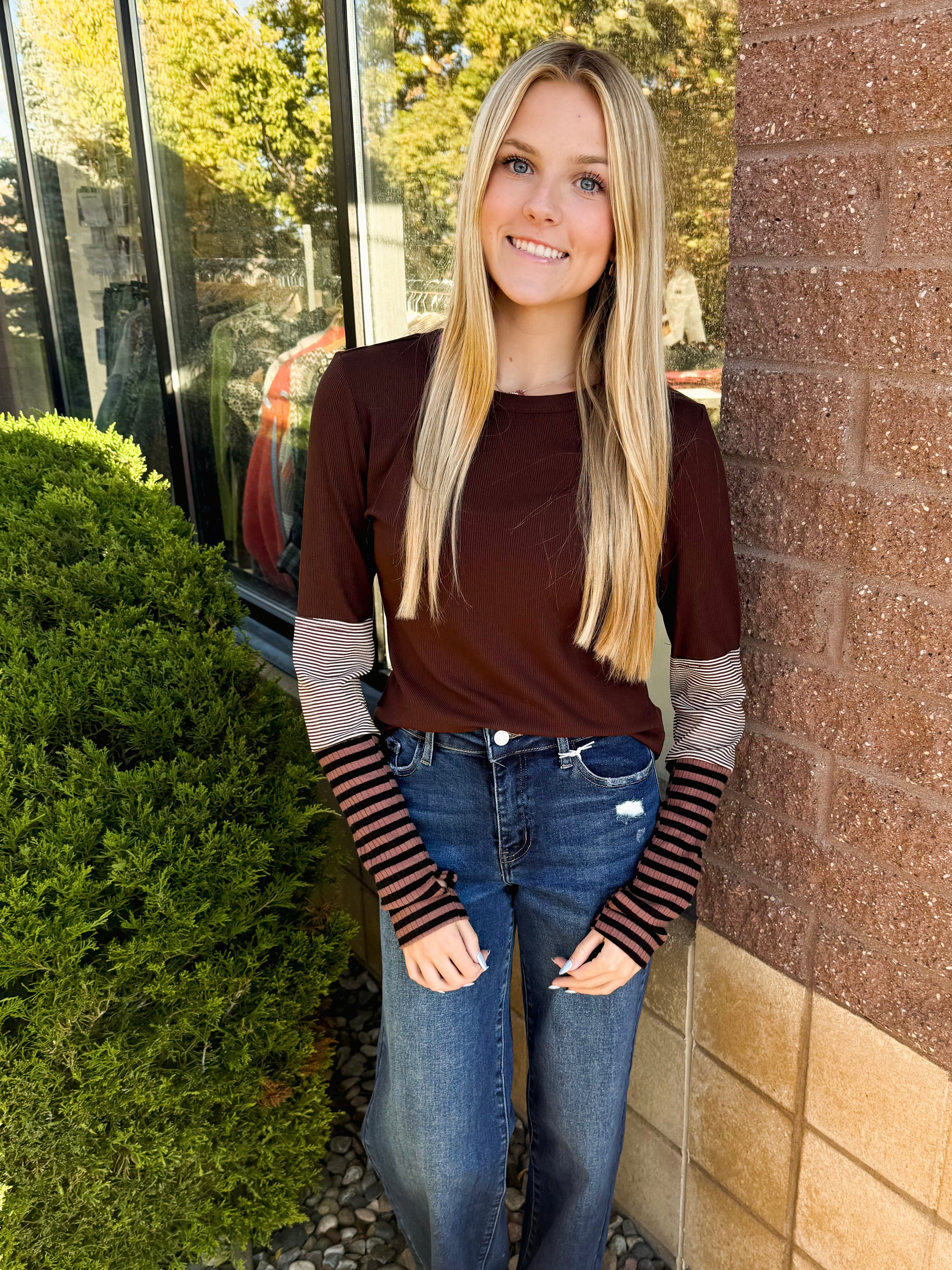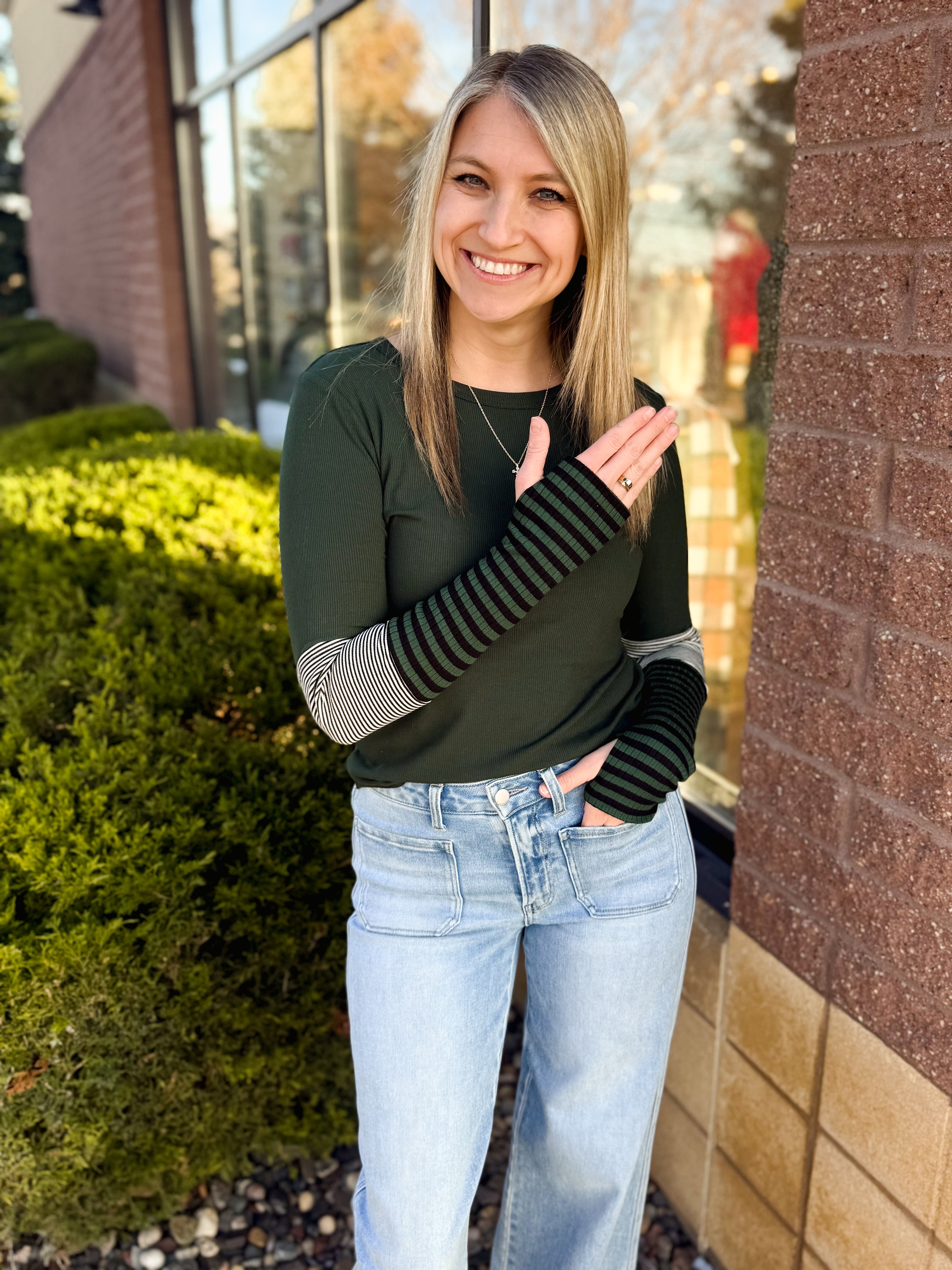 Stripe Color Block Sleeve Top w/ Thumb Hole