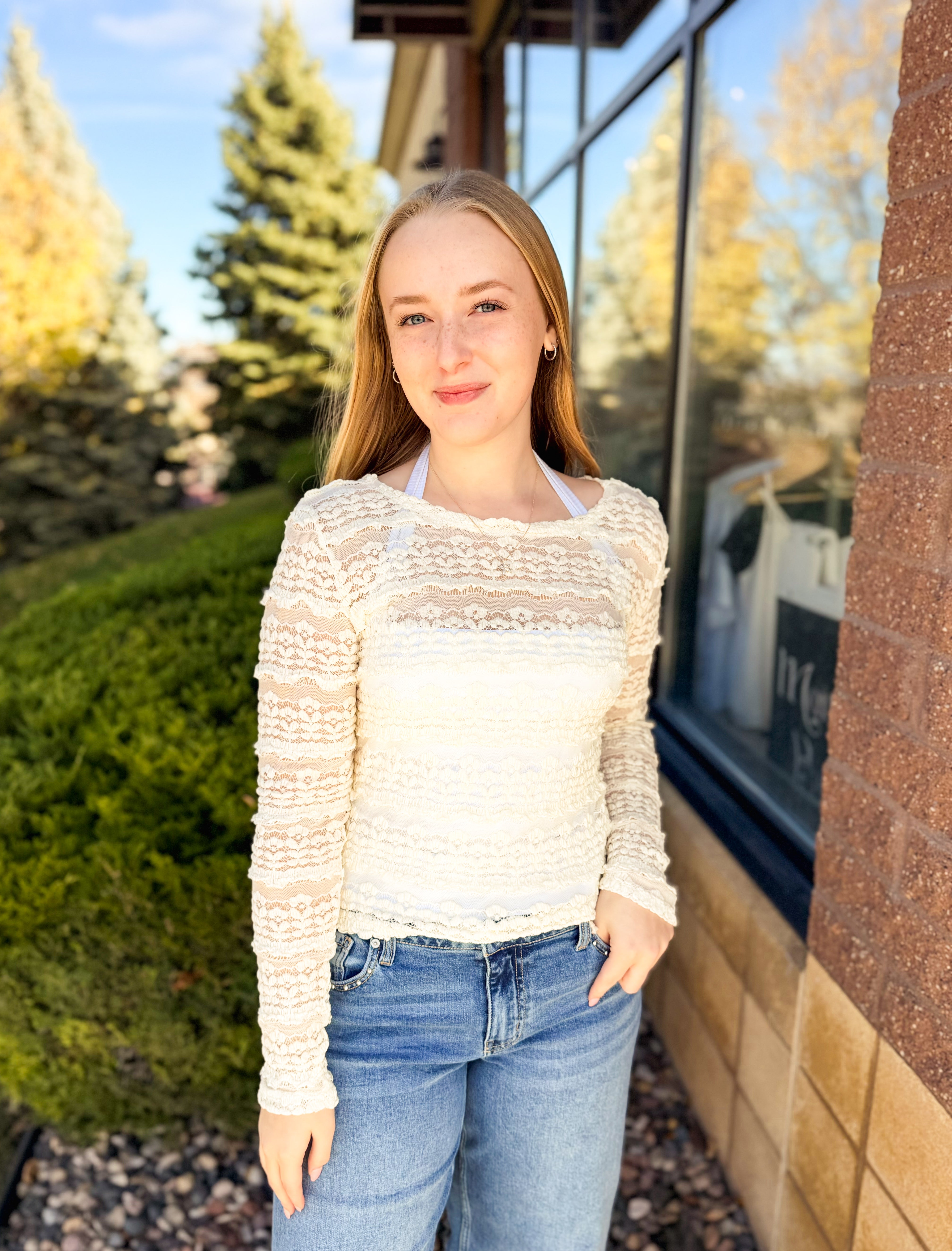 Ruffles Detail Flower Lace Top