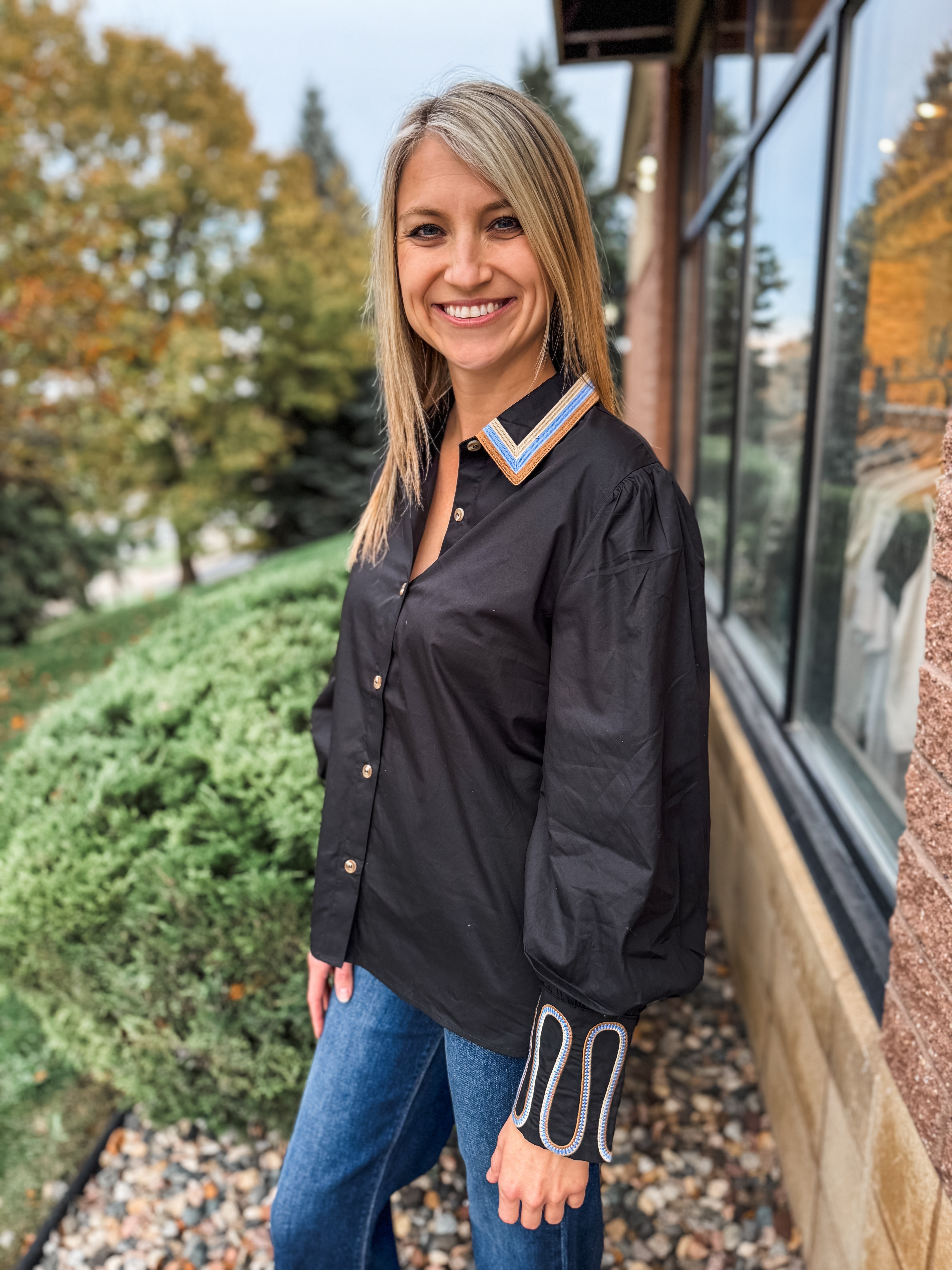 Embroidery Accent Button Down Shirt