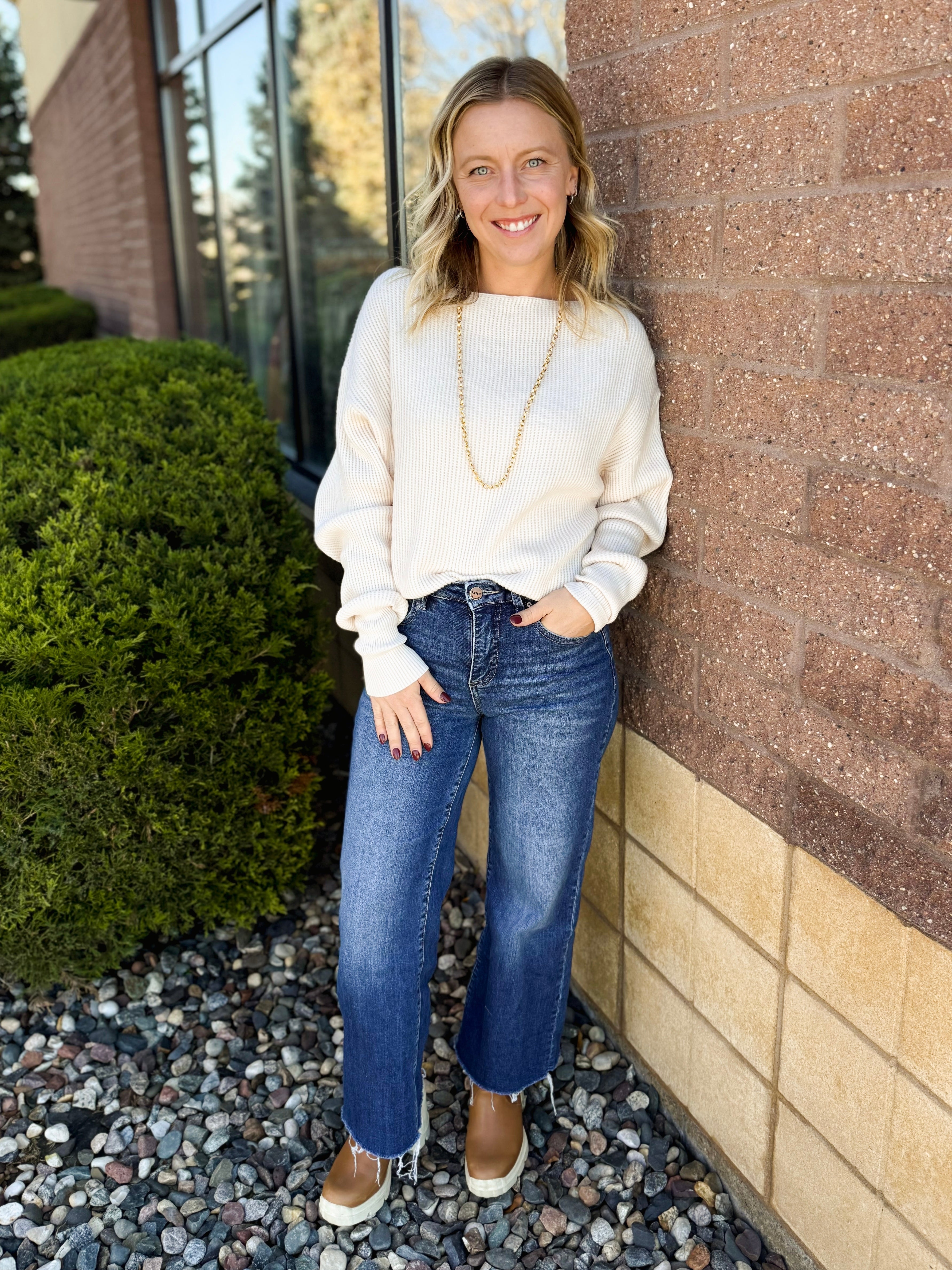 Waffle Knit Off Shoulder Top