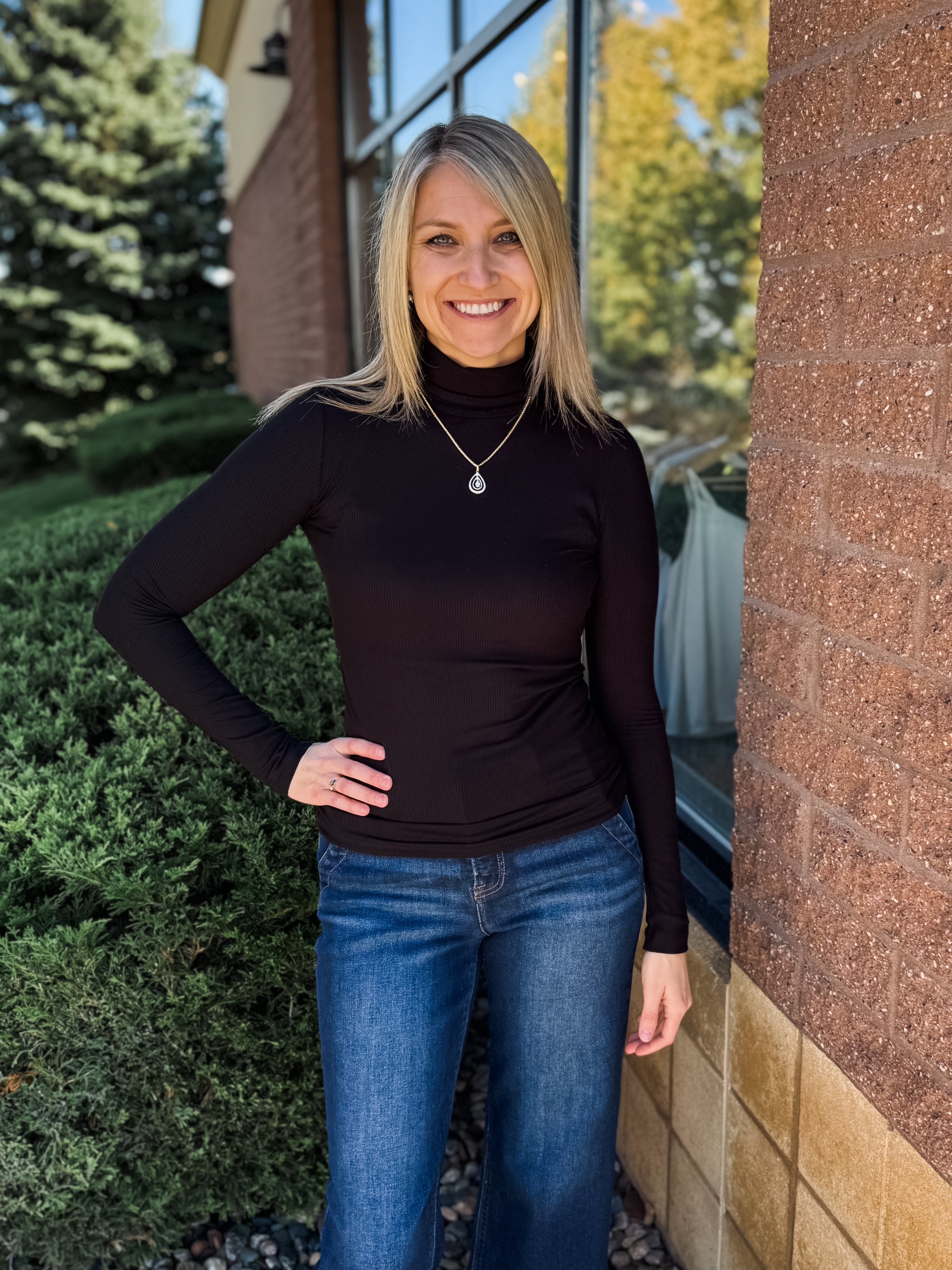 Long Slv Turtle Neck Rib Knit Top