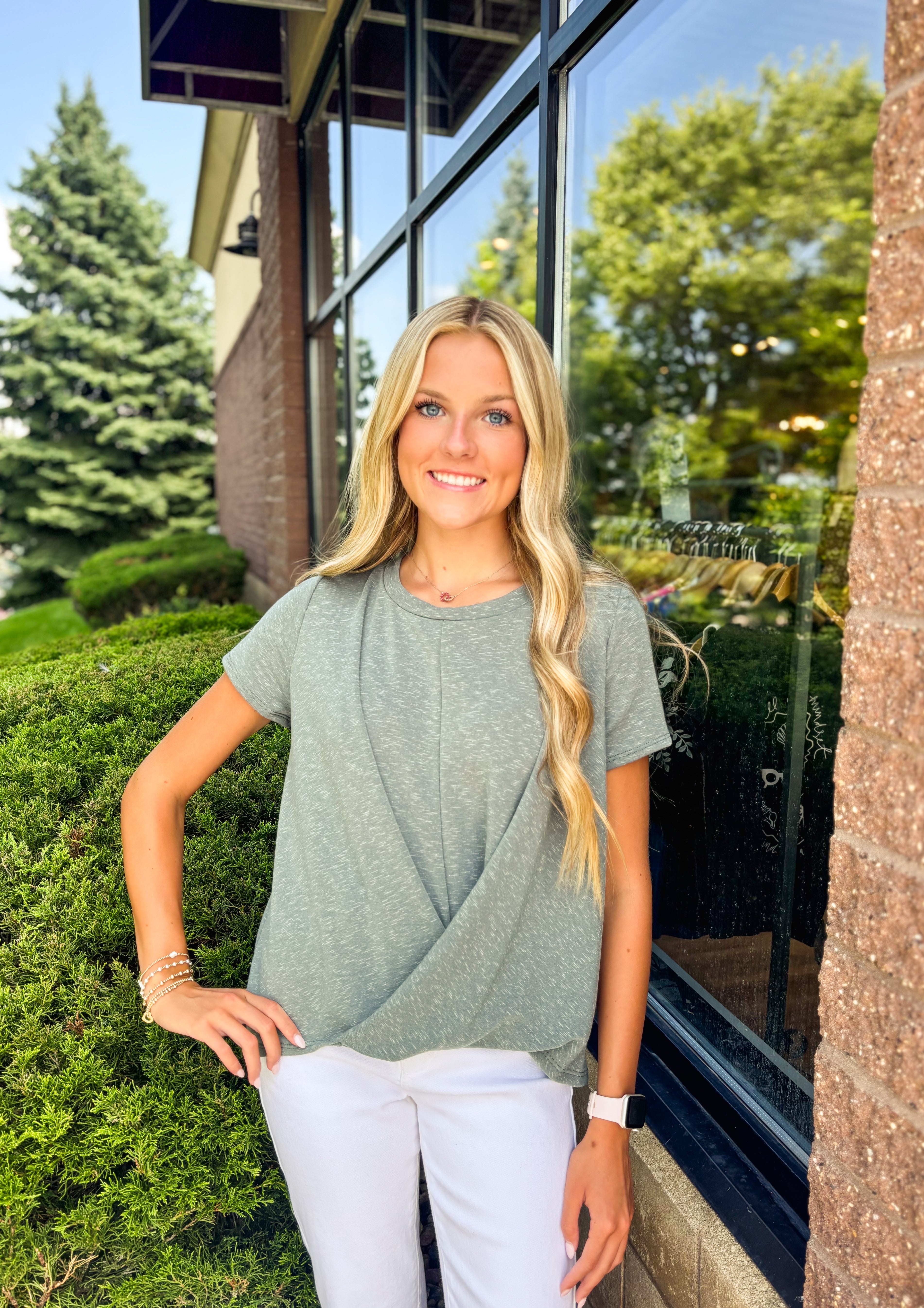 Round Neck Front Twist Short Sleeve Top