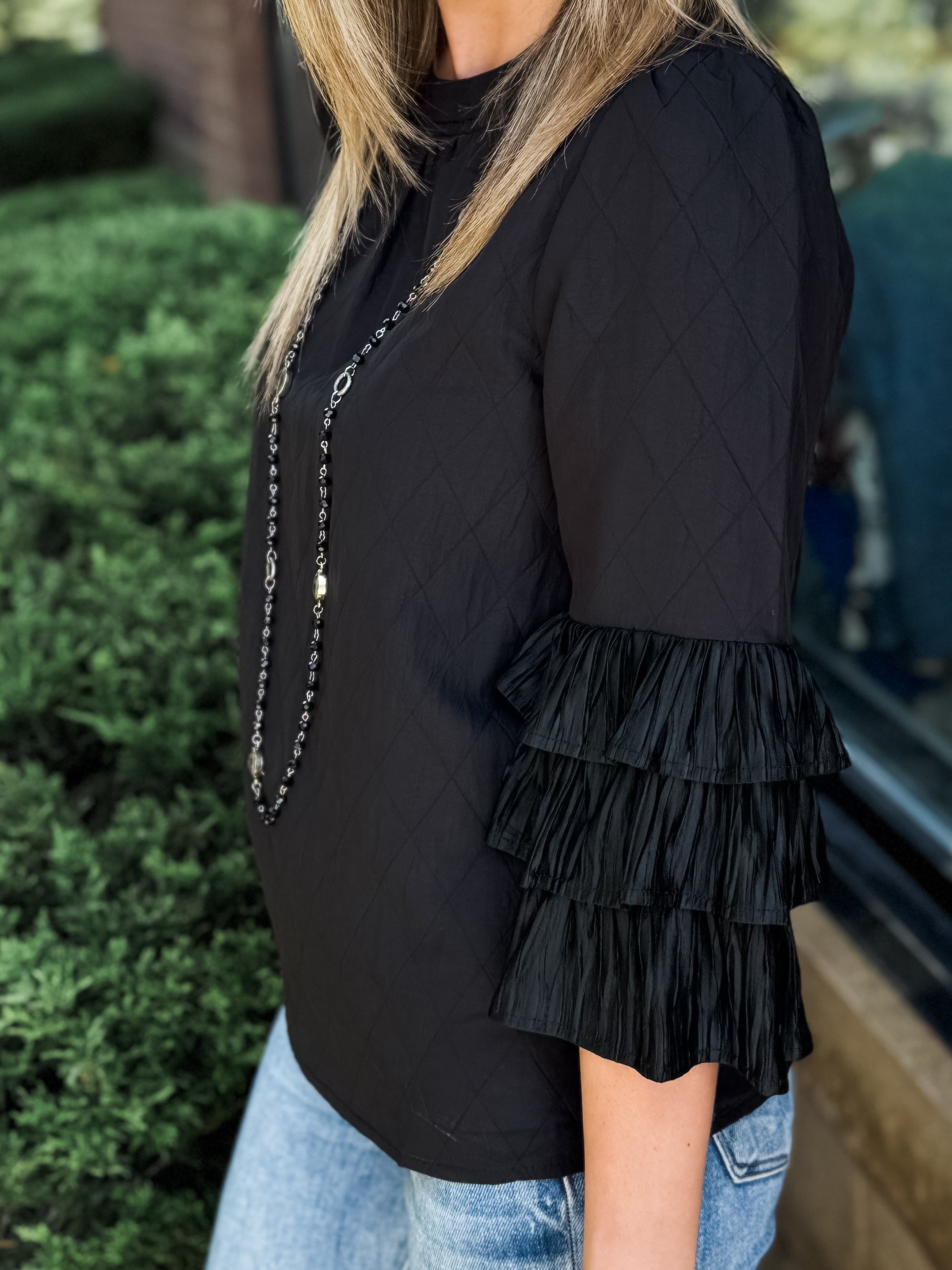 Three Layer Pleated Half Zip Sleeve Top