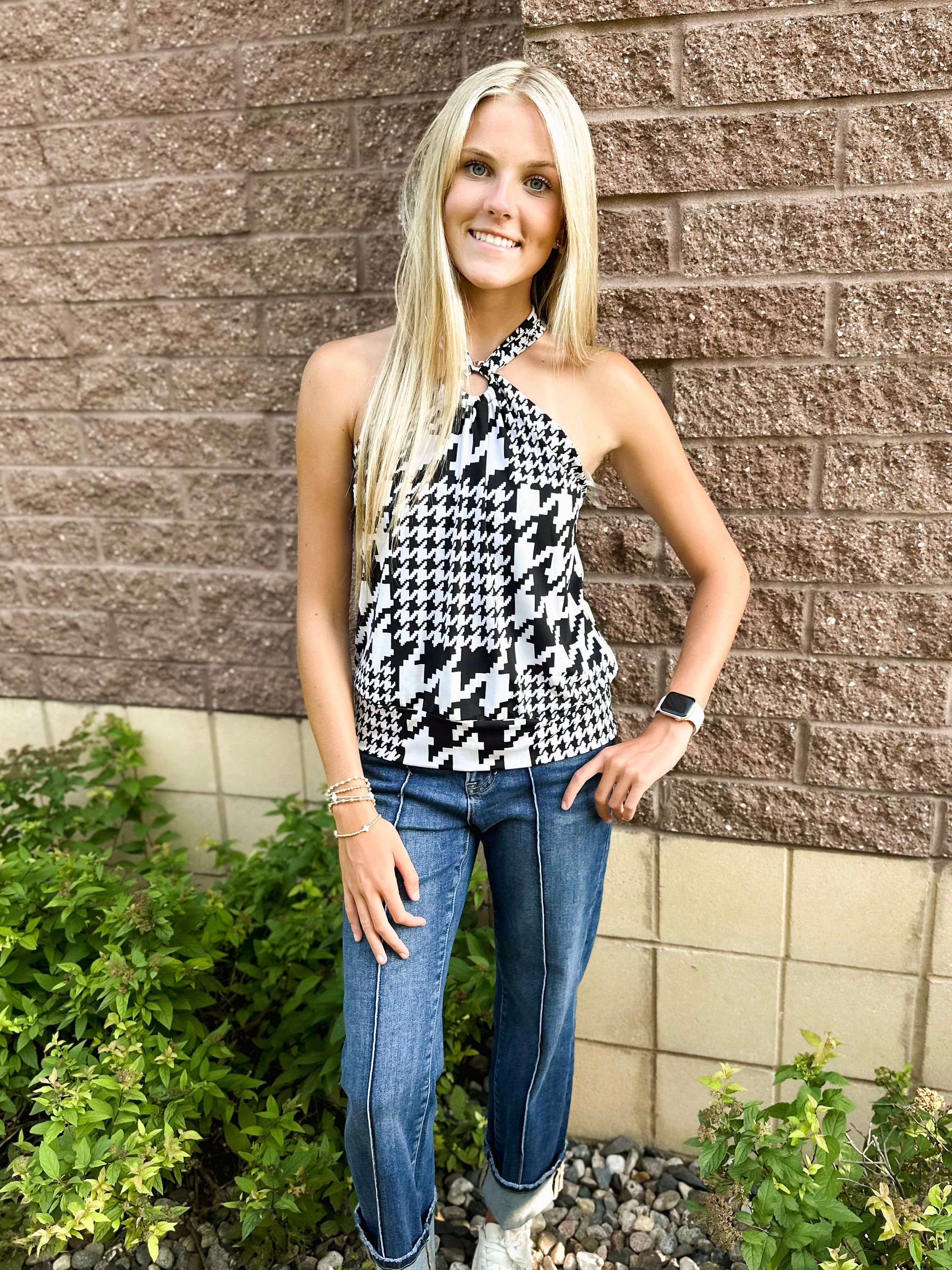 Button Closure Halter with Ring Detail