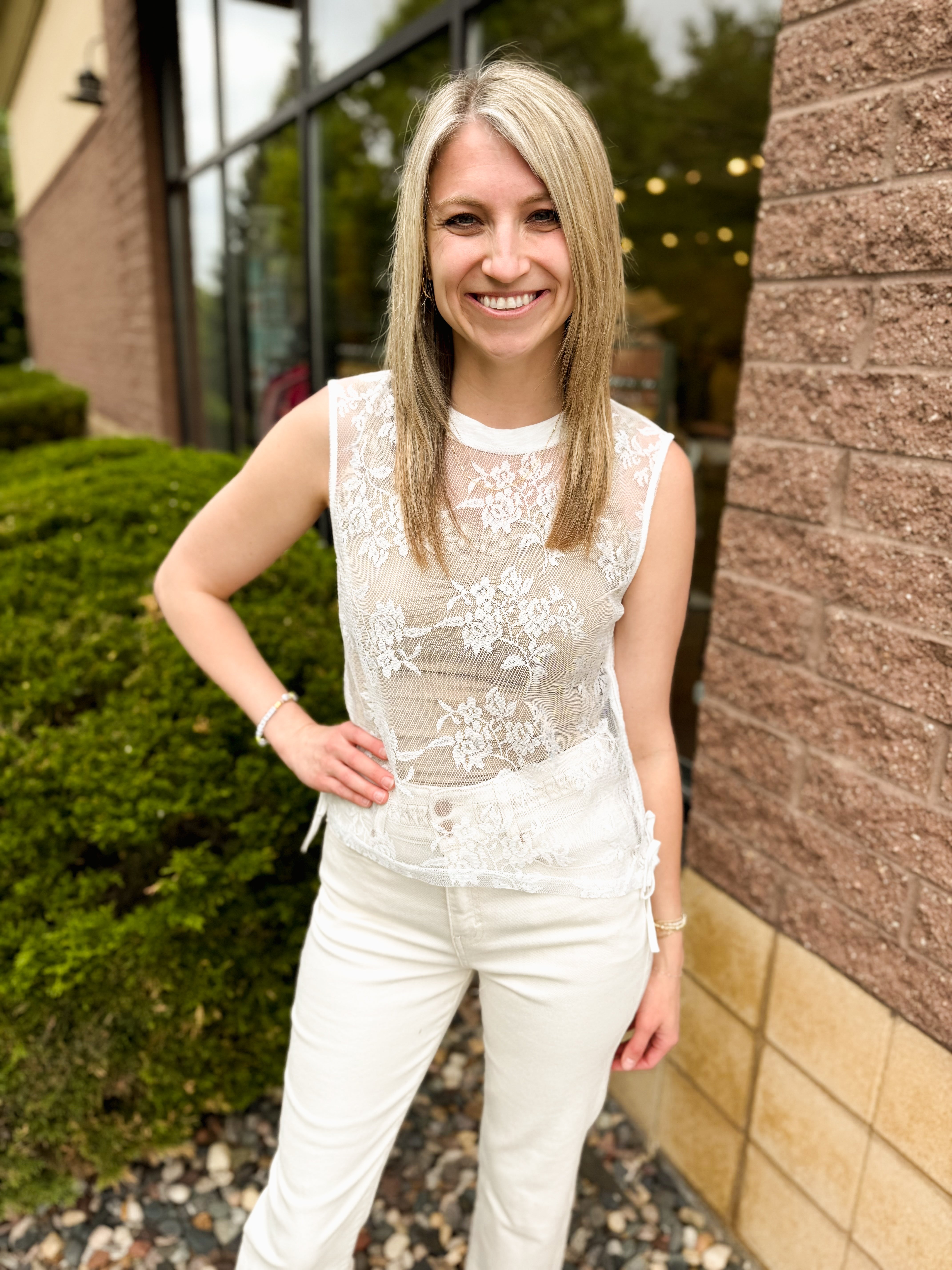 Sleeveless Round Neck with Lace Trim Detail Top